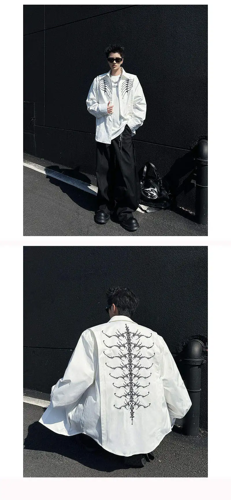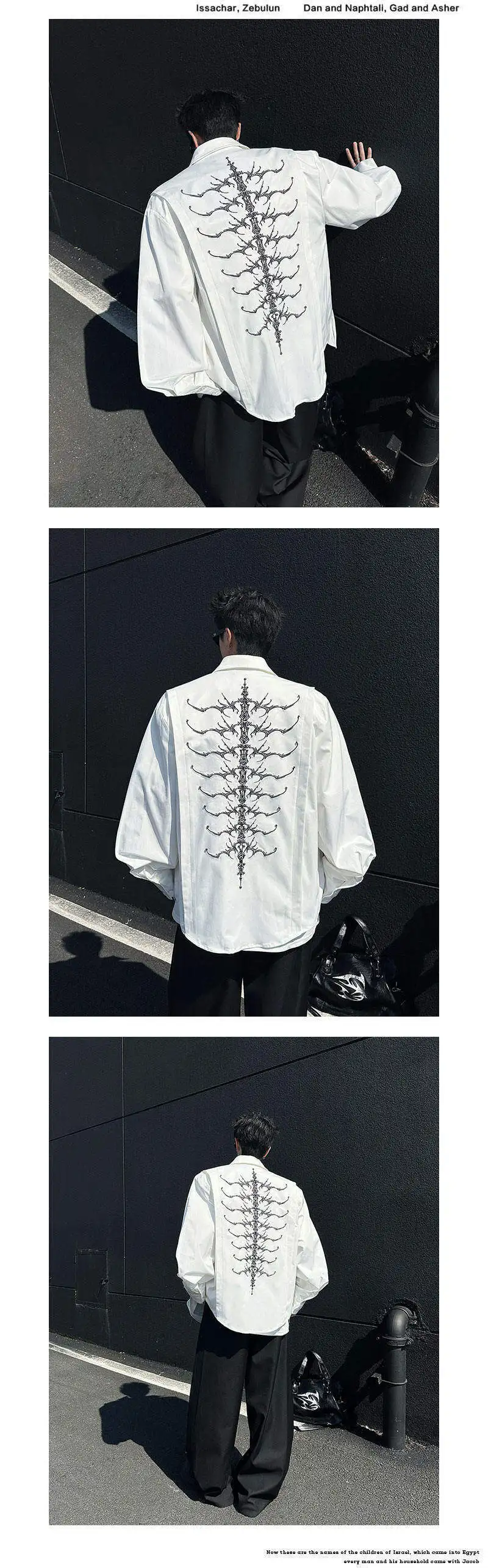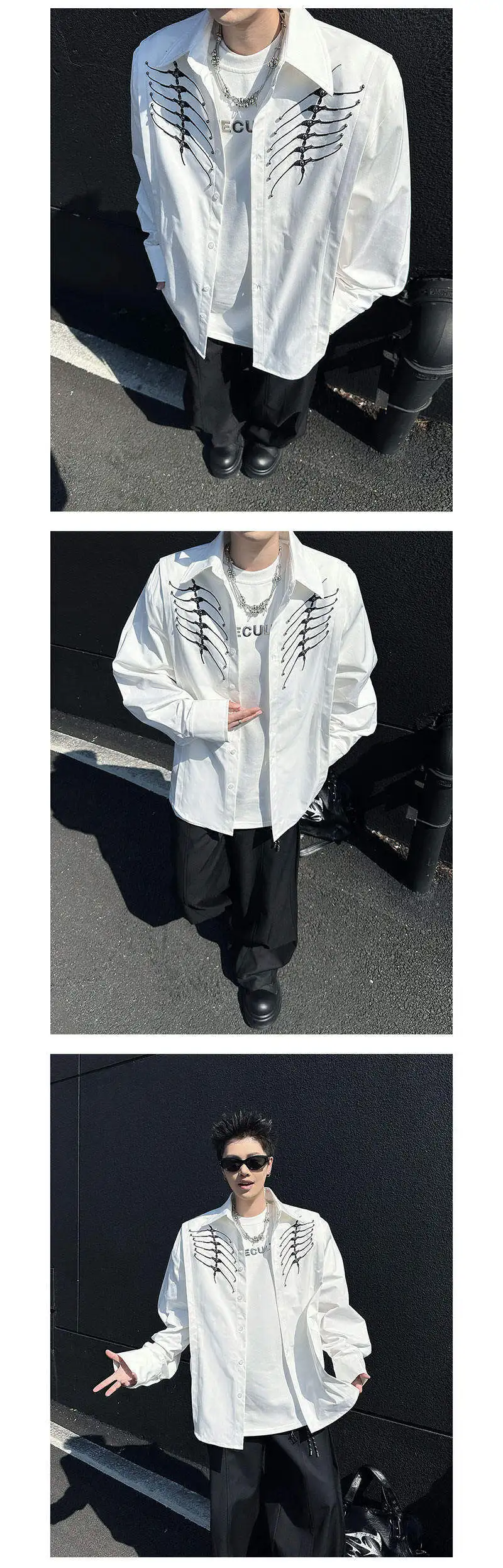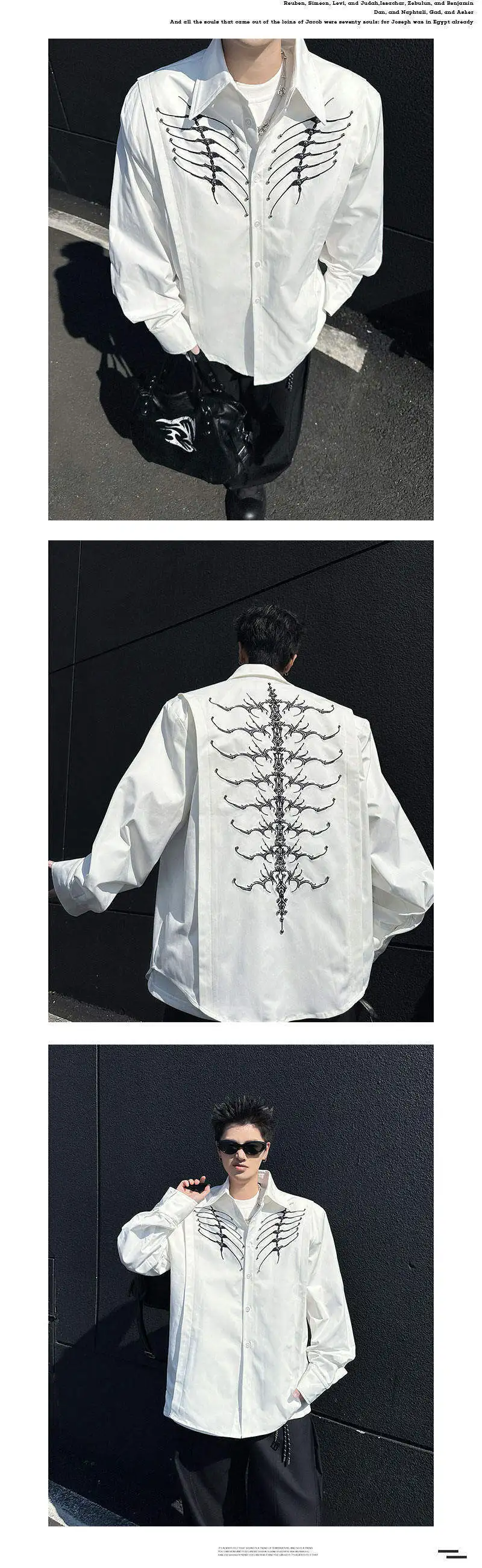 Men's Shirts New Spring Long Sleeve Clothing Embroidery Nail Bead Spine Design Pad Shoulder Turn-down Collar Menwear 9W1607