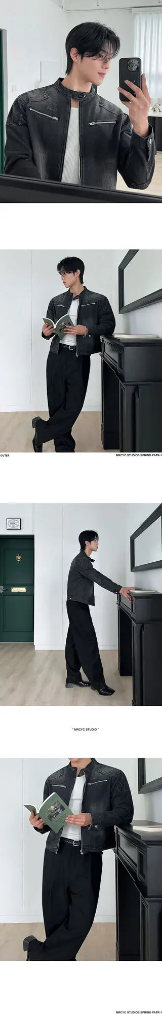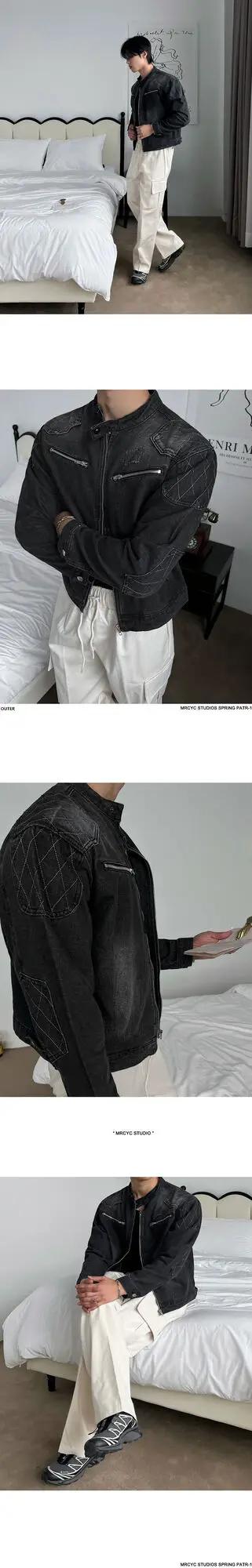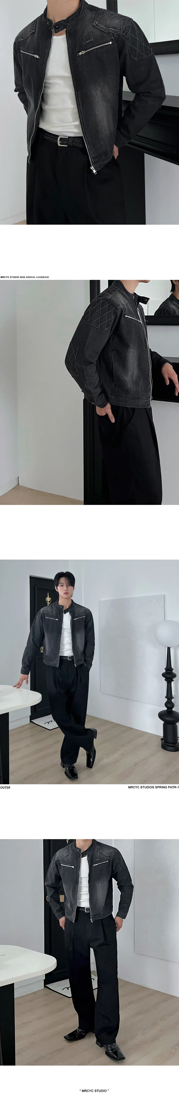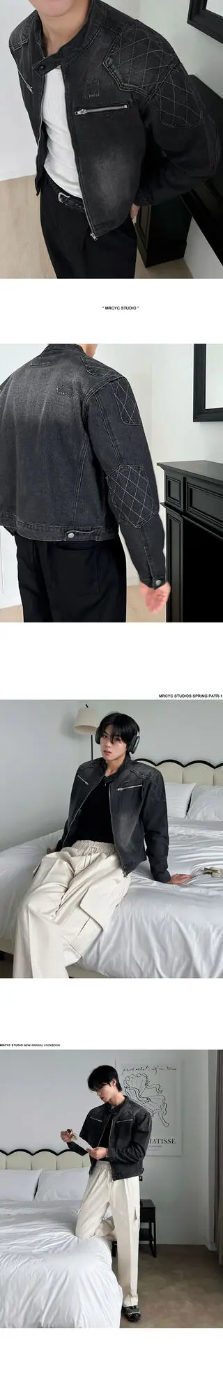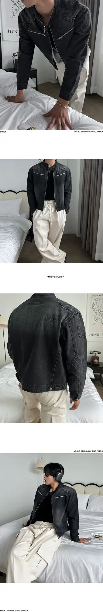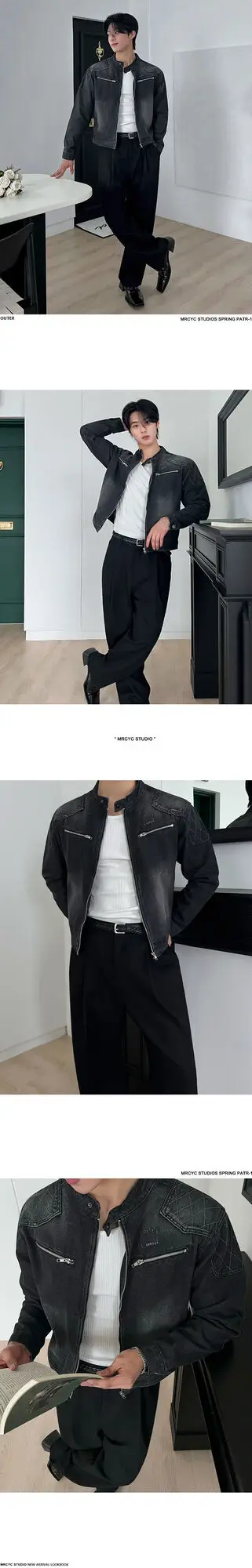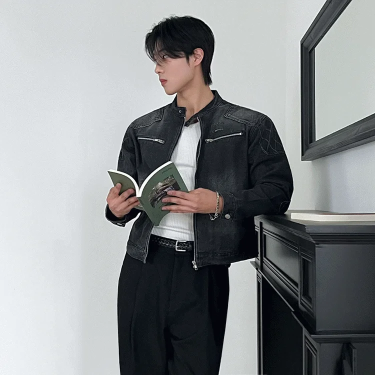 Men's Short Denim Jacket Male Loose Stand Collar New Korean Multi Pockets Solid Color Trendy Spring Niche Top 9W1452