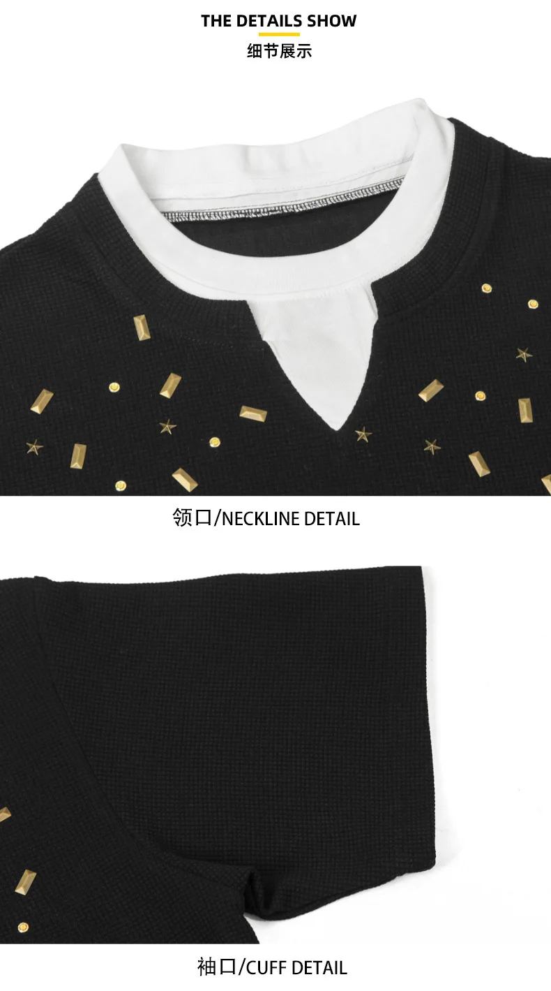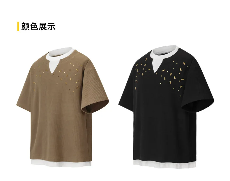 Men's Short Sleeve T-shirts Fake Two-piece Trendy V-neck Design T-shirt Nail Buckle Decoration Summer Male Top 9W1780