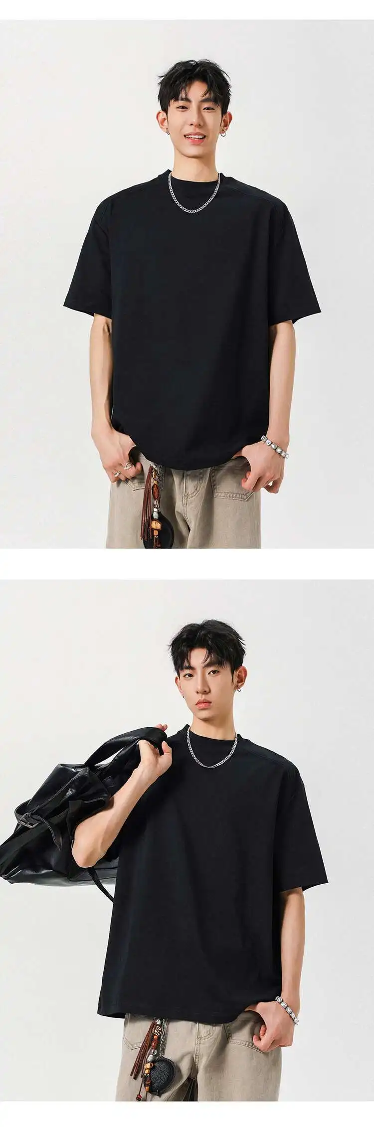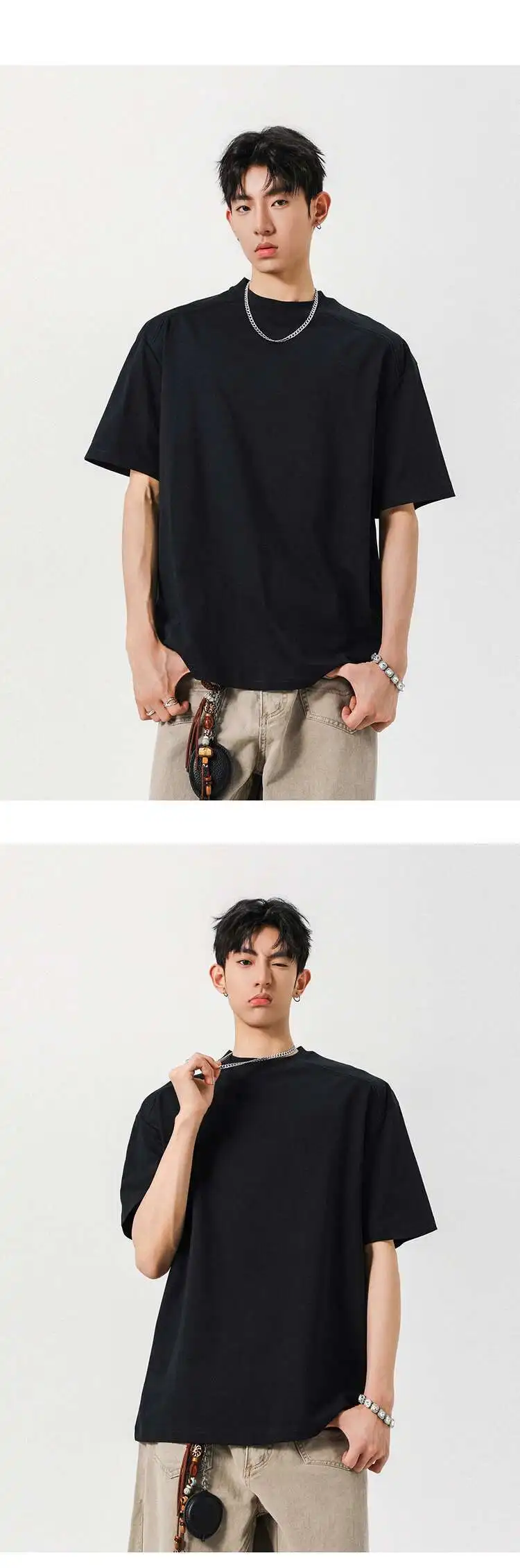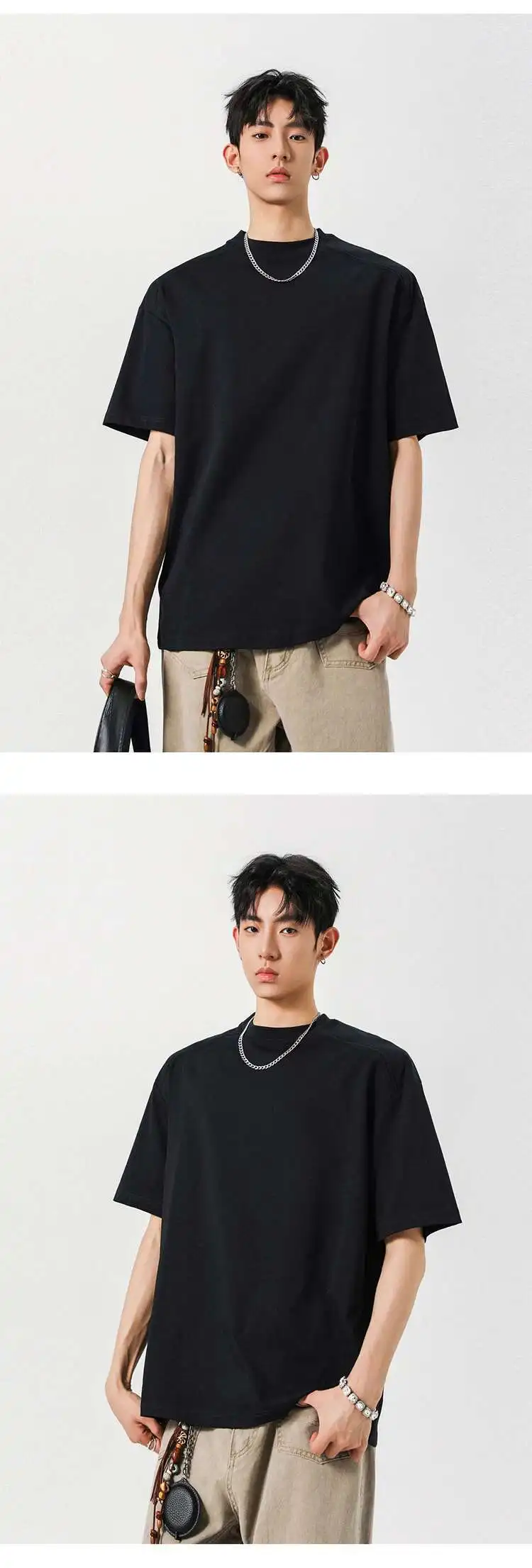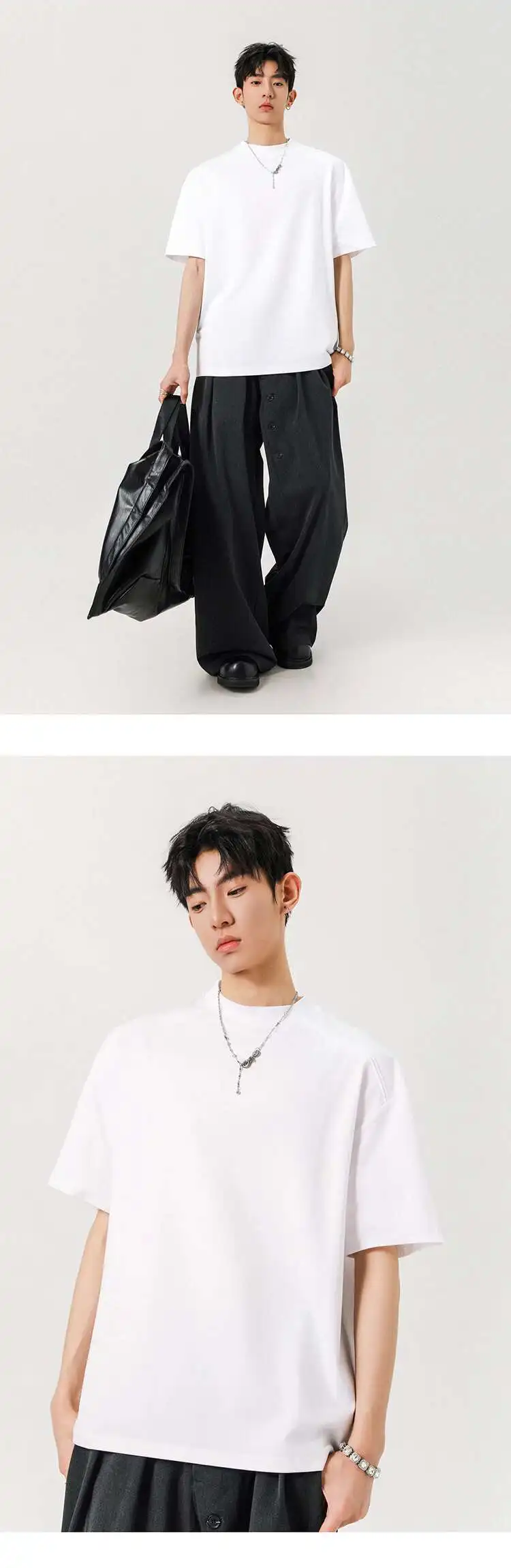Men's Short Sleeve T-shirts New Korean Tide Splicing Fashion Solid Color Simple Stylish Pullover Male Clothing 9W1941