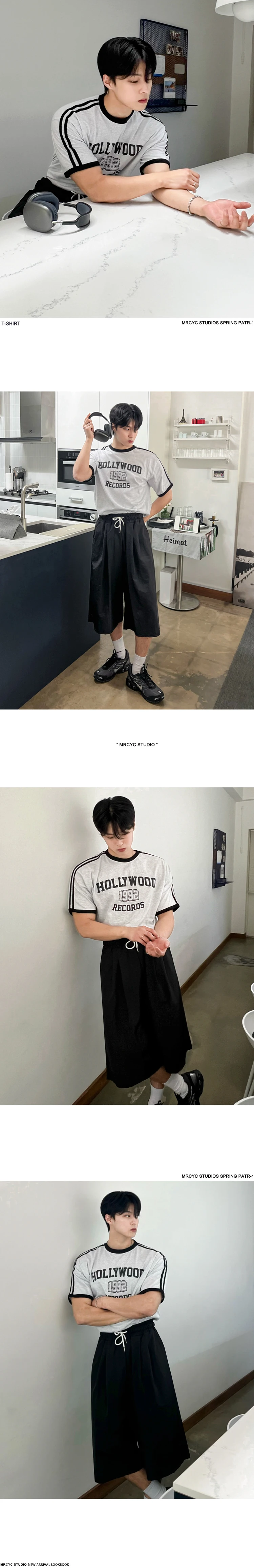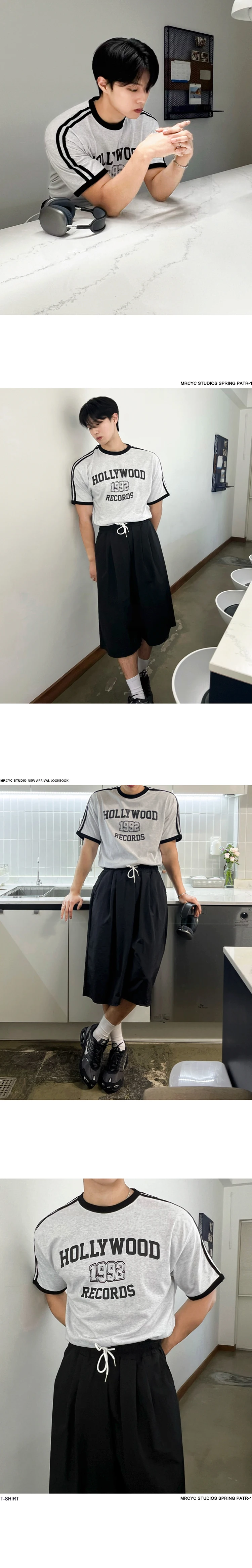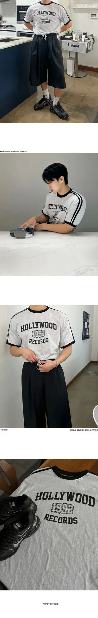 Men's Short Sleeve T-shirts New Summer Contrast Color Design Round Neck Fashion Loose Letter Print Korean Trendy Top 9W1627
