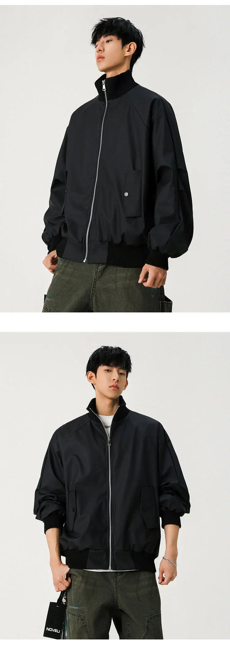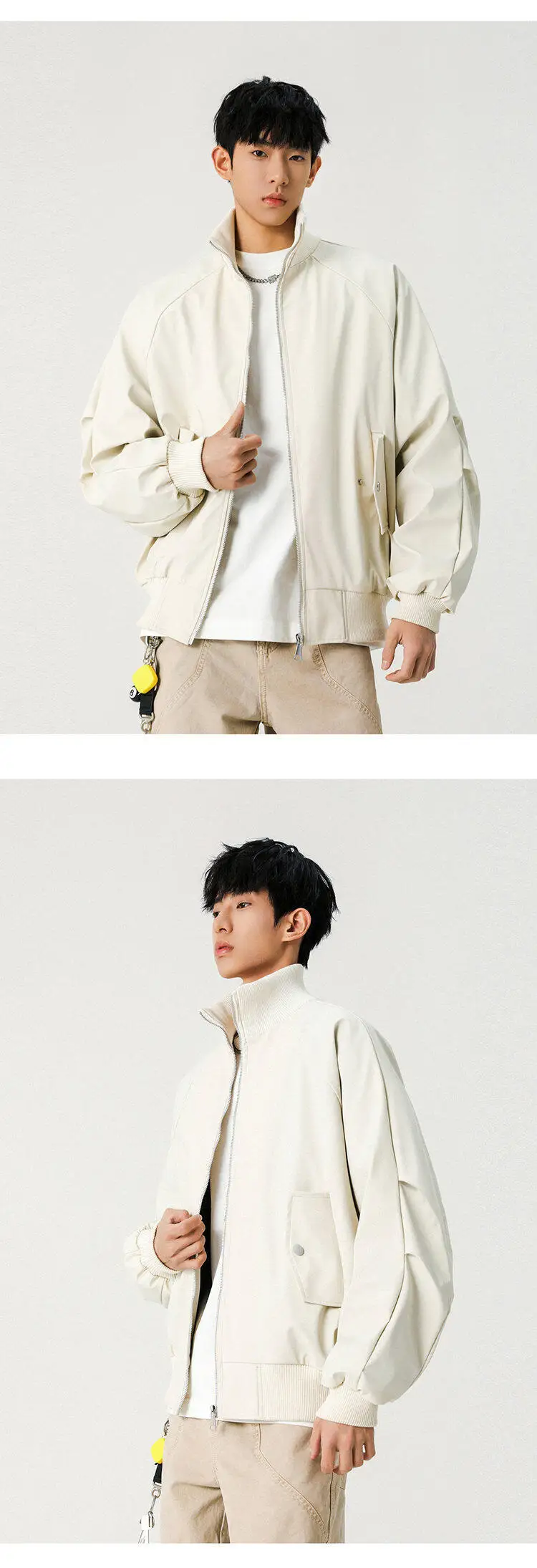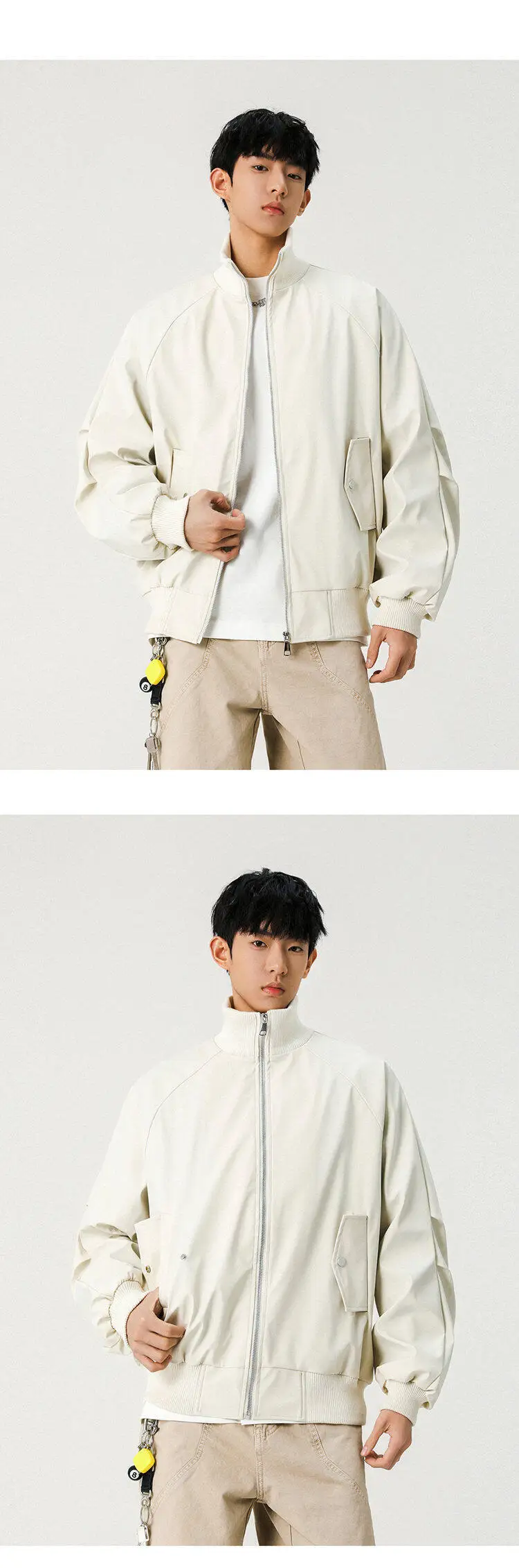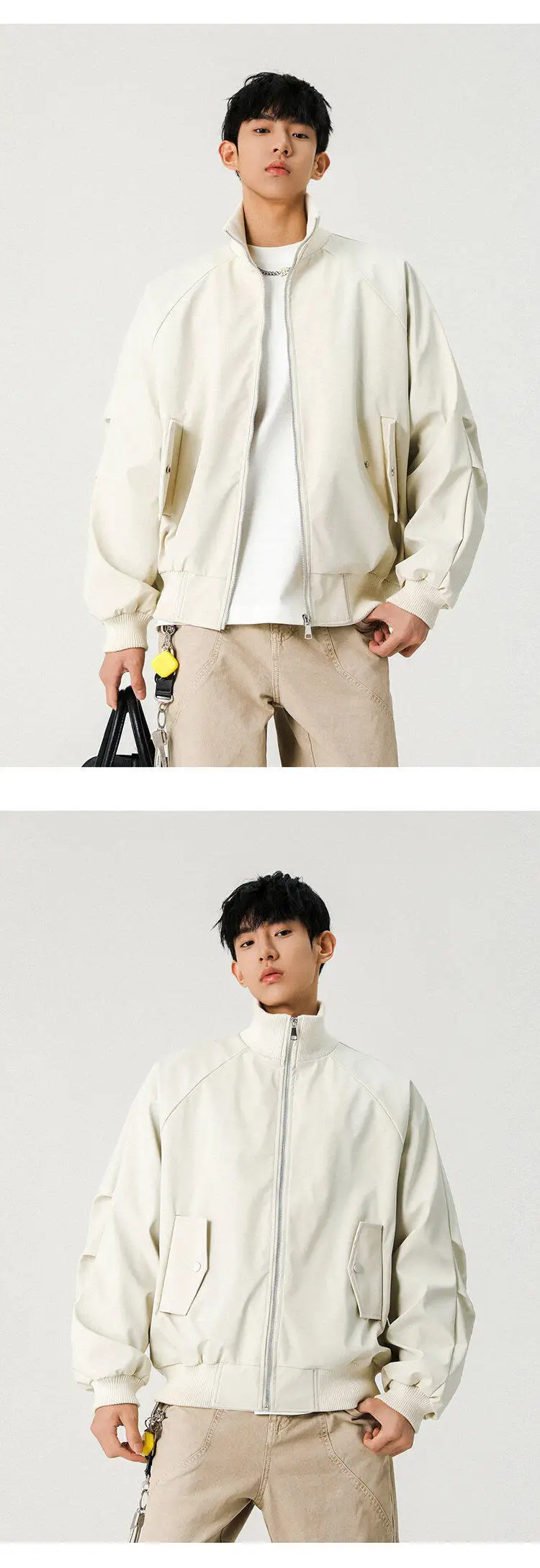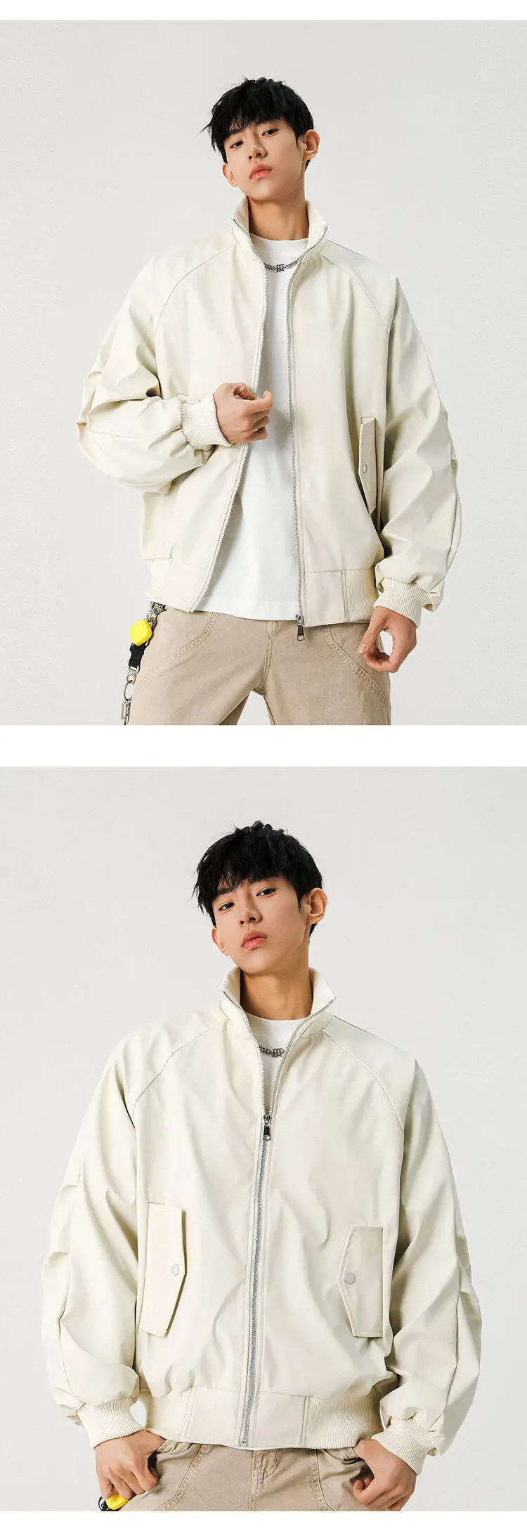 Men's Spring PU Leather Jackets American Solid Color Stand Collar Baseball Jacket Zipper High Street Menwear 2025 9W1303