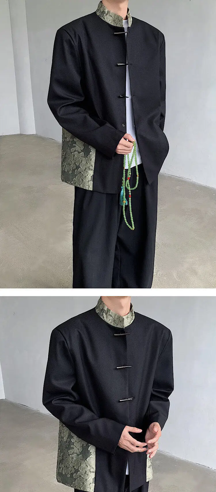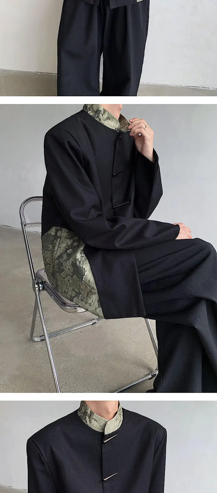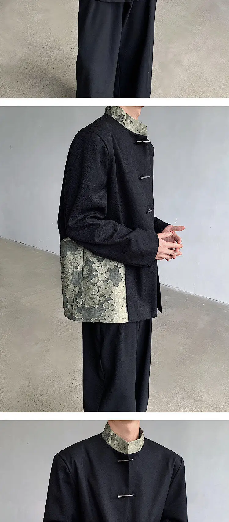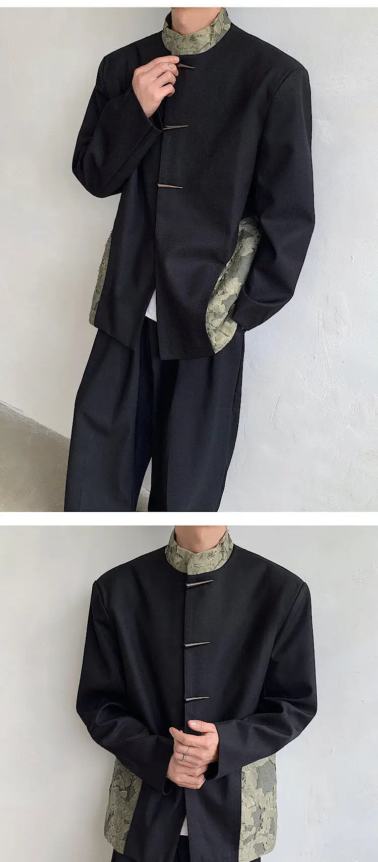 Men's Suit Coat New Chinese Style Stand Collar Trendy Lace Splicing Stylish Single Breasted Casual Male Clothing 9W1705