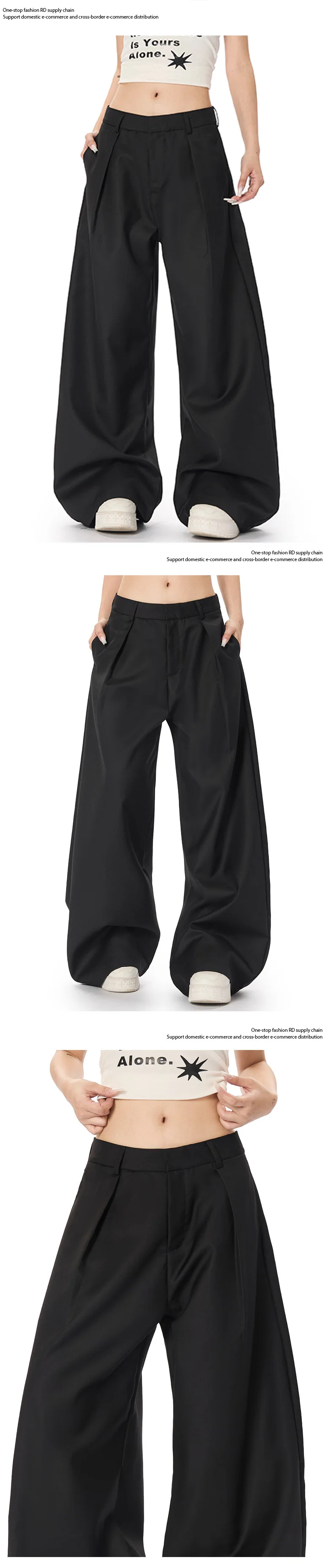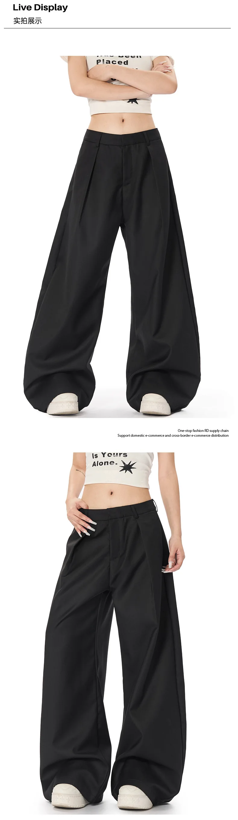 Men's Suit Pants Curved Knife Trendy New American Style Straight Wide Leg Solid Color High Street Male Trousers 9W1925