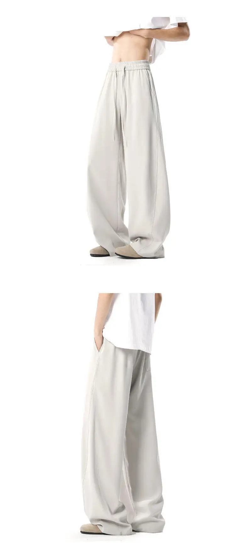Men's Suit Pants New Korean Stylish Solid Color Loose Male Trousers Straight Leg Elastic Waist Menwear Spring 9W1524