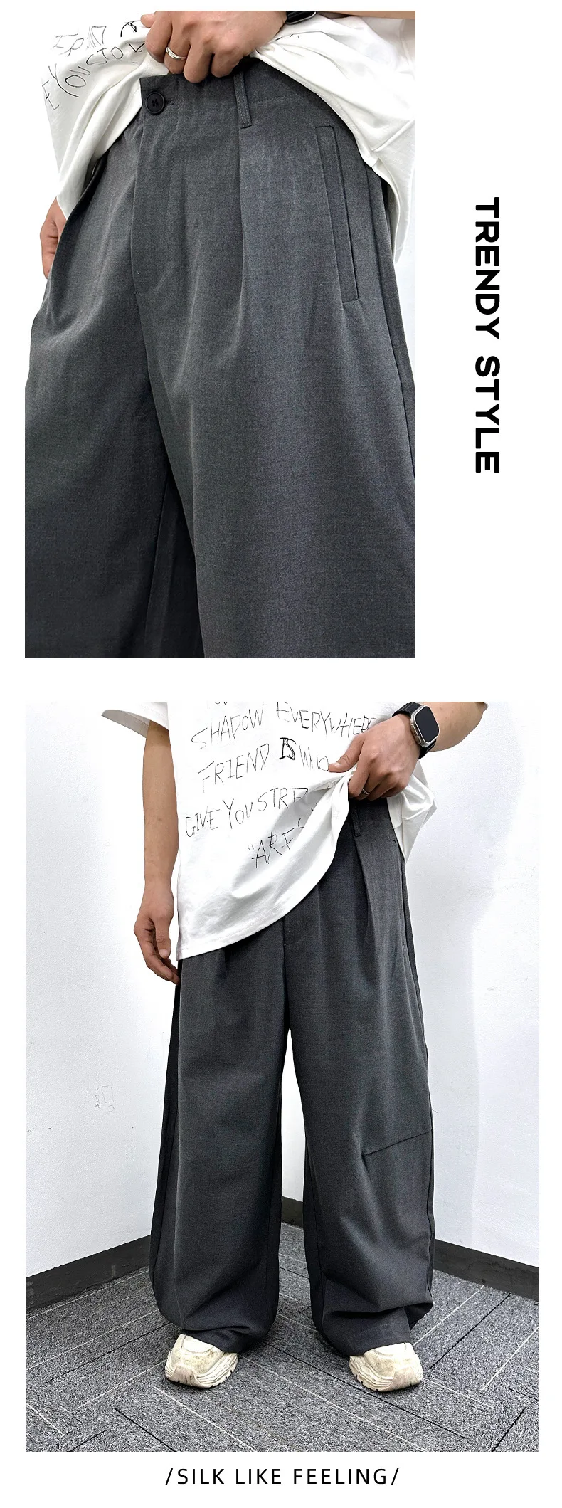 Men's Suit Pants Spring New American Style Casual Trousers Straight Loose Solid Color Trendy Wide Leg Menwear 9W1747