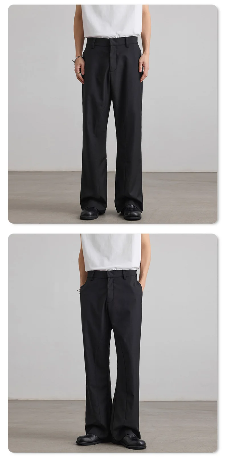 Men's Summer Suit Pants New Korean Style Splicing Micro Flared Trousers Straight Leg Solid Color Trendy Male Bottoms 9W1902