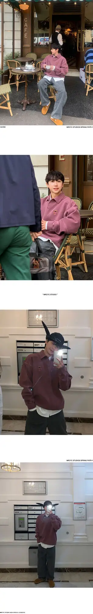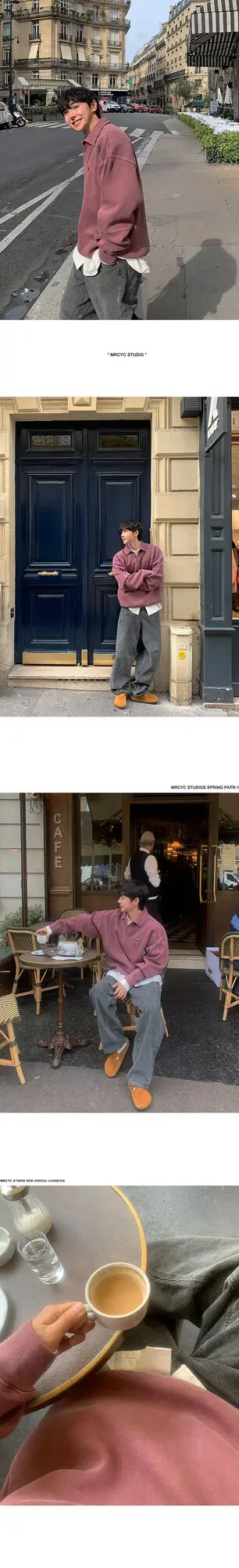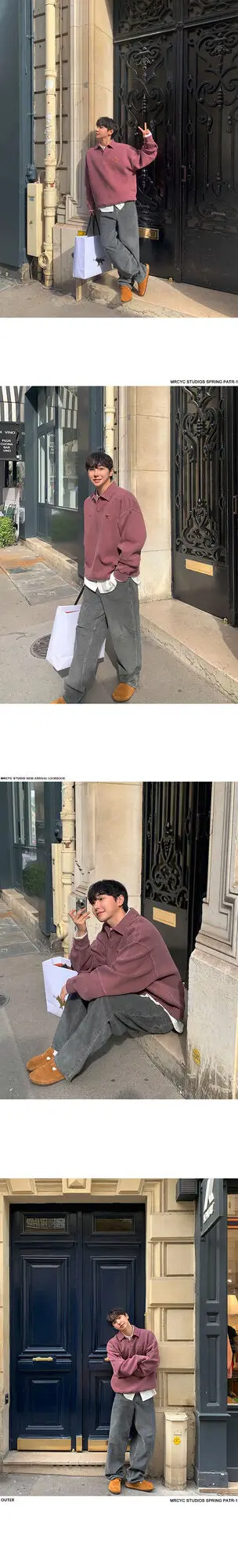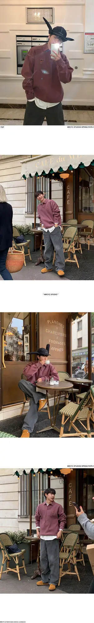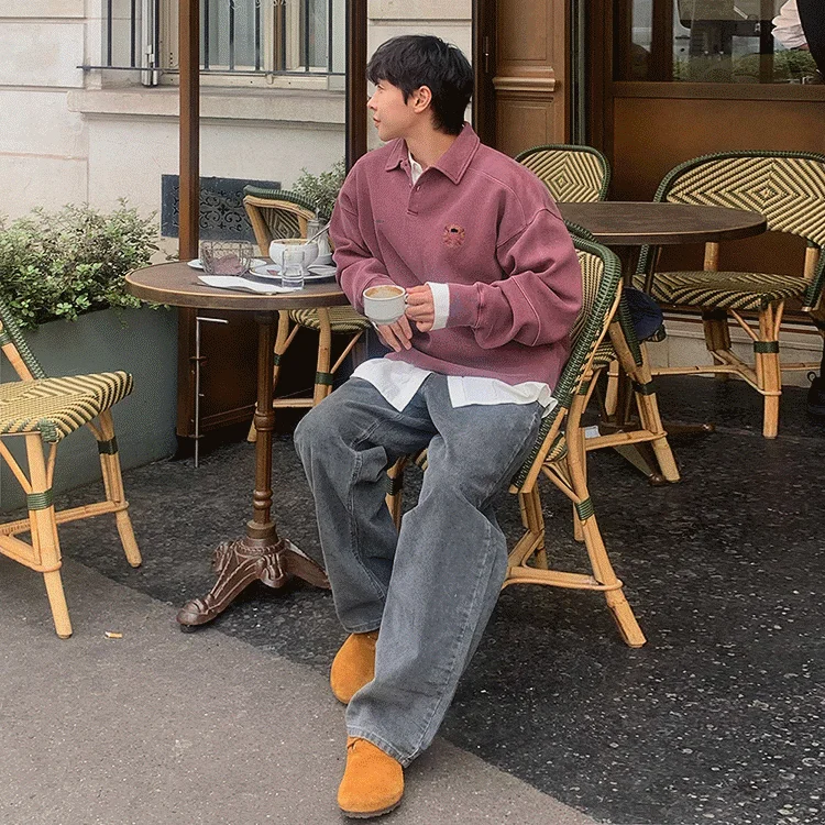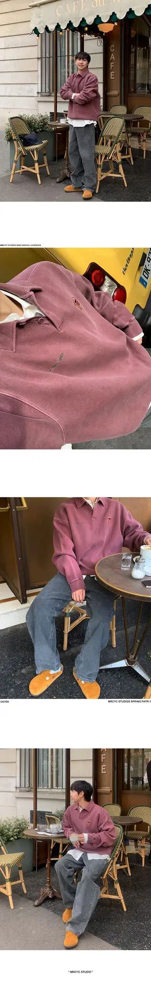 Men's Sweatshirt New Spring Turn-down Collar Loose Embroidered Top Korean Long Sleeve Pullover Fashion Clothing 9W1485