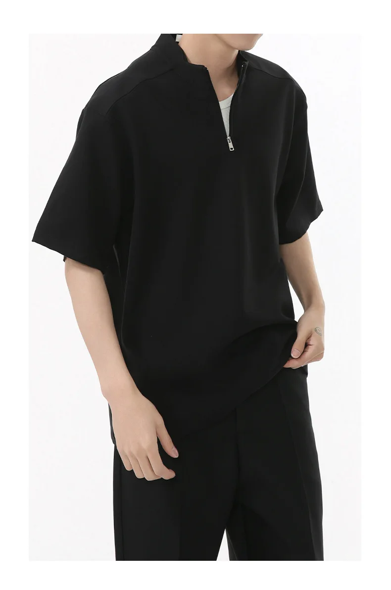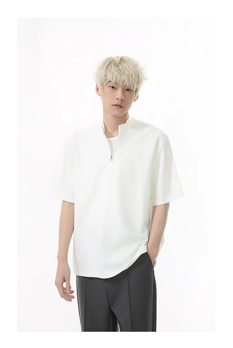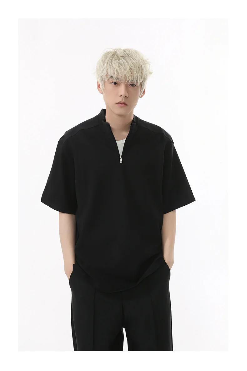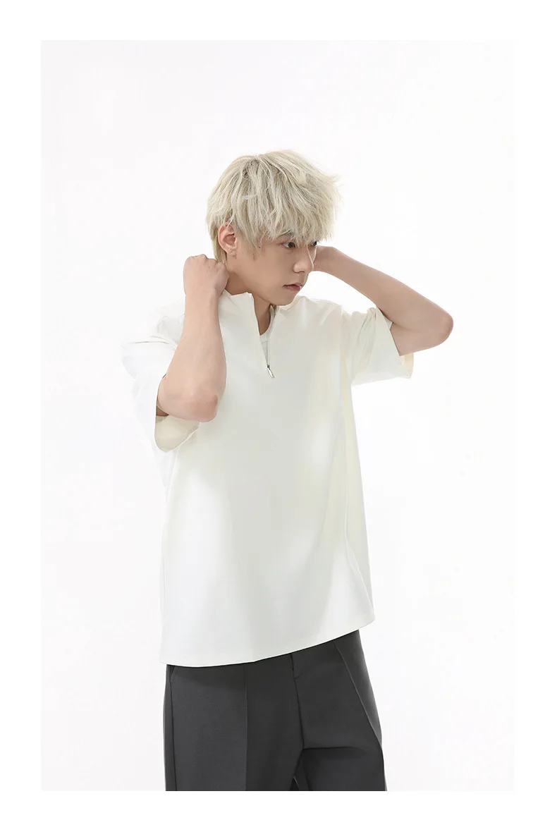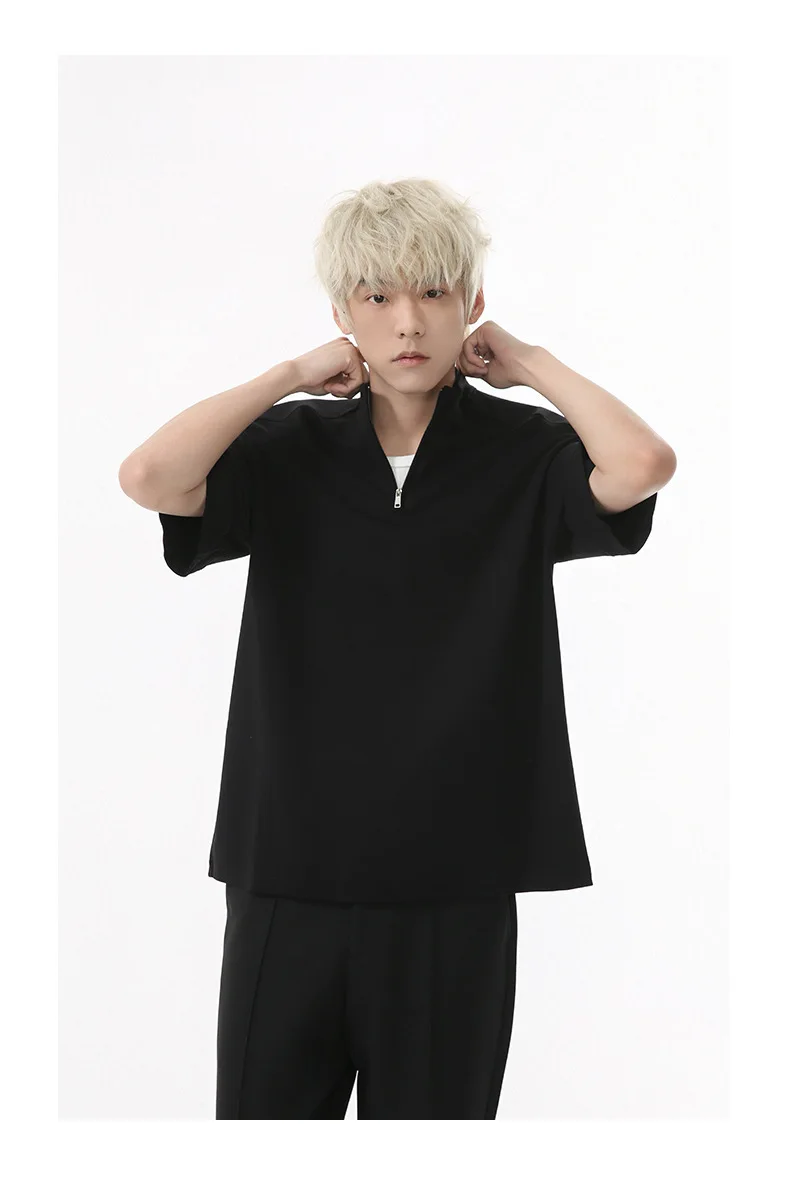 Men's T-shirts Korean Simple Stand Collar Design Solid Color Half Zipper Stylish Male Clothing Short Sleeve Top 9W1602