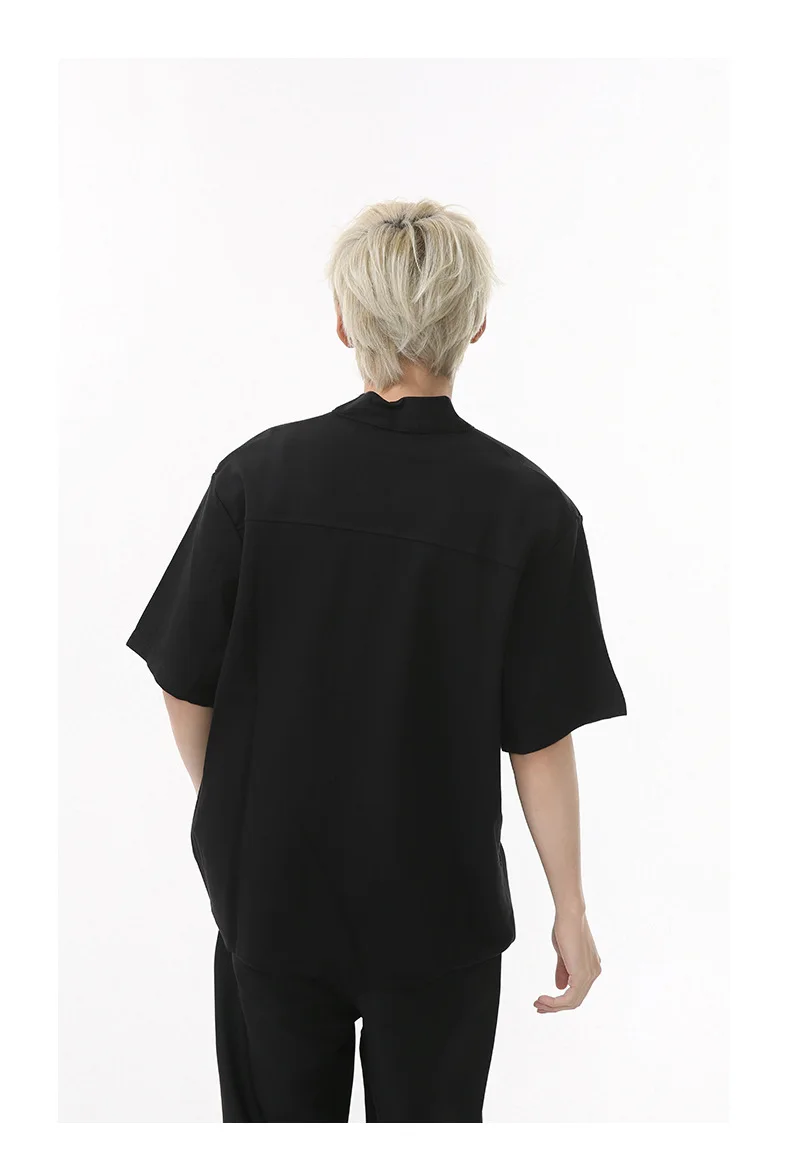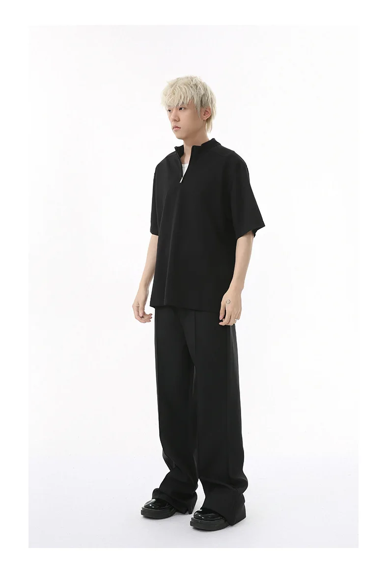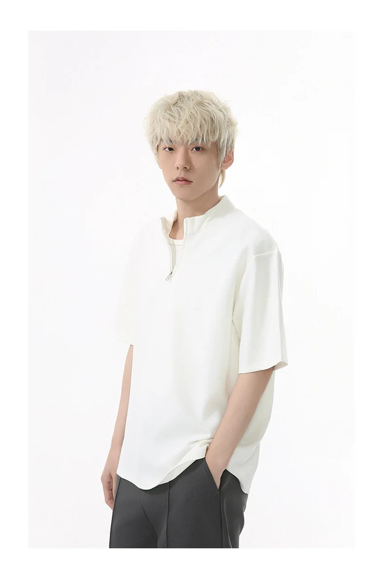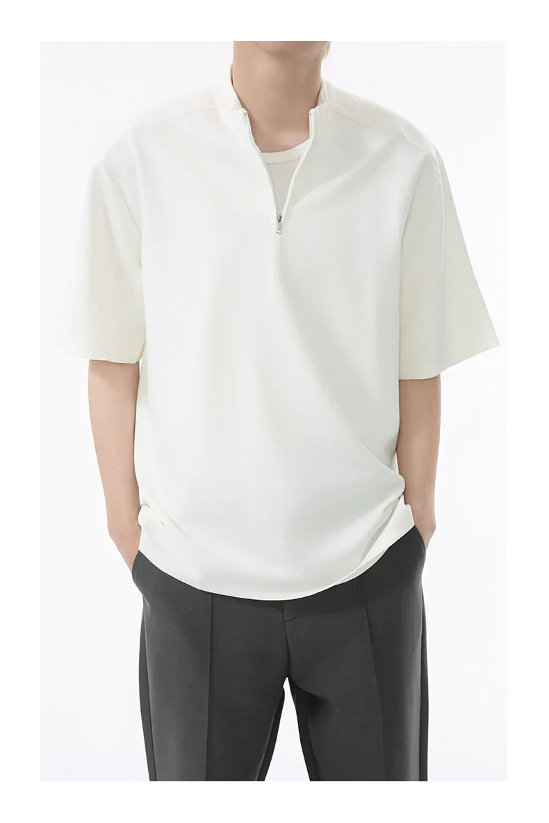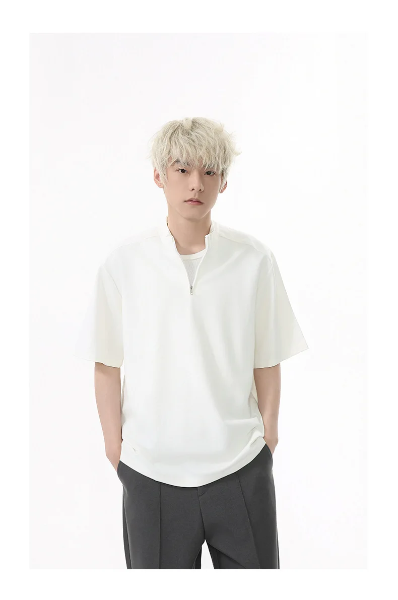 Men's T-shirts Korean Simple Stand Collar Design Solid Color Half Zipper Stylish Male Clothing Short Sleeve Top 9W1602