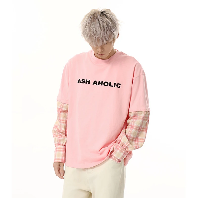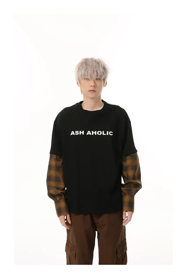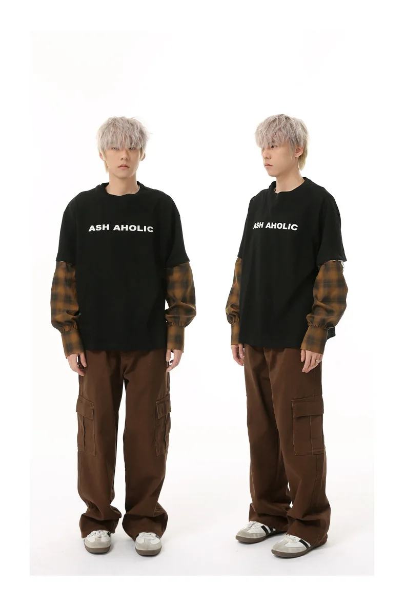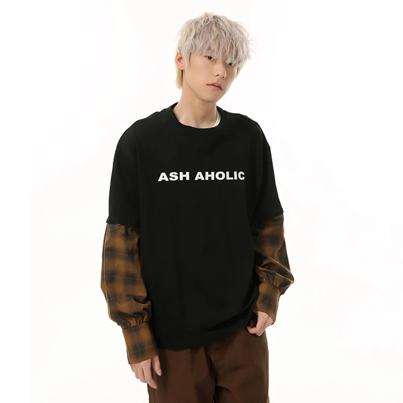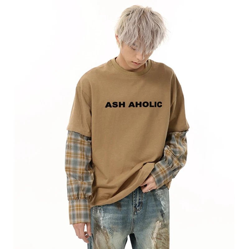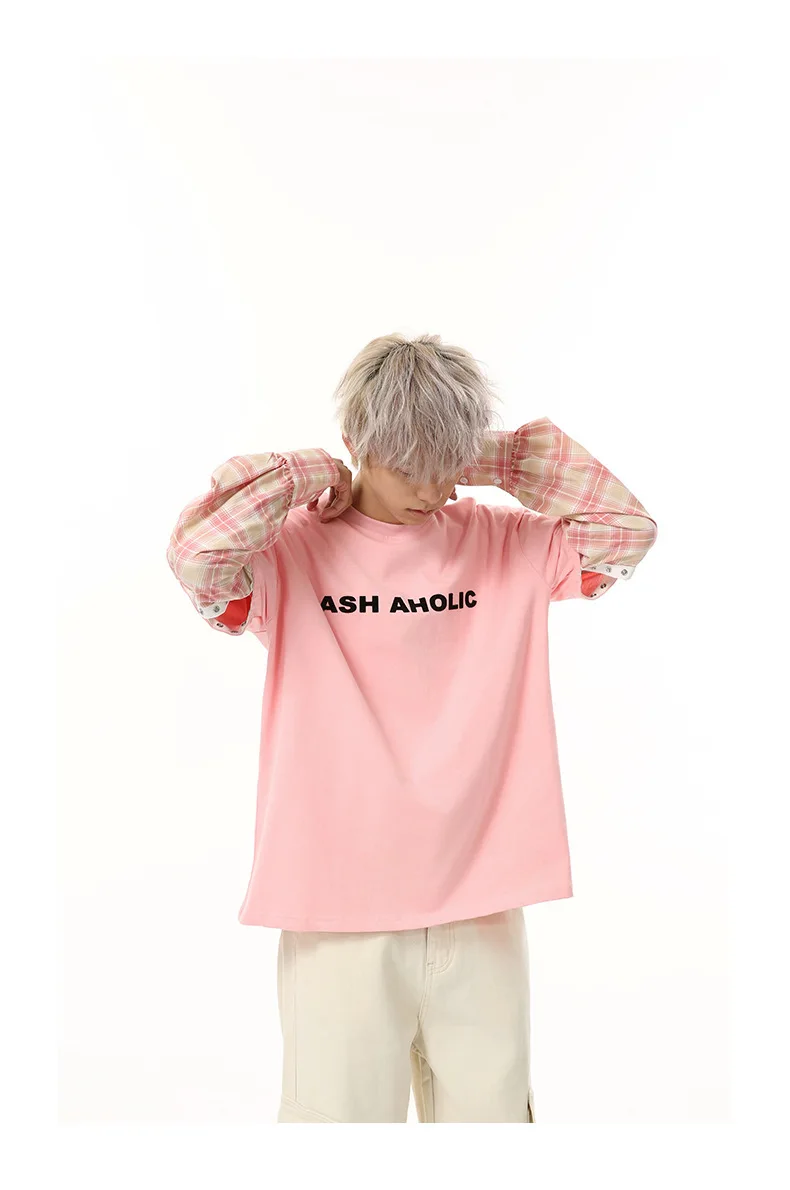 Men's T-shirts New Korean Style Letter Printed Splicing Detachable Plaid Half Sleeve Fashion Causal Menwear Summer 9W1842