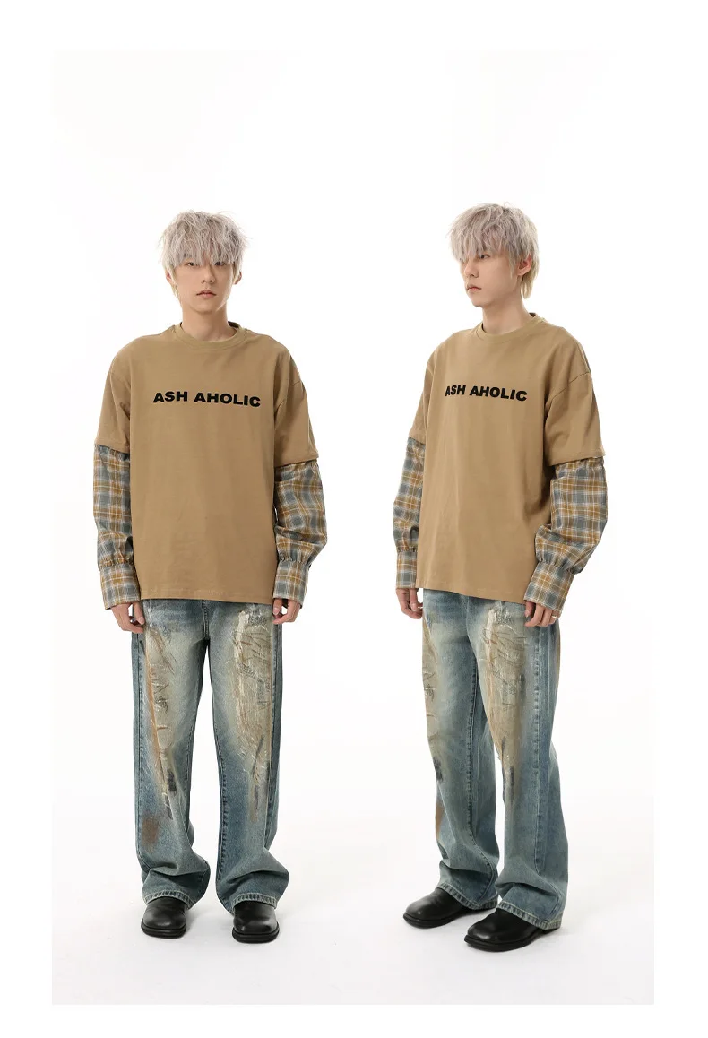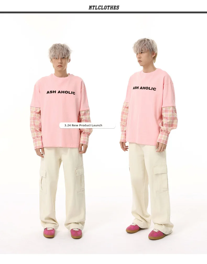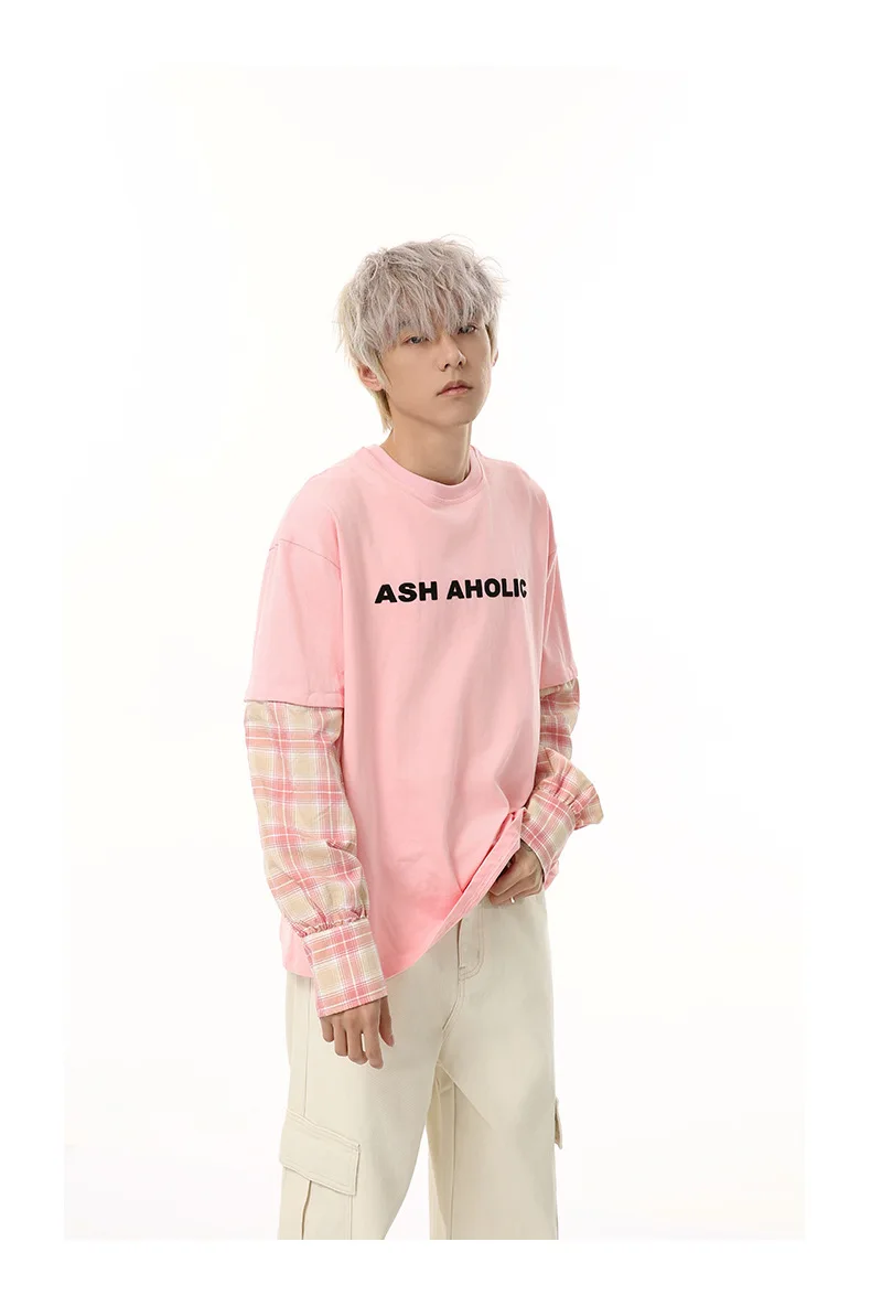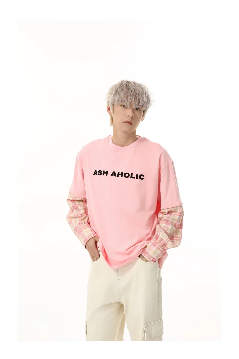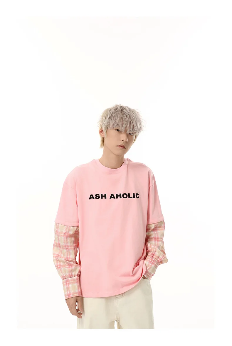Men's T-shirts New Korean Style Letter Printed Splicing Detachable Plaid Half Sleeve Fashion Causal Menwear Summer 9W1842