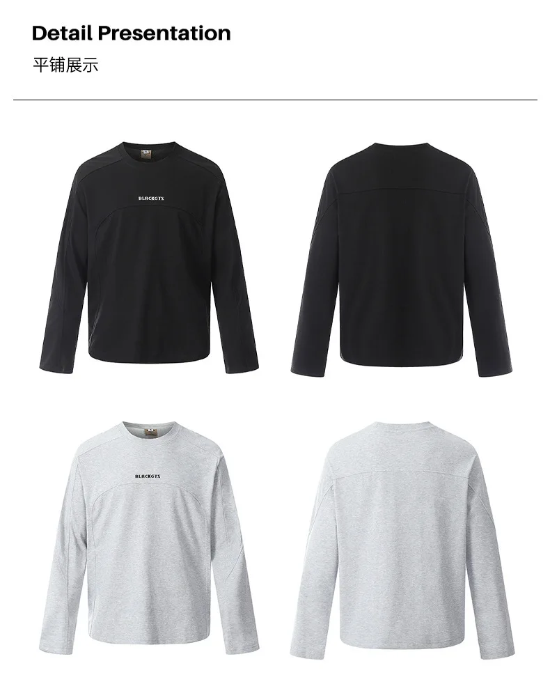 Men's T-shirts New Summer Embroidered Letter Splicing Casual Stylish Long Sleeve T-shirt Round Collar Trendy Top 9W1763