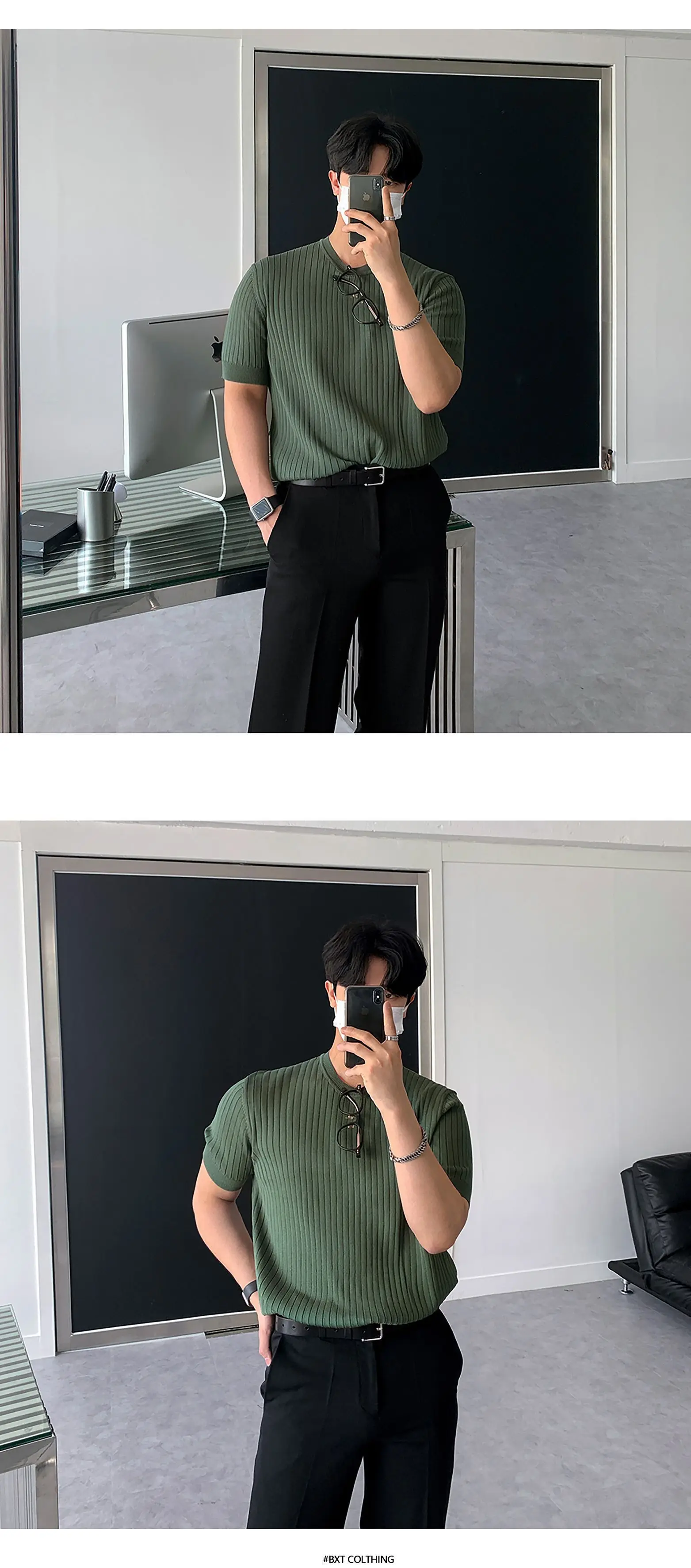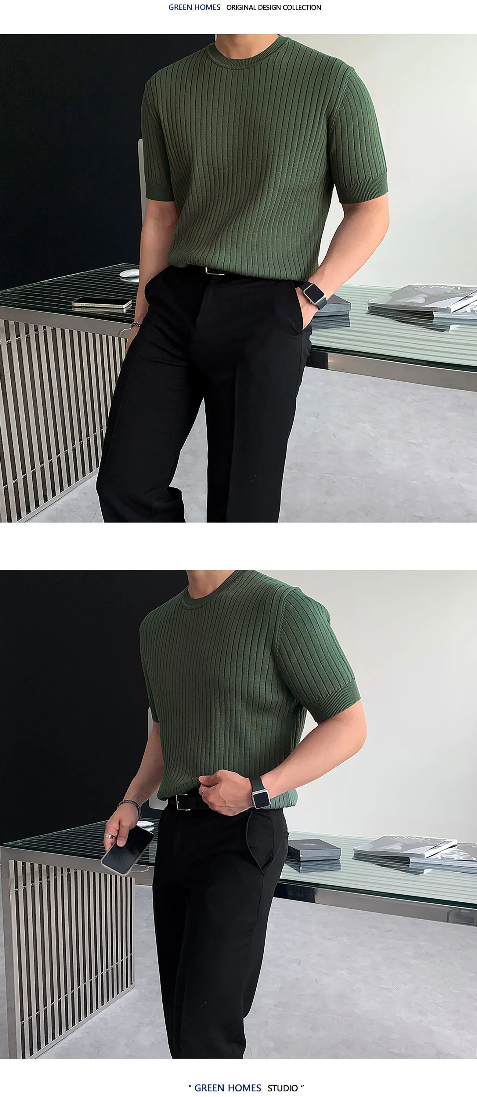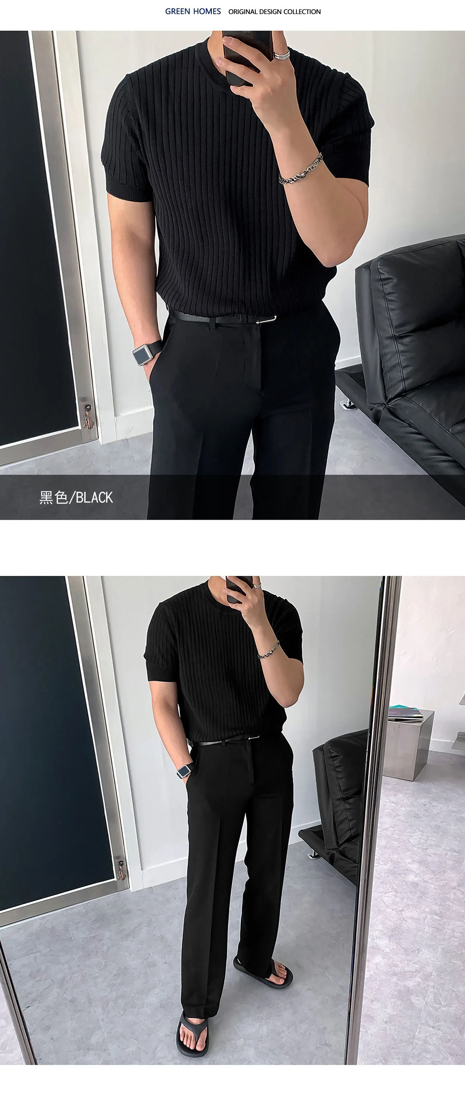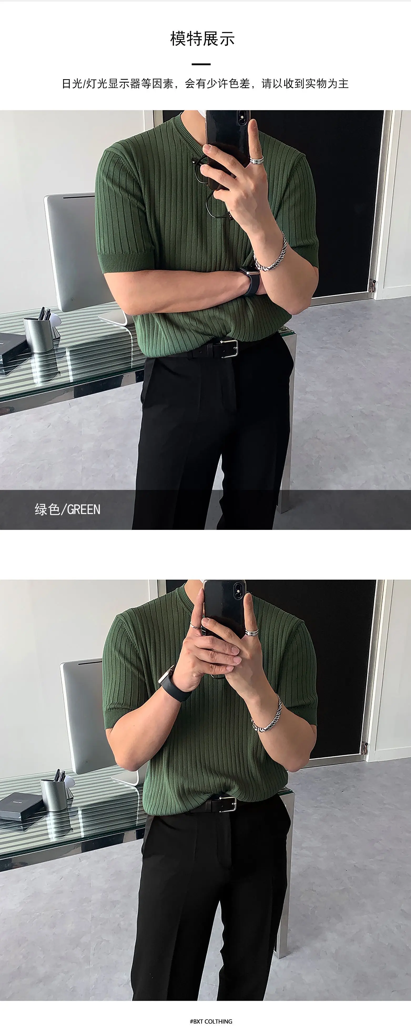 Men's T-shirts New Summer Short Sleeved Knitted Trendy Korean Style Round Neck Solid Color Pullover Male Clothing 9W1822