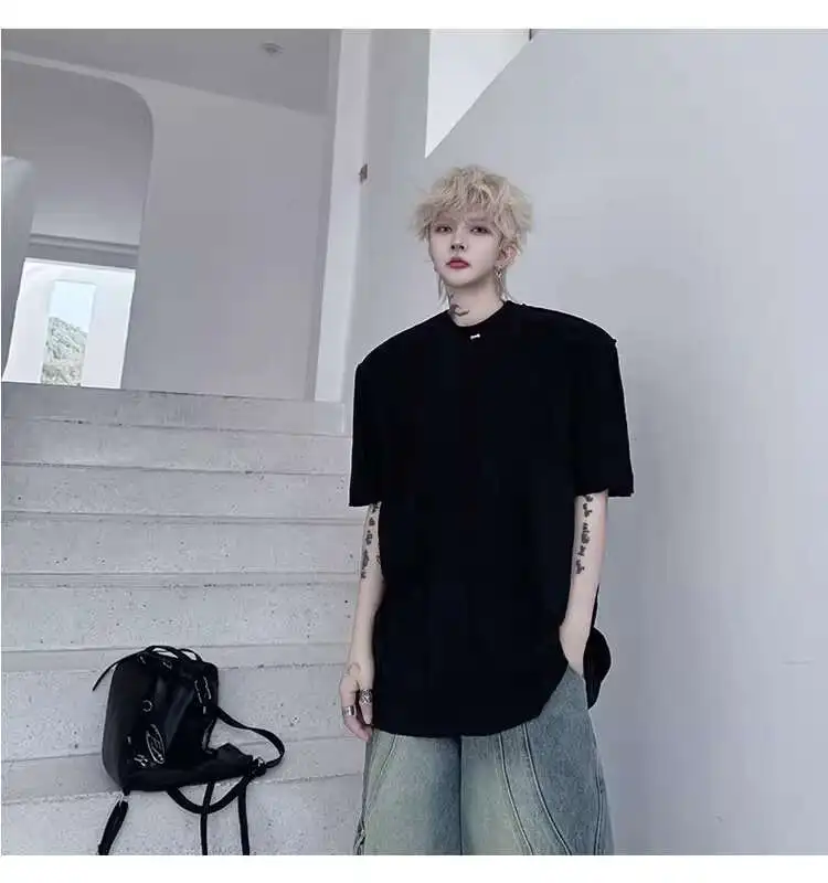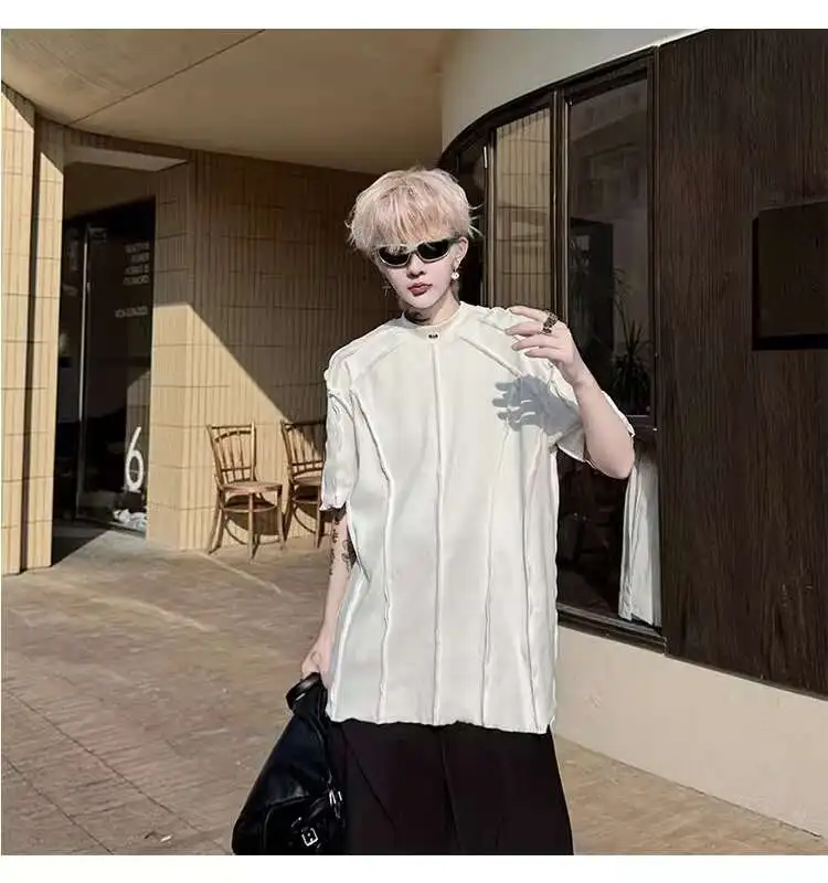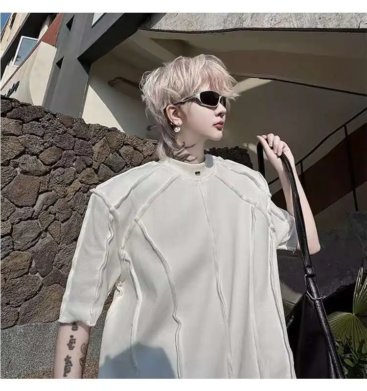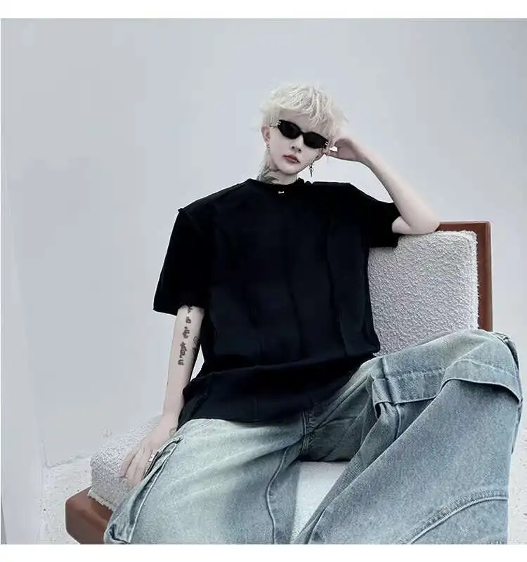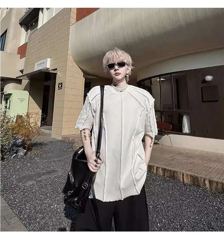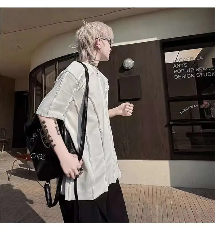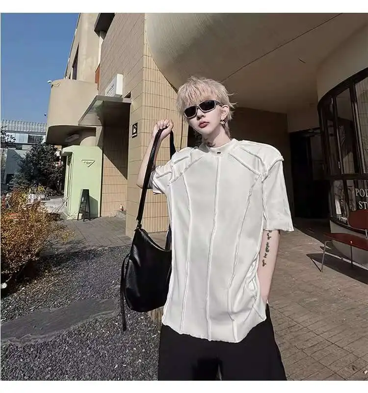 Men's T-shirts New Summer Solid Color Round Neck Handmade Nail Bead Seam Design Male Short Sleeve Trendy Menwear 9W1794