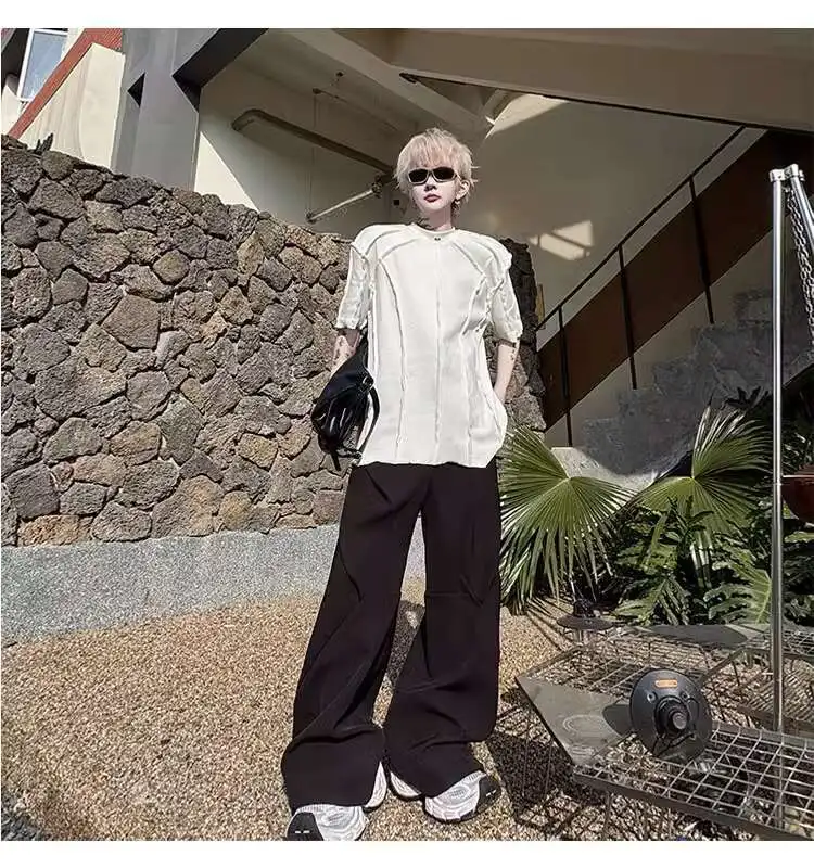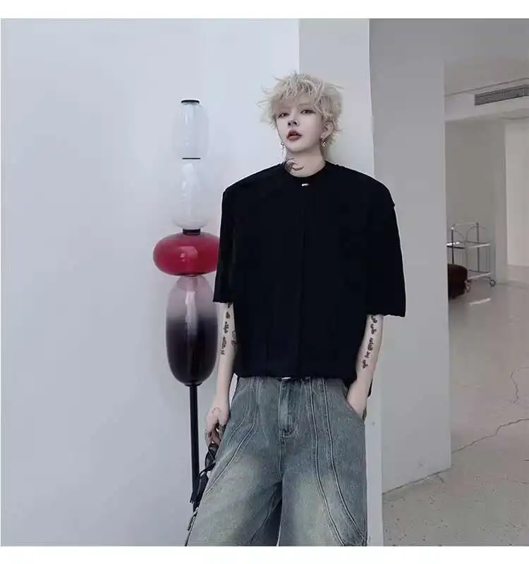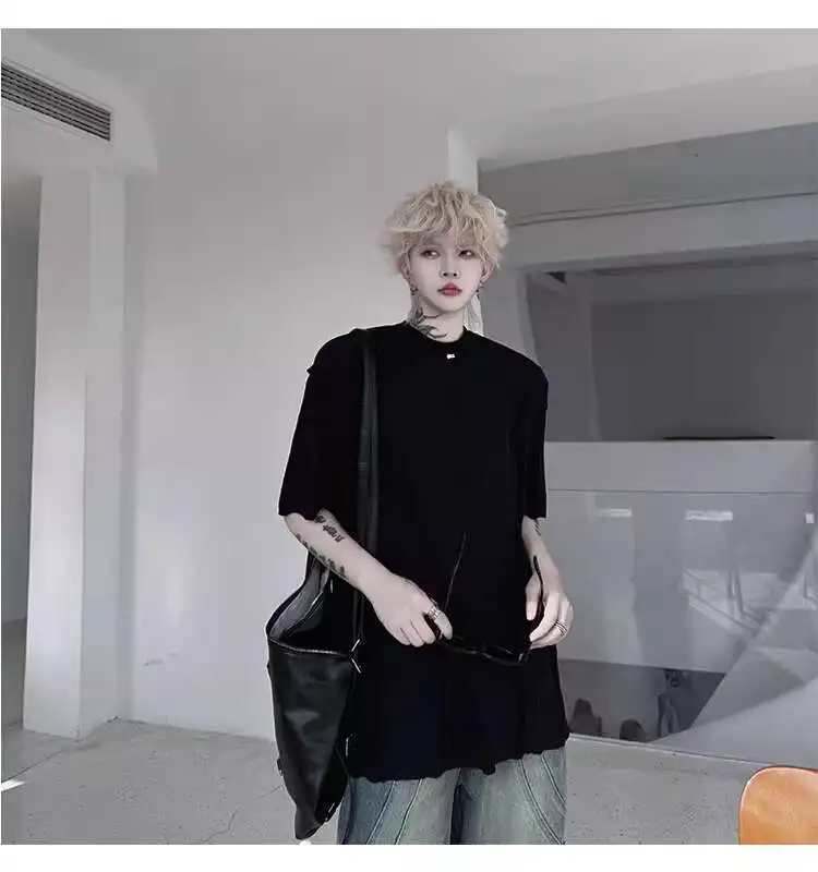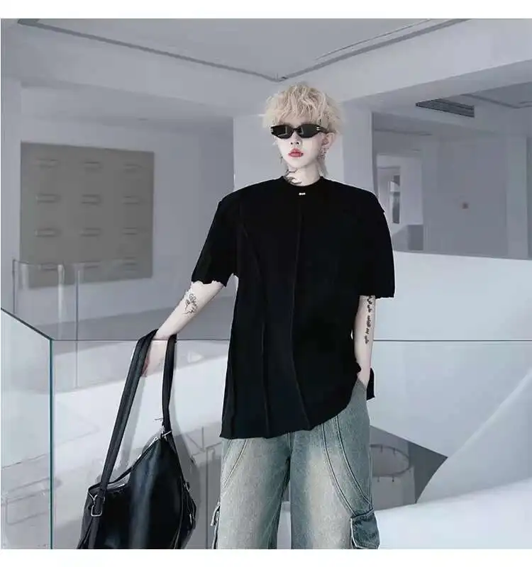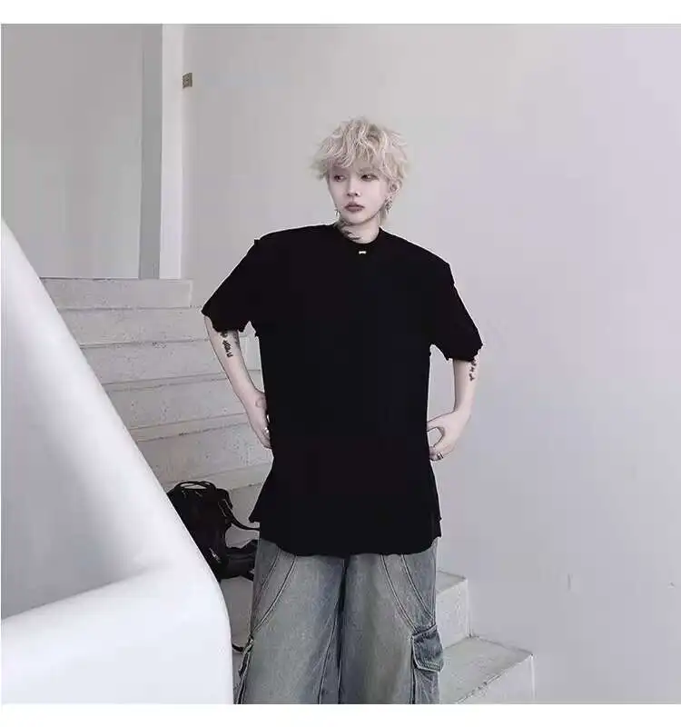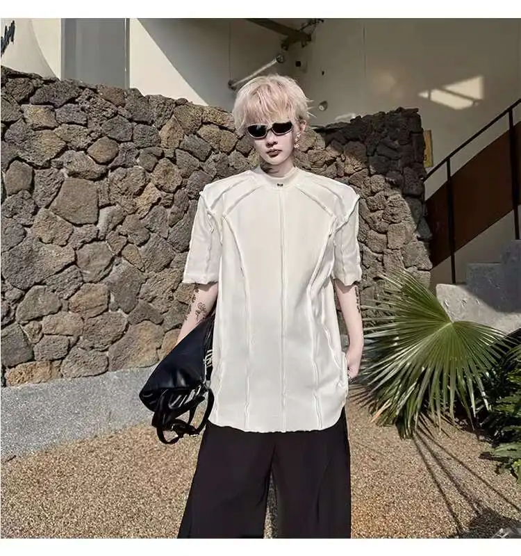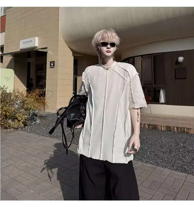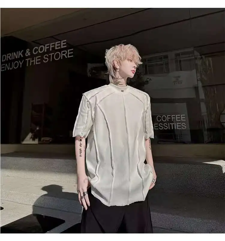 Men's T-shirts New Summer Solid Color Round Neck Handmade Nail Bead Seam Design Male Short Sleeve Trendy Menwear 9W1794