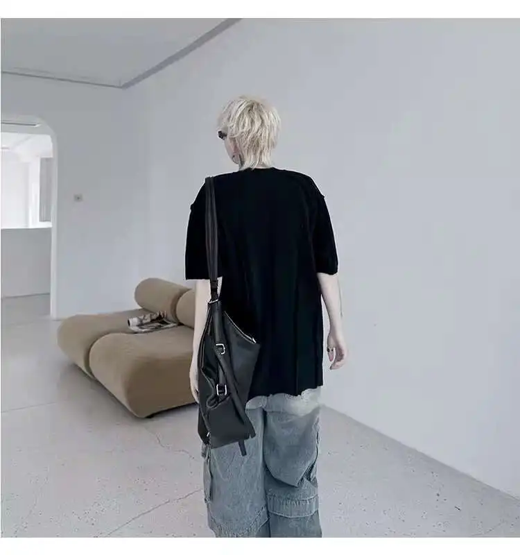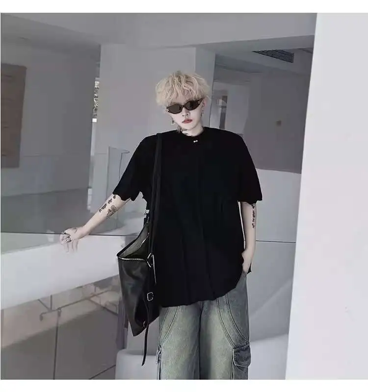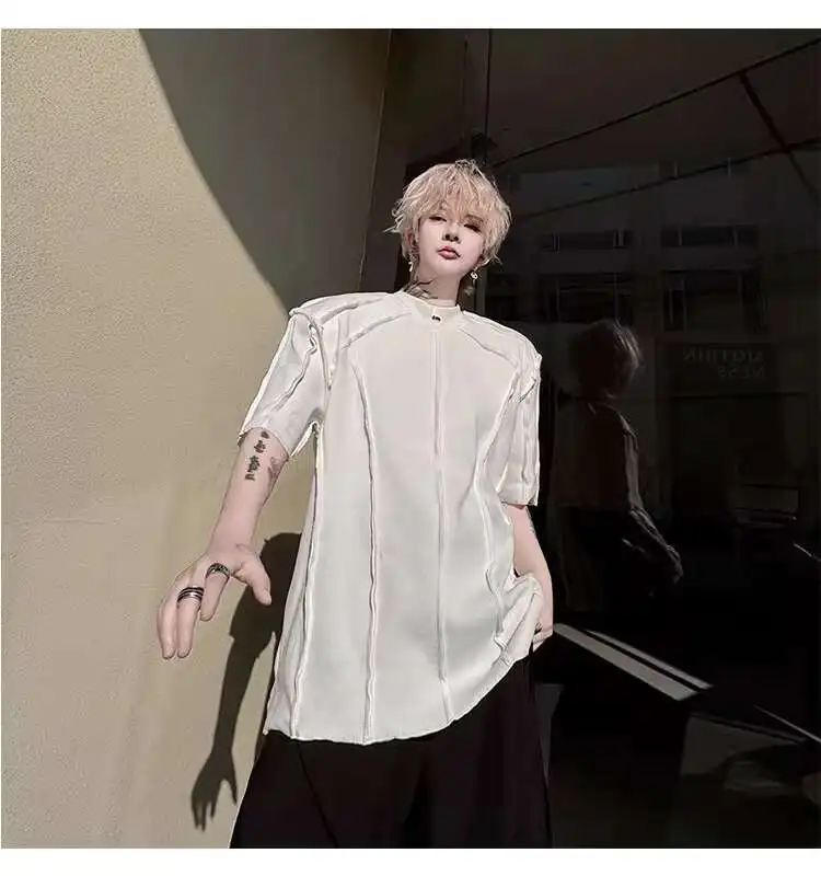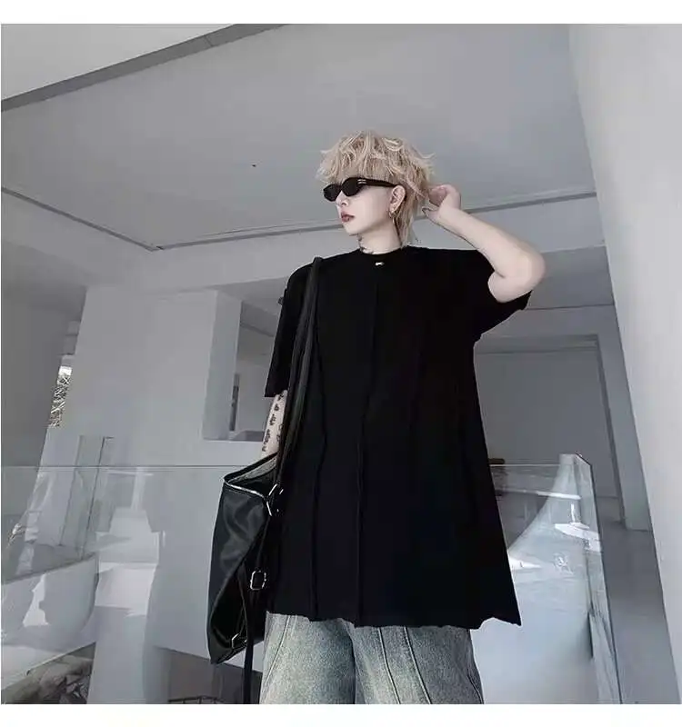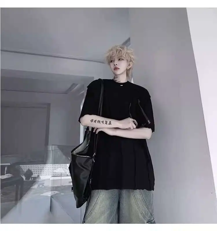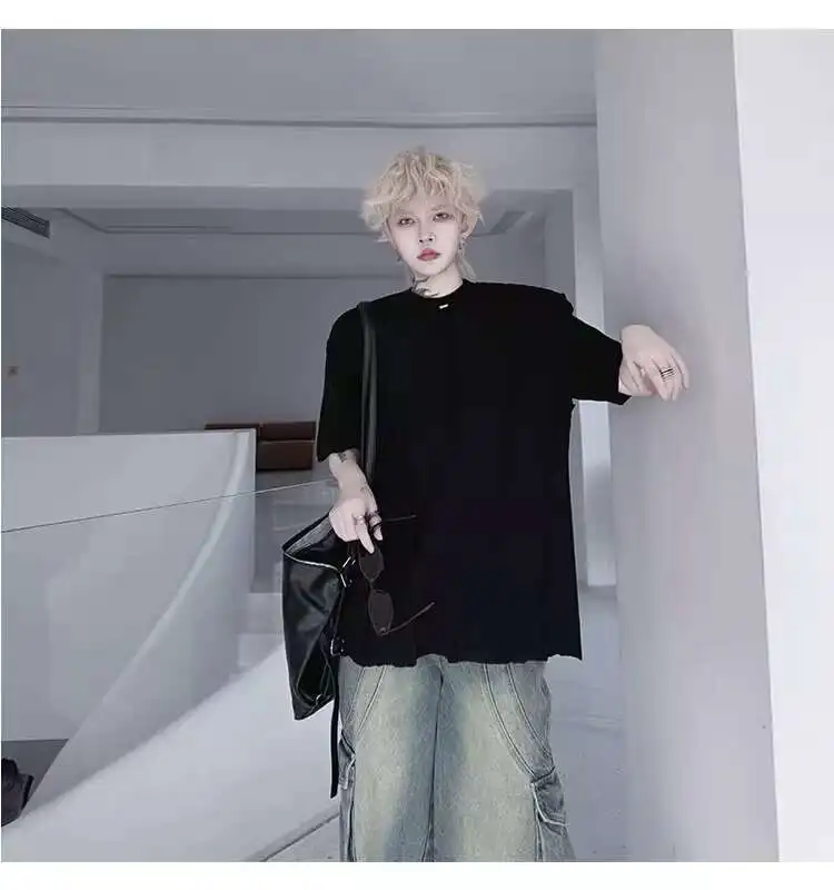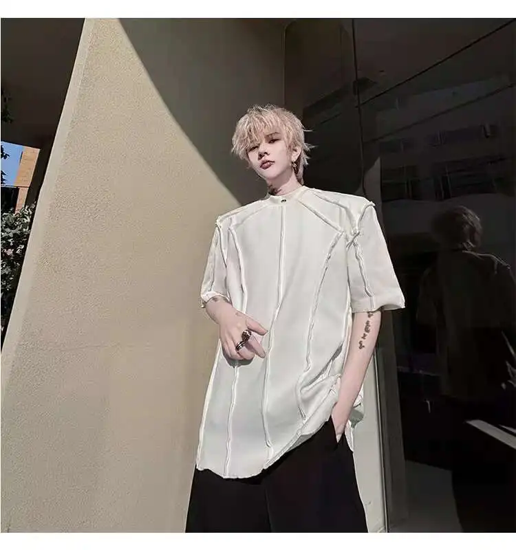 Men's T-shirts New Summer Solid Color Round Neck Handmade Nail Bead Seam Design Male Short Sleeve Trendy Menwear 9W1794