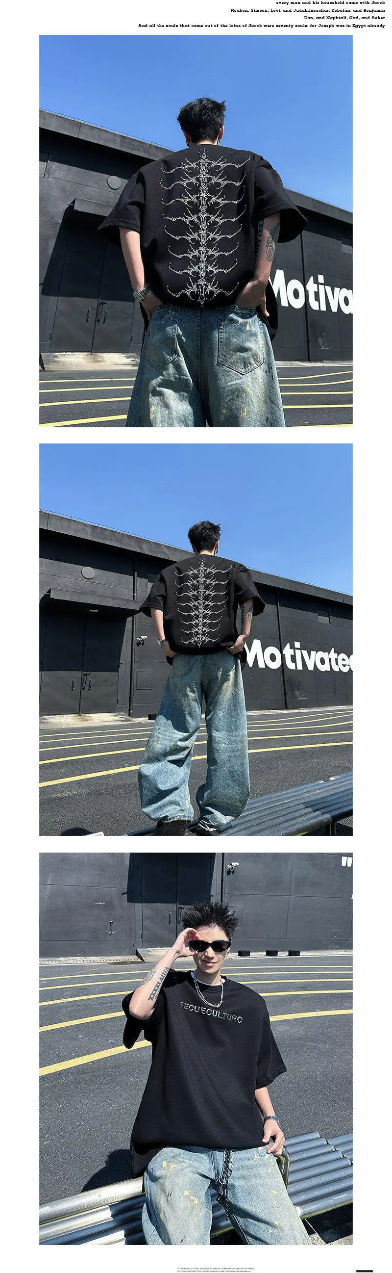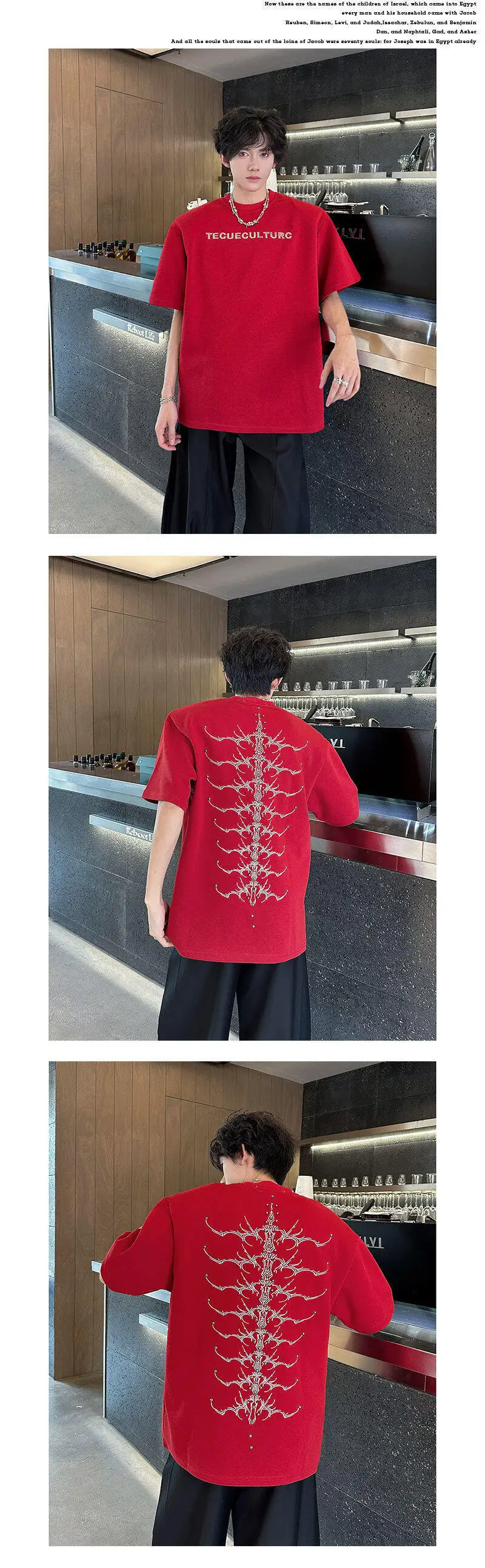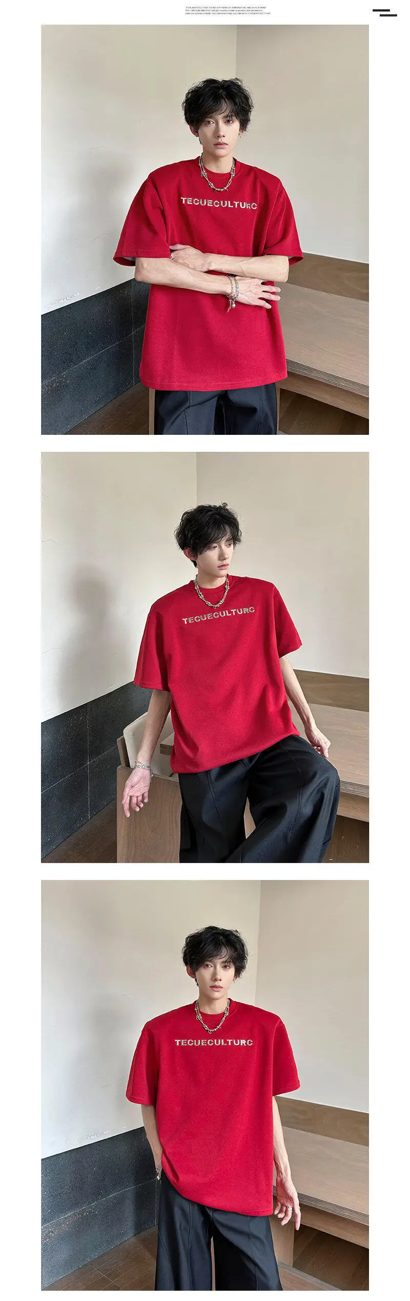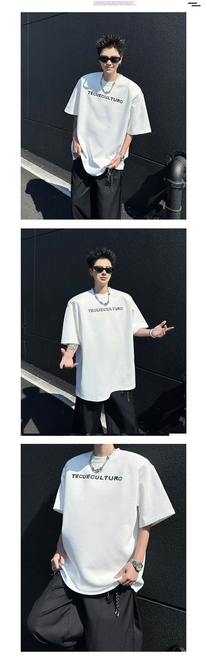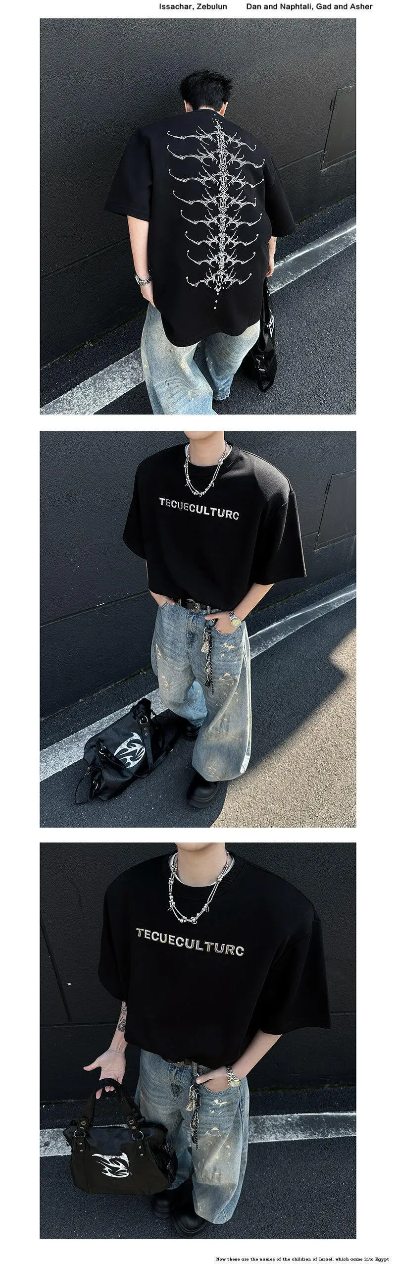 Men's T-shirts Short Sleeve Letter Printing Trendy Embroidered Nail Bead Shoulder Pad Tide Pullover Male Casual Top 9W1831