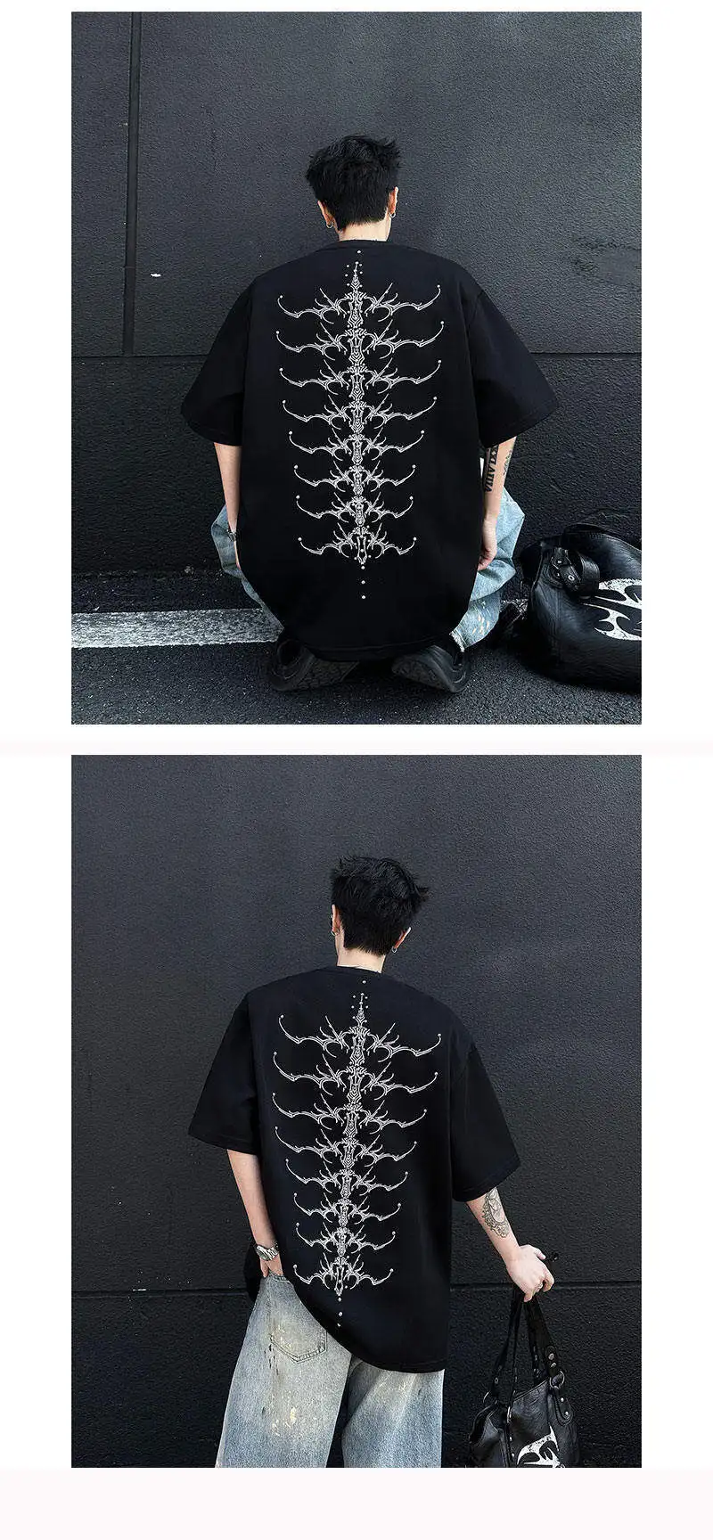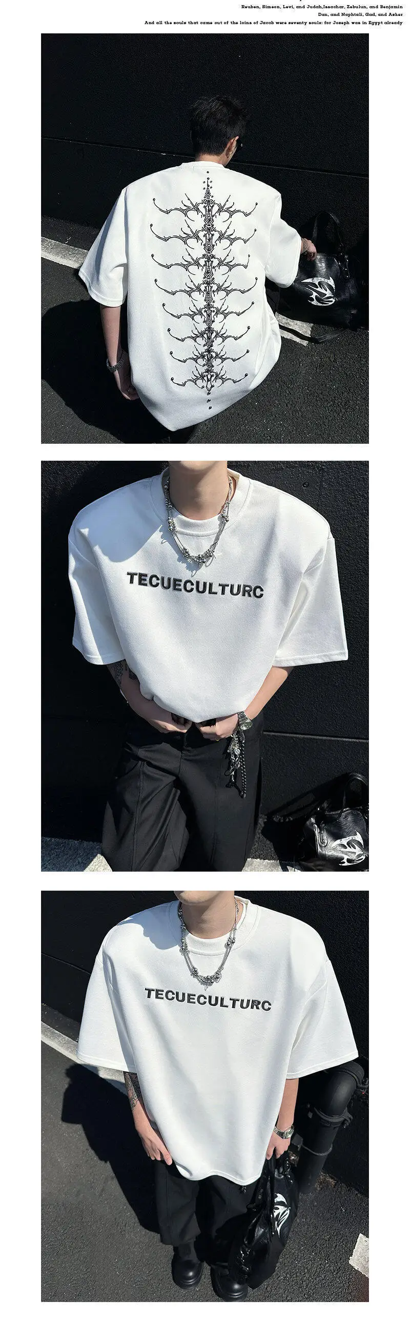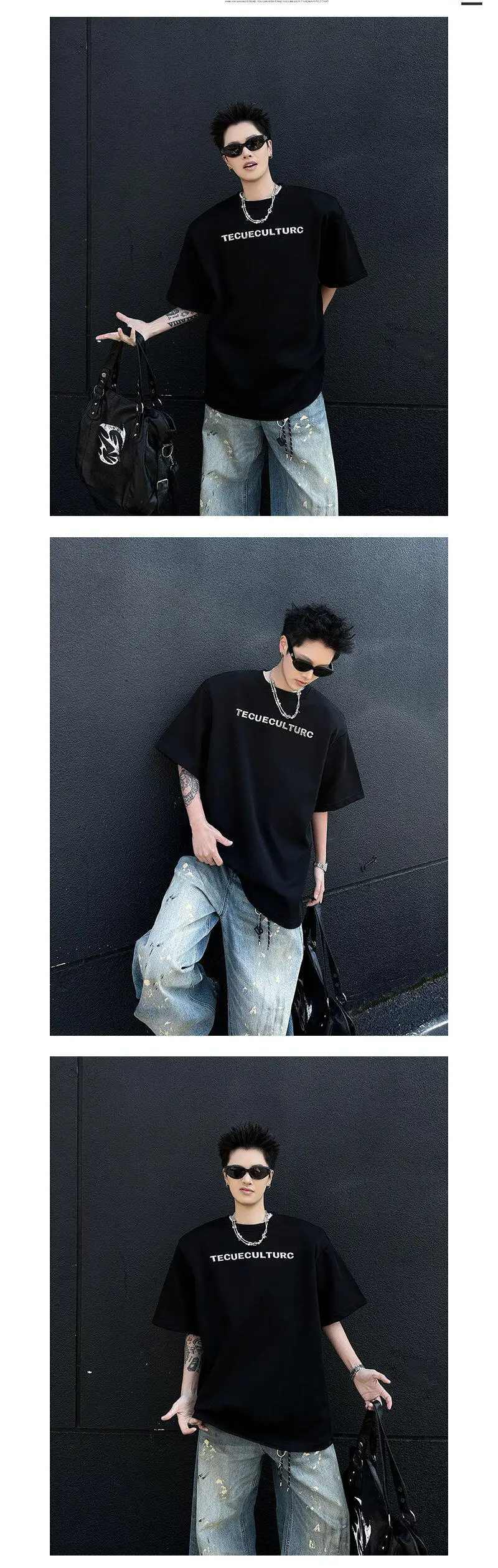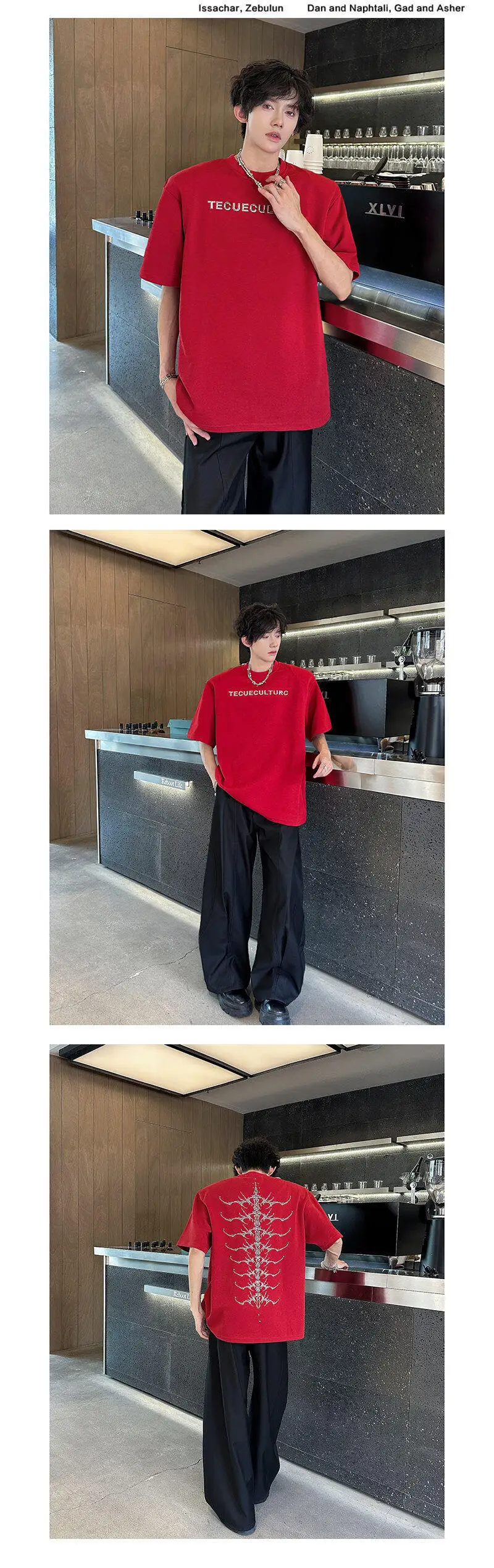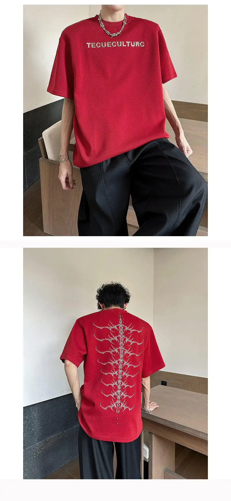 Men's T-shirts Short Sleeve Letter Printing Trendy Embroidered Nail Bead Shoulder Pad Tide Pullover Male Casual Top 9W1831