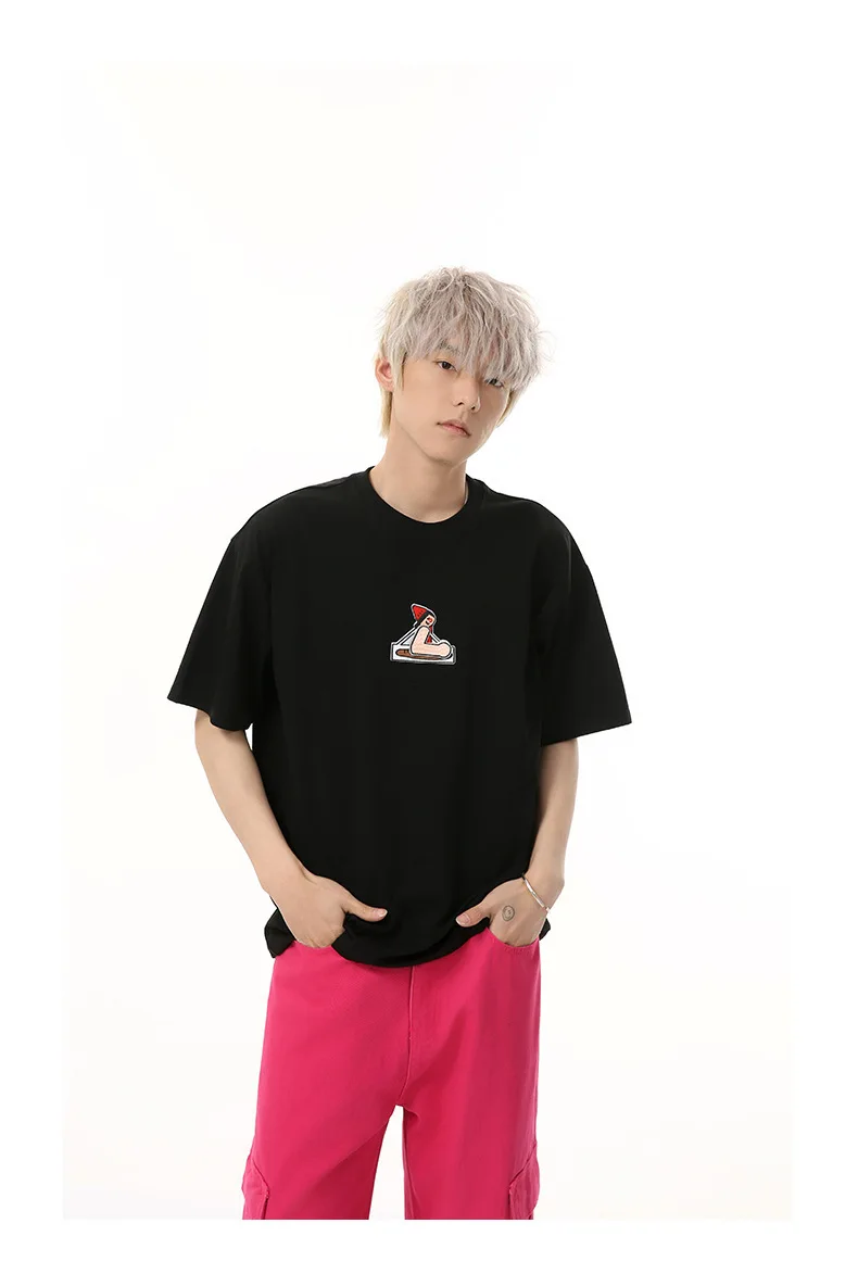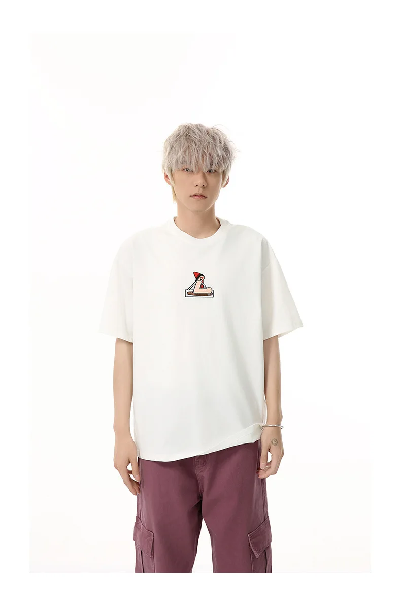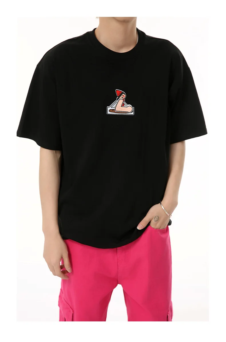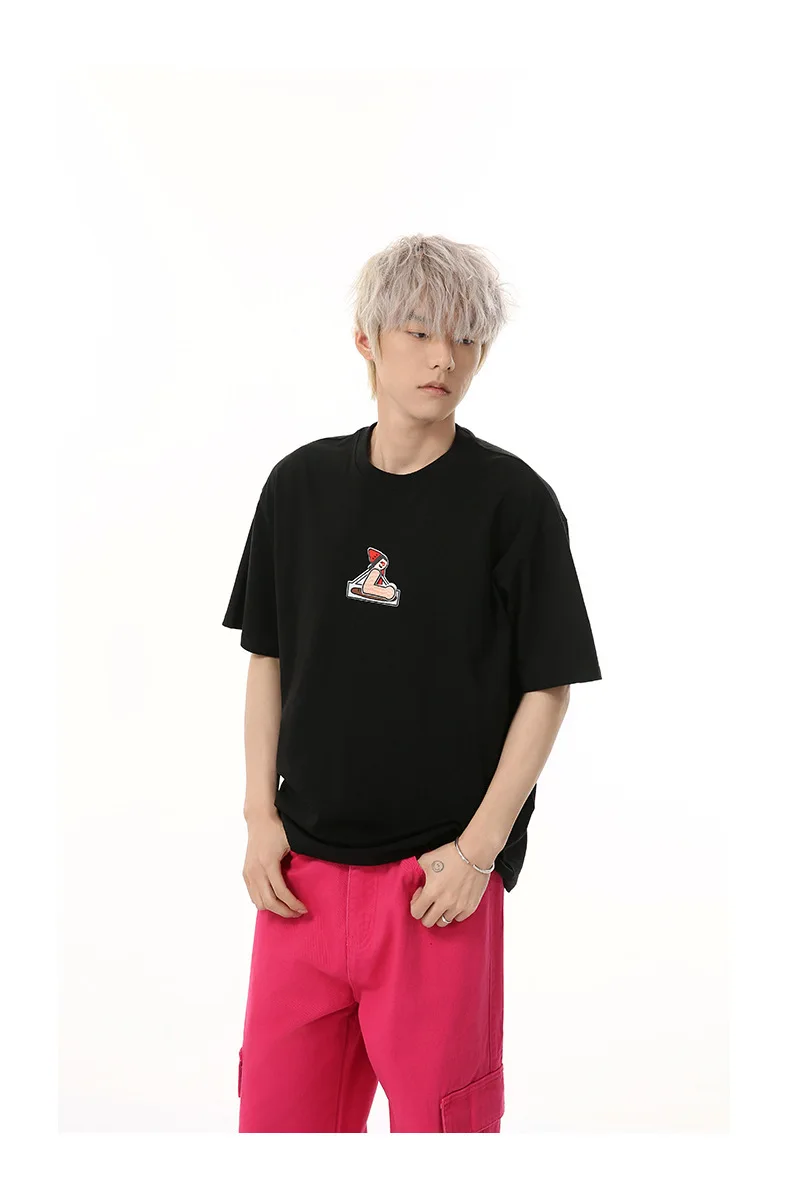 Load image into Gallery viewer, Men's T-shirts Short Sleeve New Korean Cartoon Print Embroidery Design Solid Color Round Neck Casual Trend T-shirt 9W1683