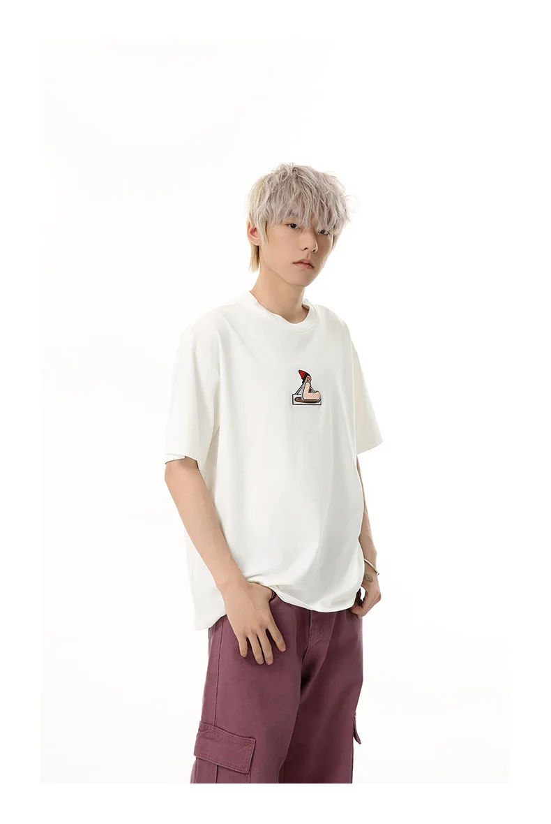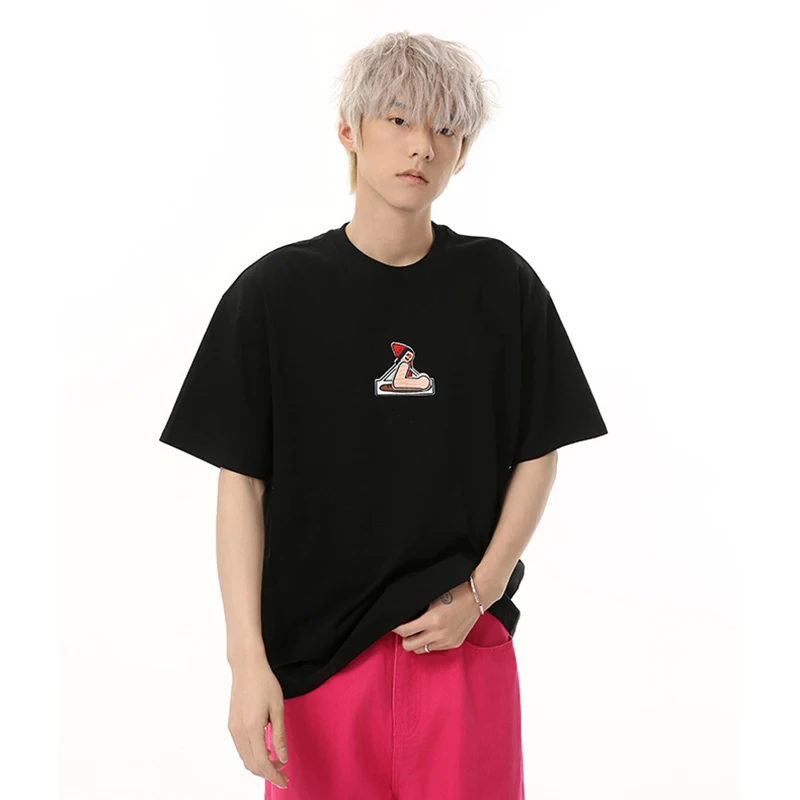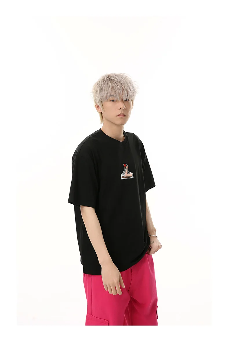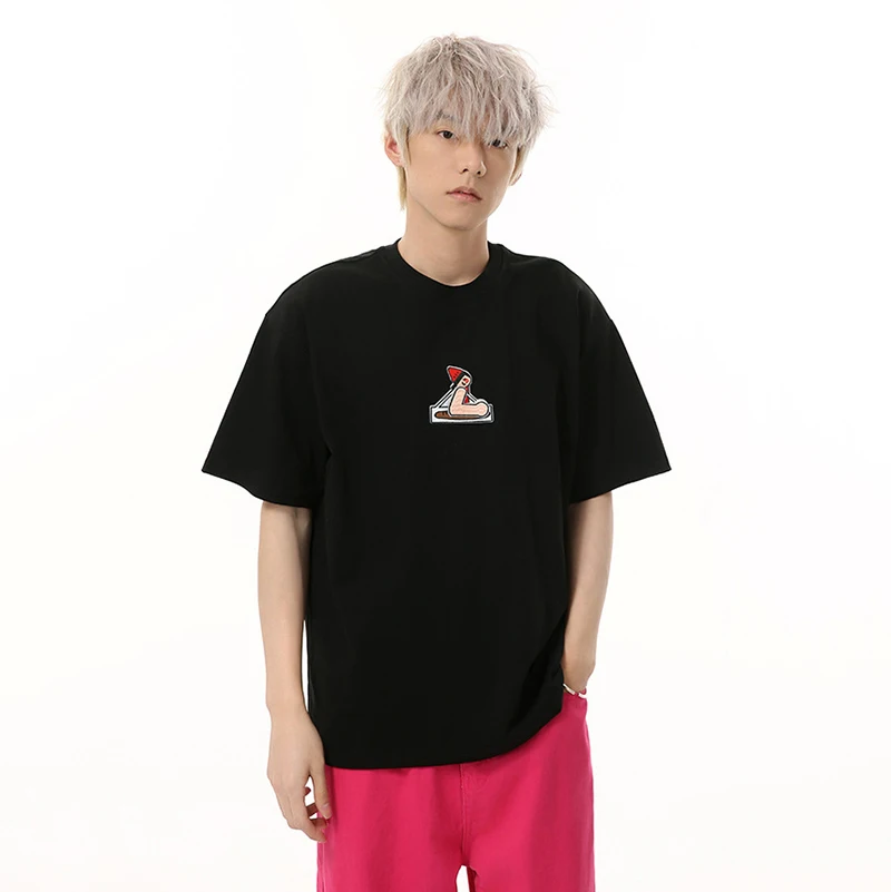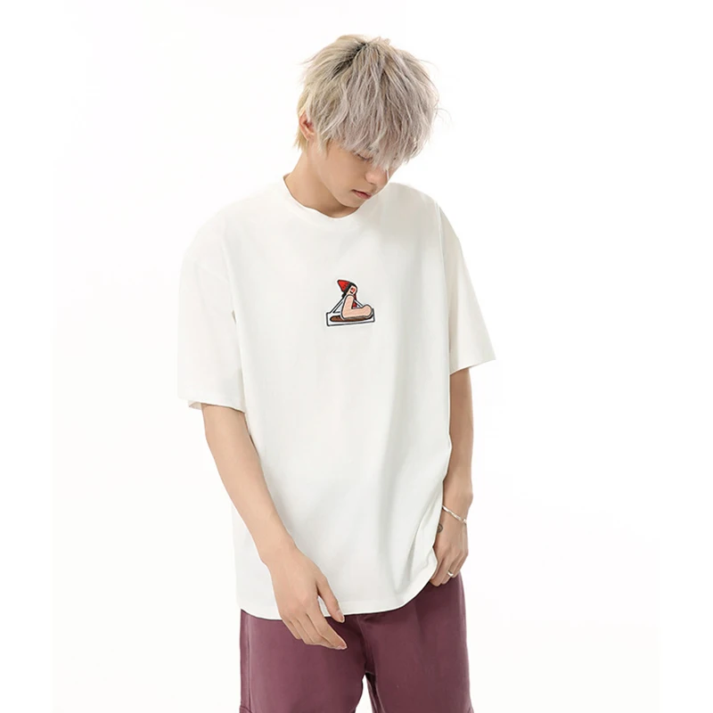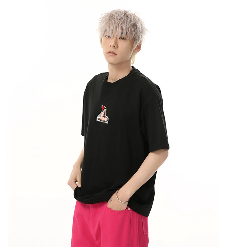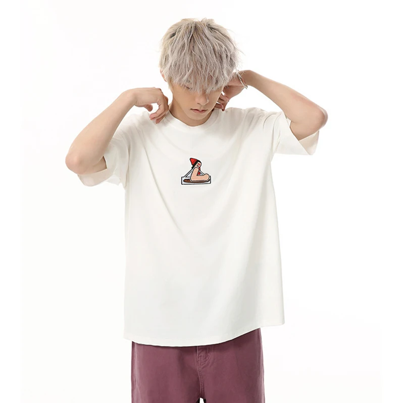 Men's T-shirts Short Sleeve New Korean Cartoon Print Embroidery Design Solid Color Round Neck Casual Trend T-shirt 9W1683