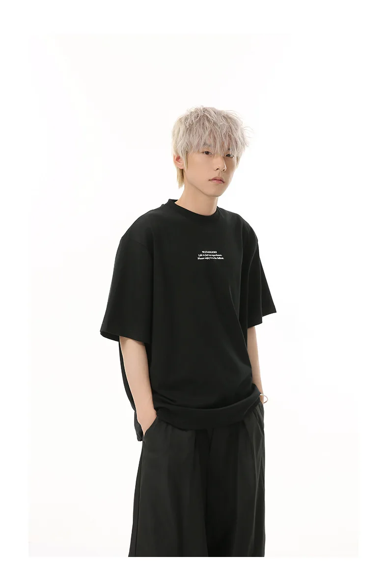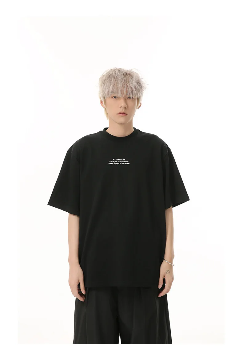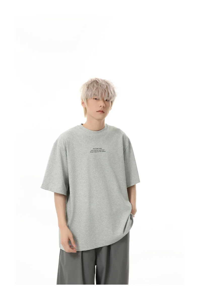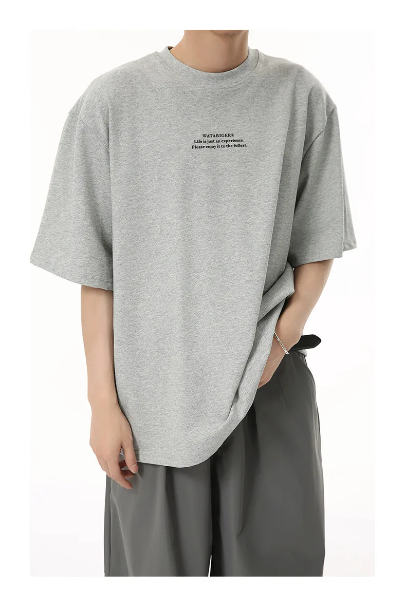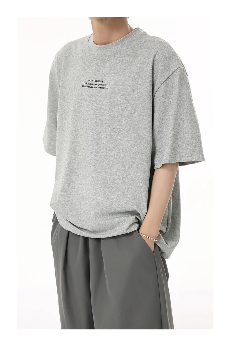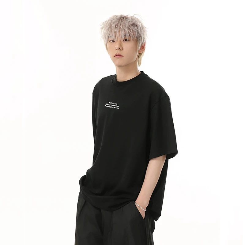 Men's T-shirts Short Sleeve New Korean Style Letter Print Design Round Neck Solid Color Trendy Male Pullover Top 9W1834