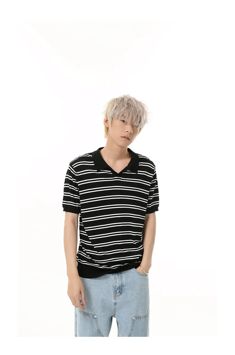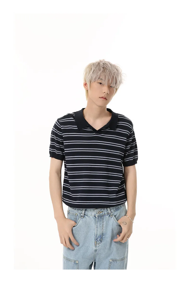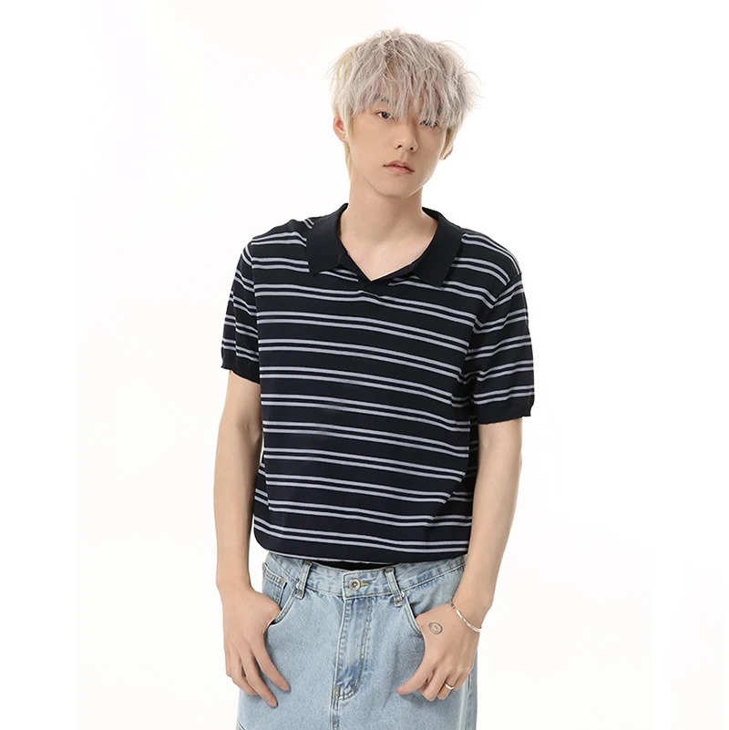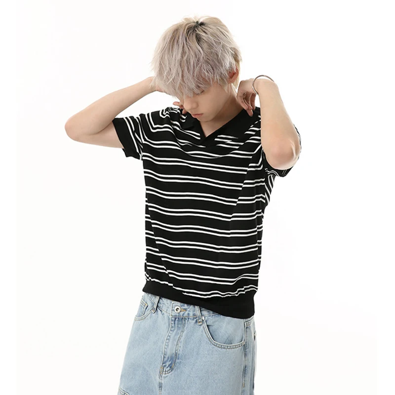 Men's T-shirts Short Sleeve New Summer Simple Stripe Contrast Color Design Casual Male Clothing Pullover Men Top 9W1682