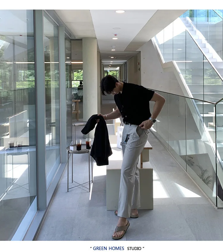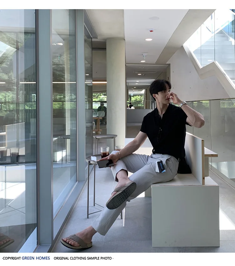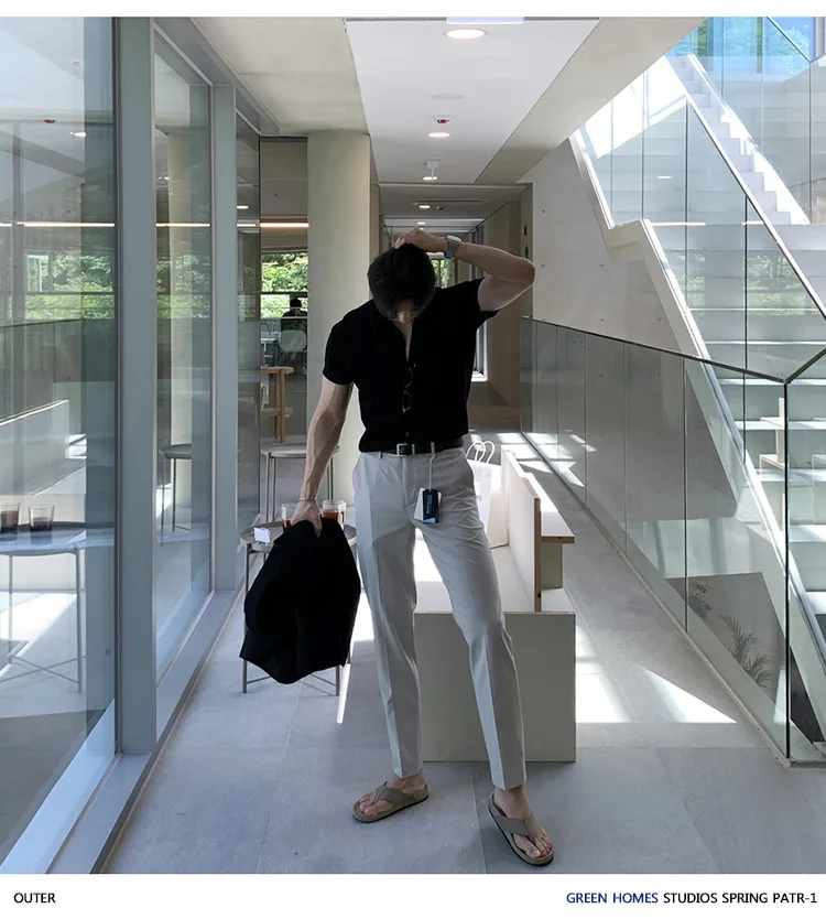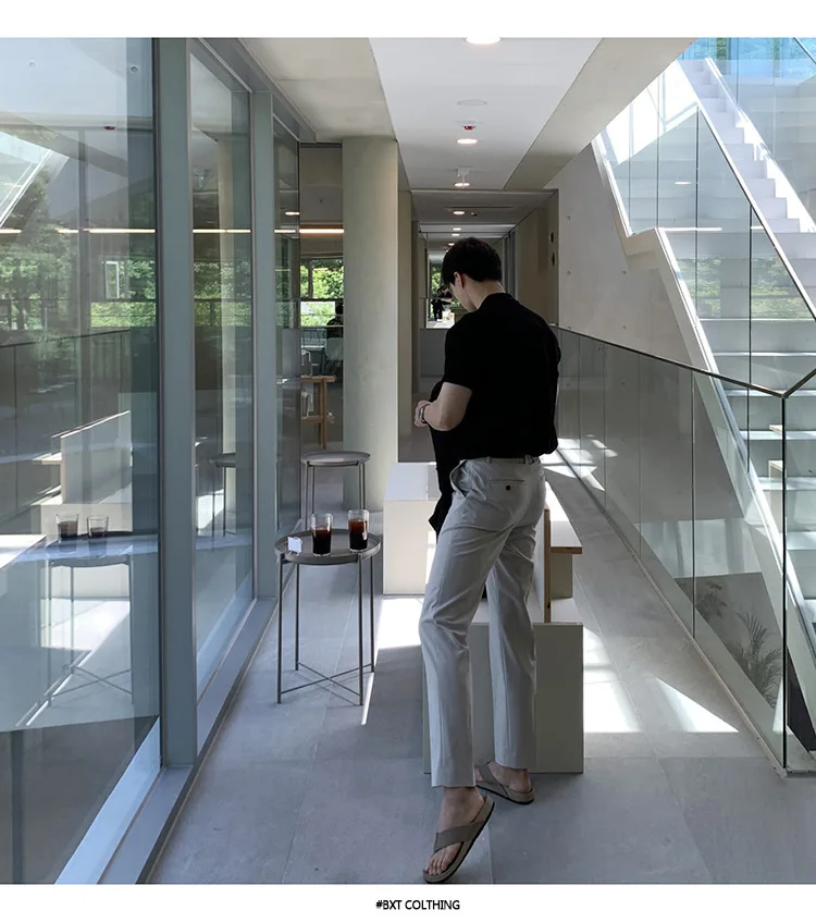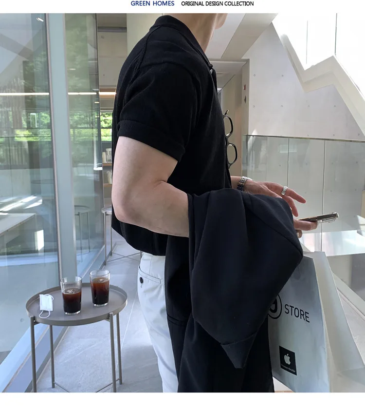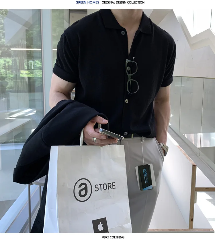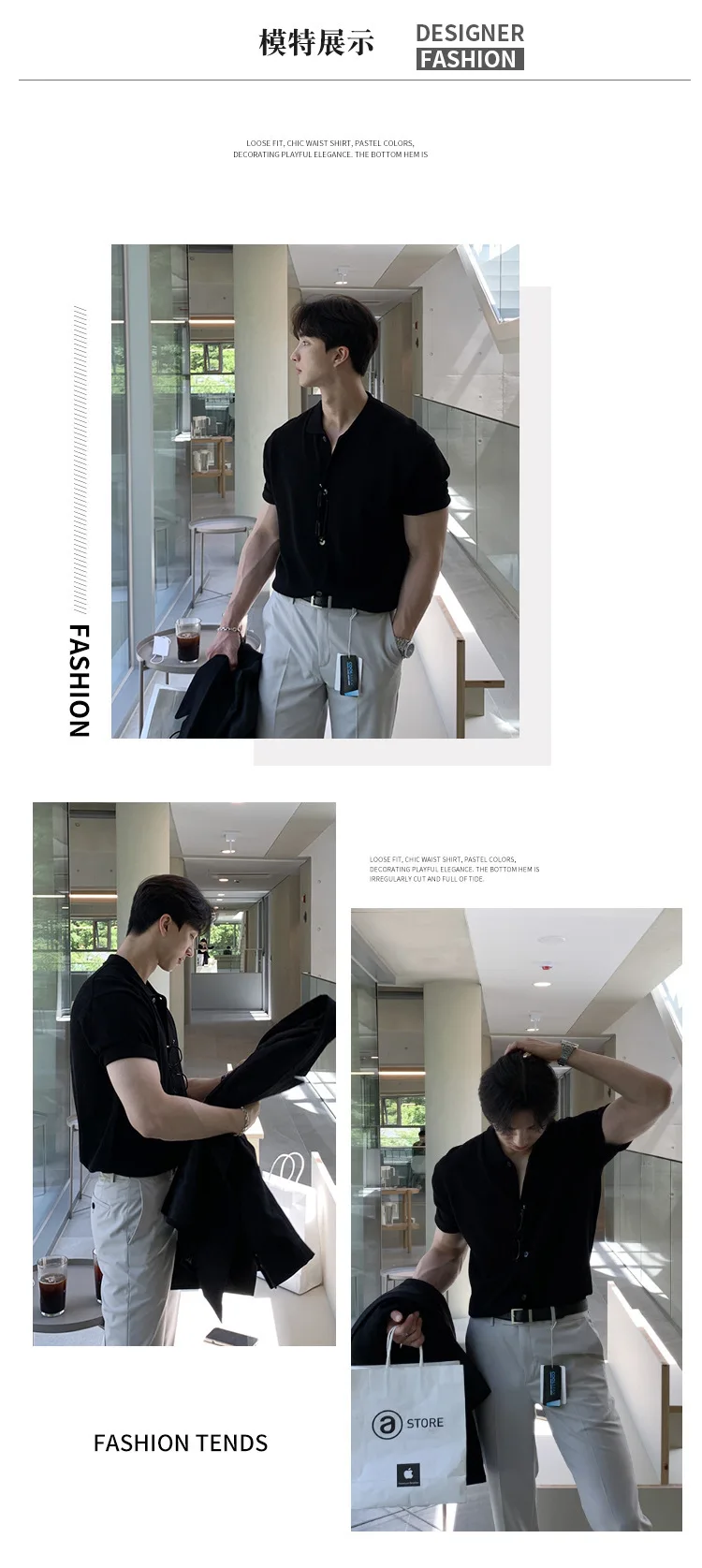 Men's T-shirts Solid Color Turn-down Collar Short Sleeved Single Breasted New Korean Summer Casual Male T-shirt 9W1361