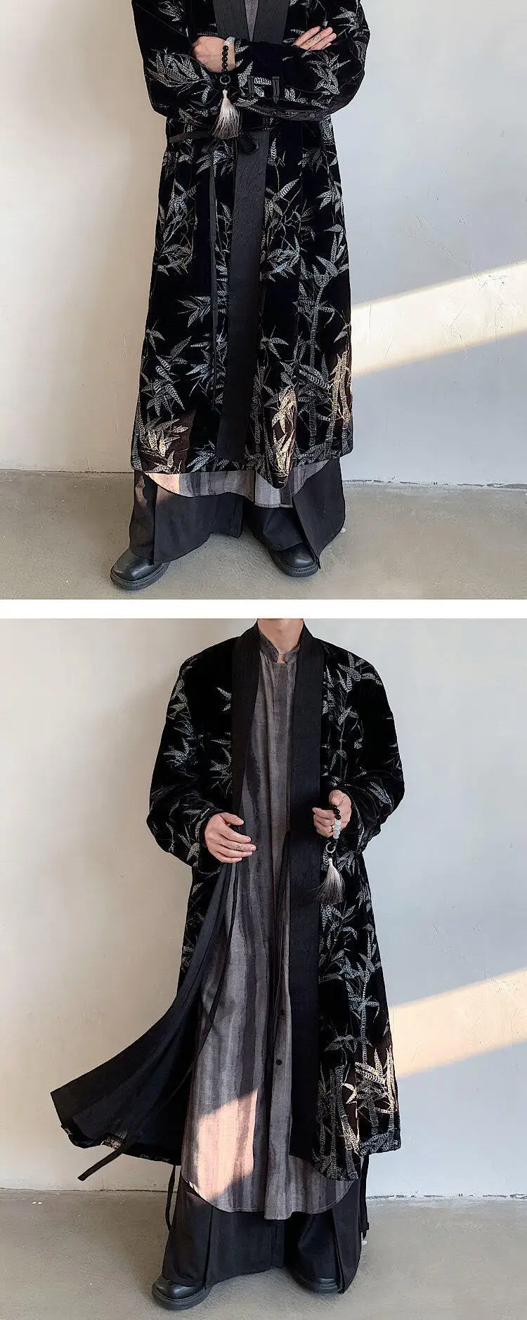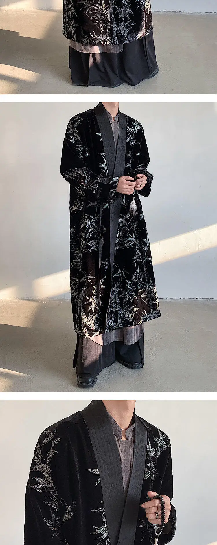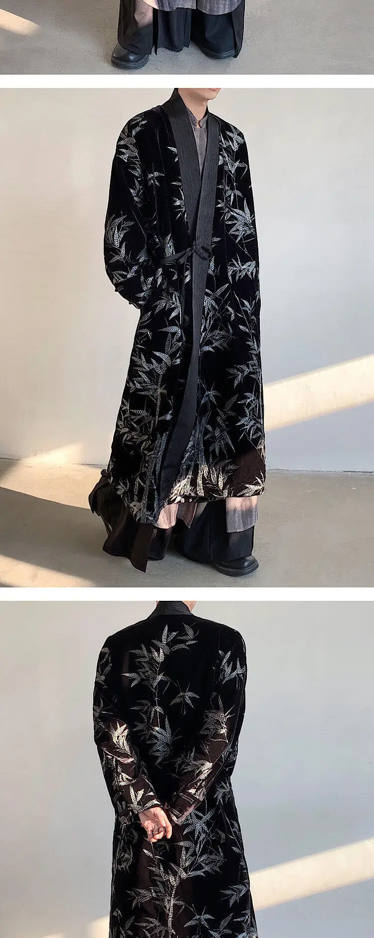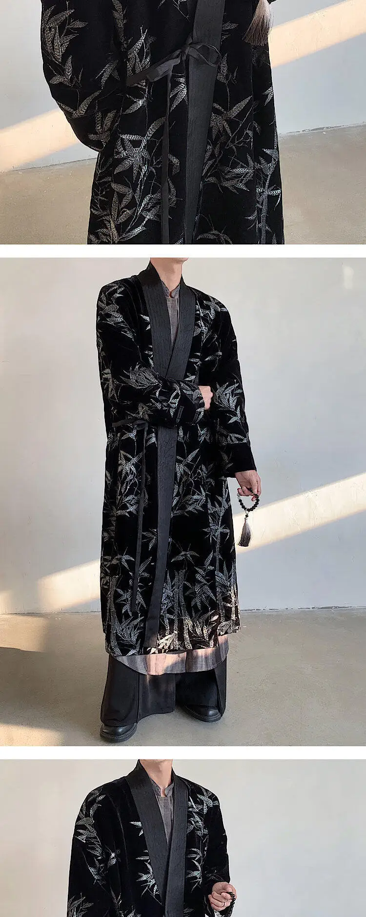 Men's Trench Coat Spring Embroidered Silver Bamboo Decoration New Chinese Style Stand Collar Handsome Male Clothing 9W1706