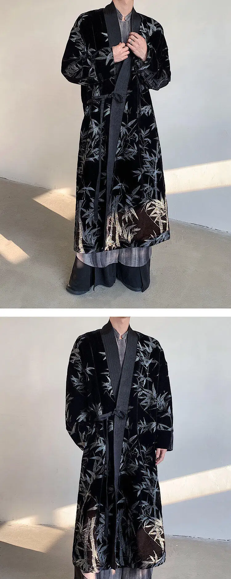 Load image into Gallery viewer, Men's Trench Coat Spring Embroidered Silver Bamboo Decoration New Chinese Style Stand Collar Handsome Male Clothing 9W1706