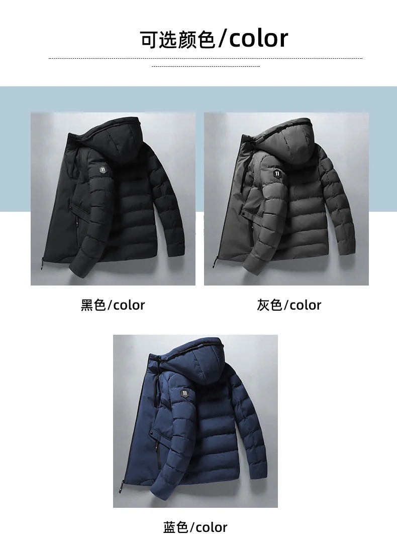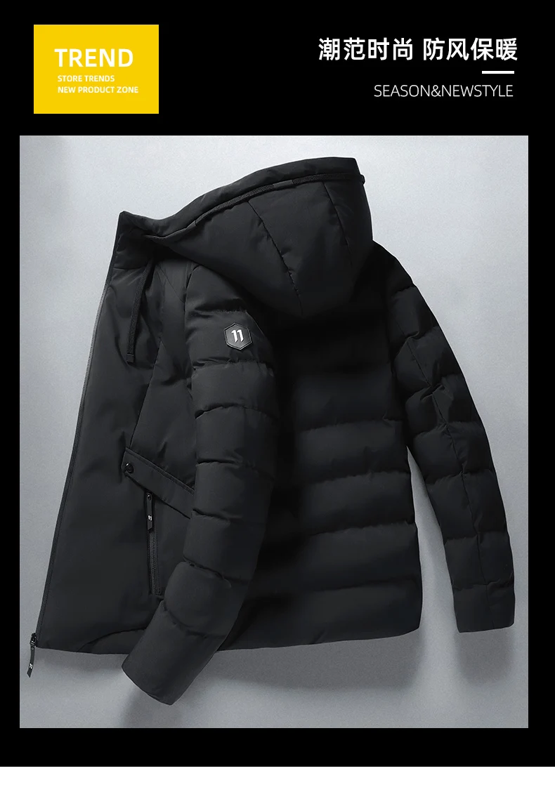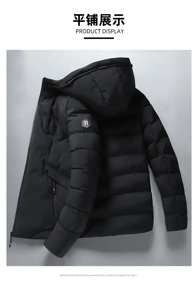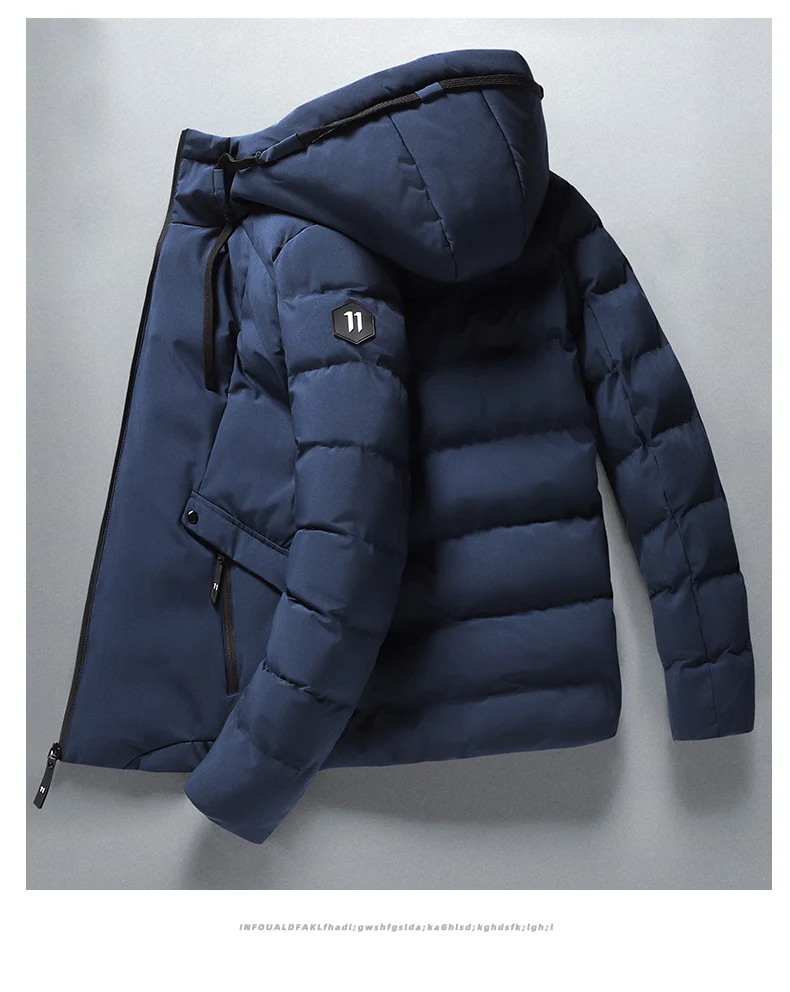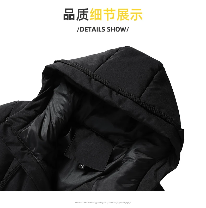 Mens Winter Hooded Jacket Cotton Padded Parka Coat Men's Fashion Down Cotton Jacket Korean Style Casual Mens Overcoat