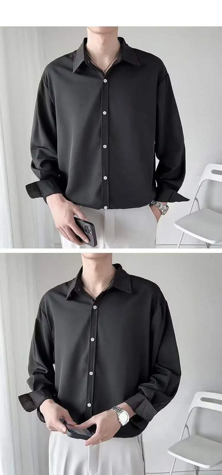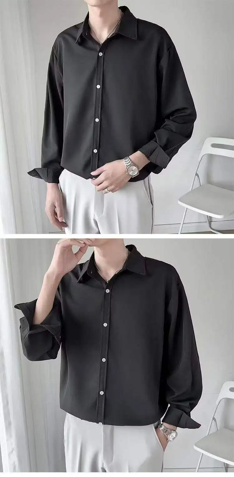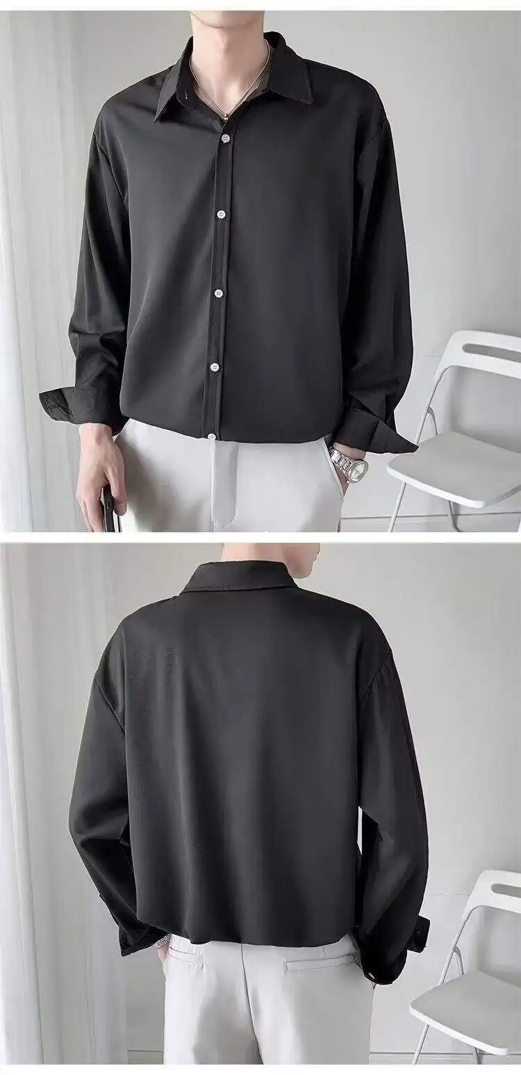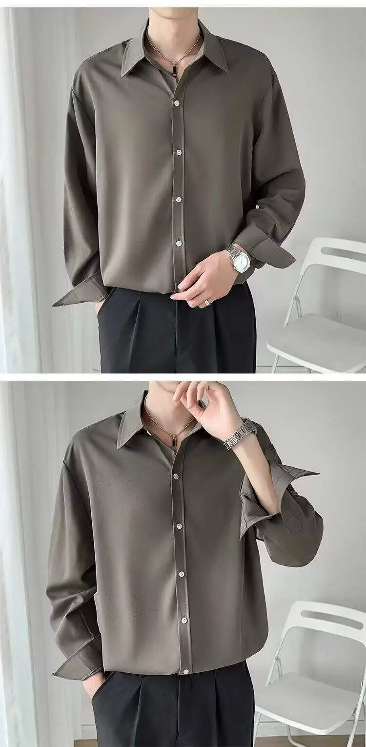 Mens's Shirt Long Sleeved Shirts Simple Trendy Solid Color Turn-down Collar New Fashionable Korean Tide Style 2025 9W1209
