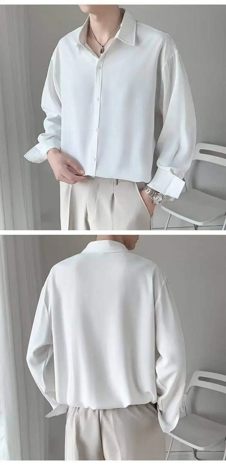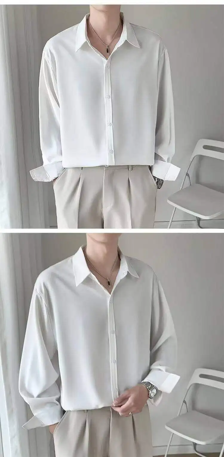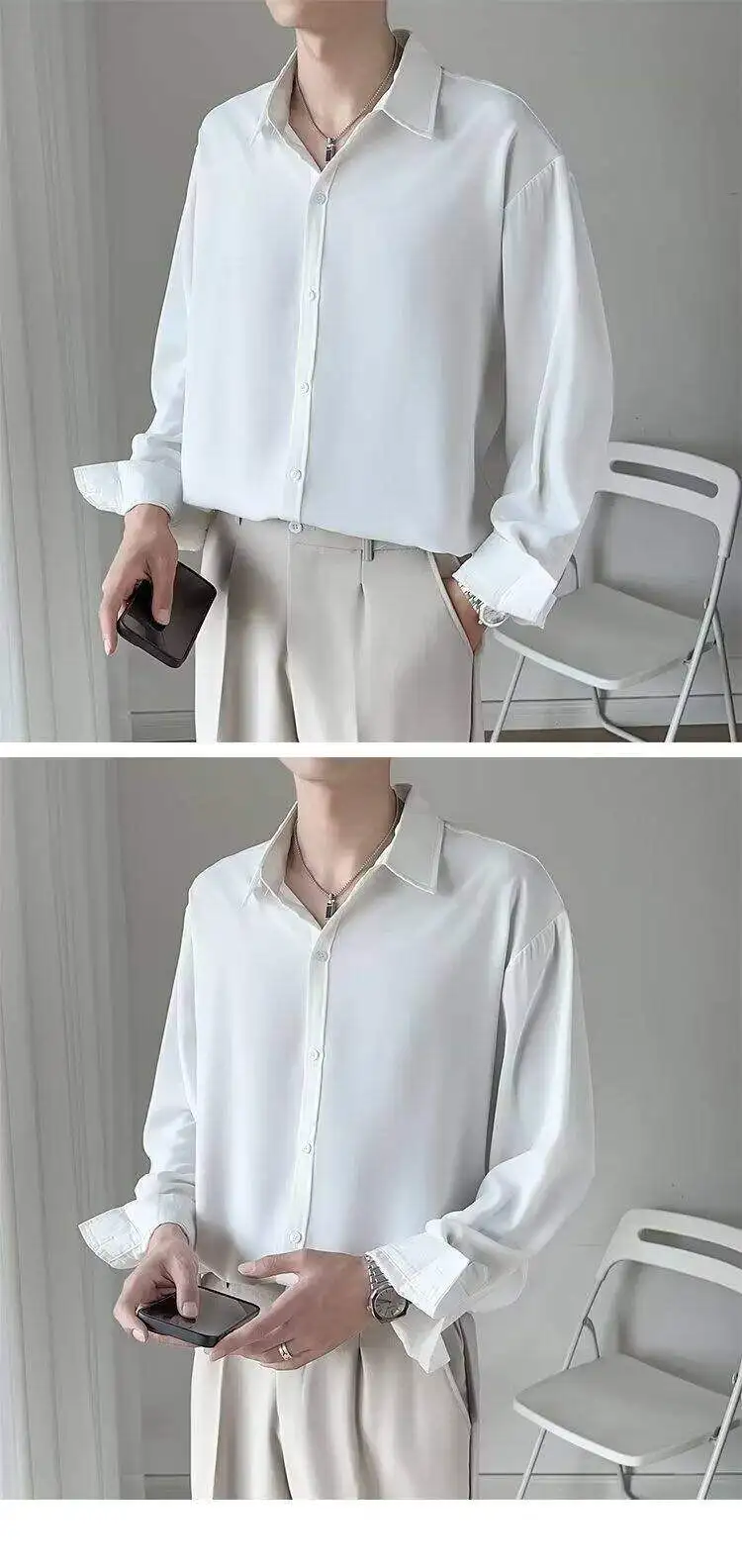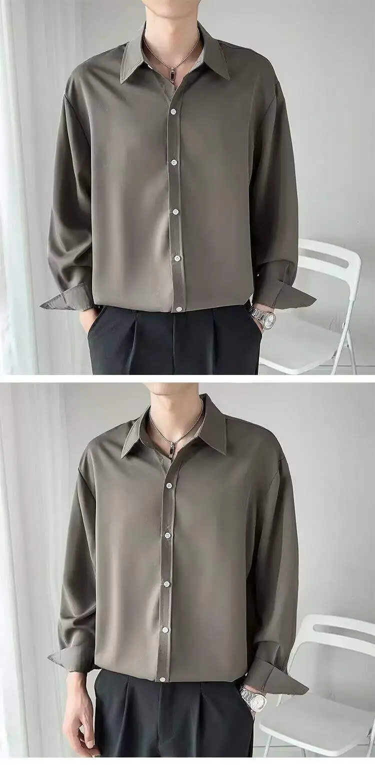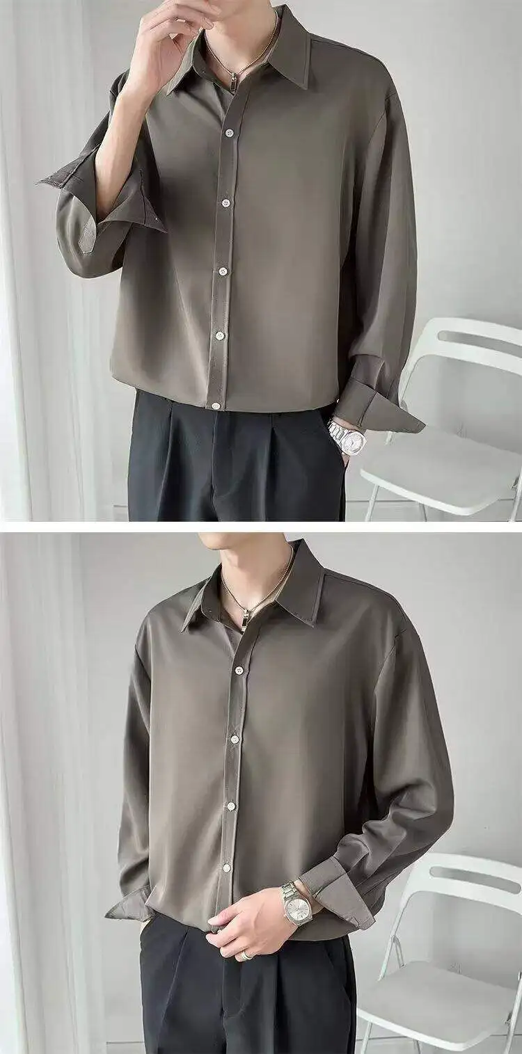 Mens's Shirt Long Sleeved Shirts Simple Trendy Solid Color Turn-down Collar New Fashionable Korean Tide Style 2025 9W1209