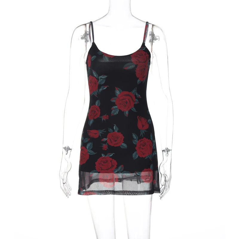 Mesh Elegant Flower Print Slips Patchwork Sexy Slim Maxi Dress Summer Women Fashion Outfit Party Beach Vacation
