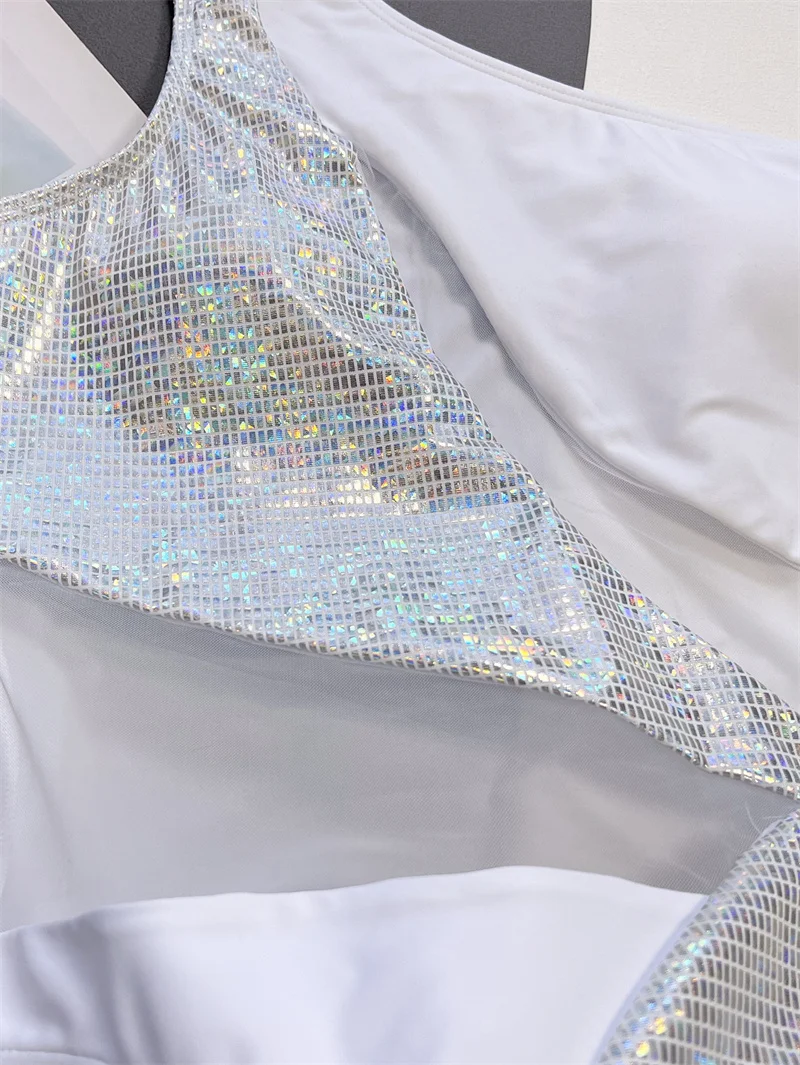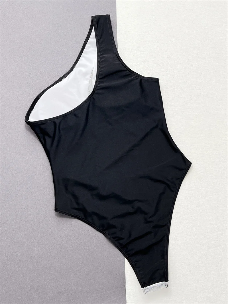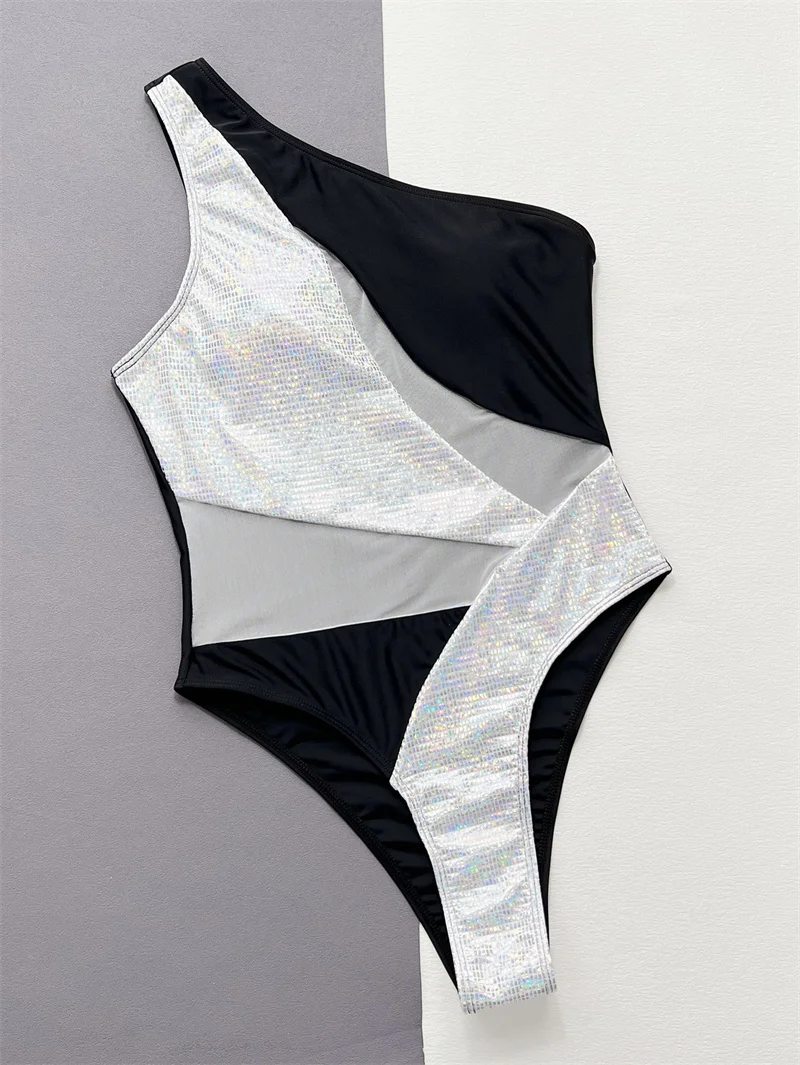 Mesh Patchwork One Piece Swimsuit 2024 Swimwear for Women Sexy One Shoulder Bathing Suit High Waist Monokini