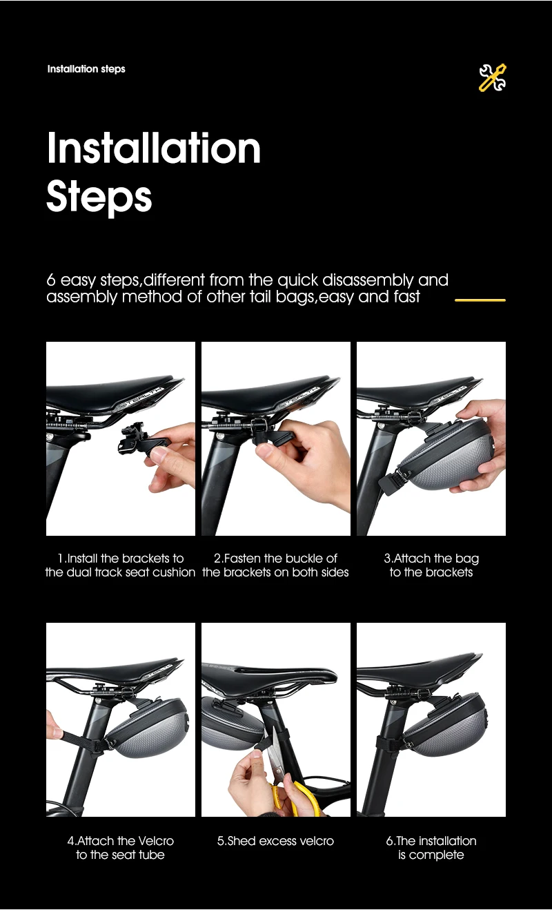 WATER PROOF FABRIC: The bike saddle bag is made of high quality water proof fabric compound with PU & EVA . It is durable,water proof and tear-resistant,well padded shape protect your cycling accessories
