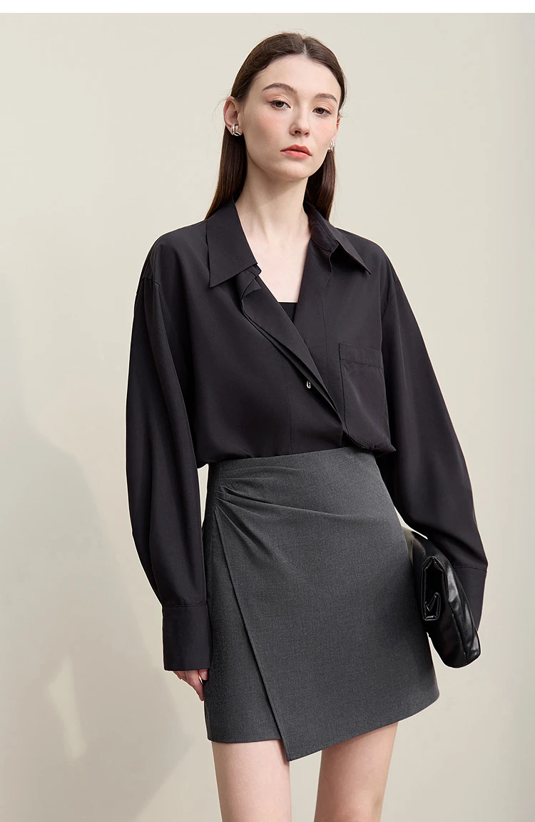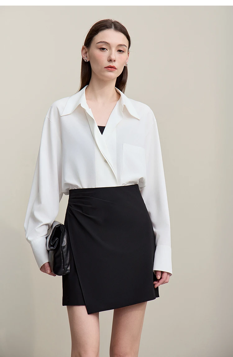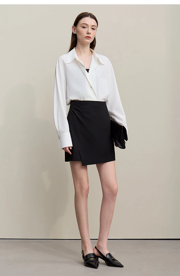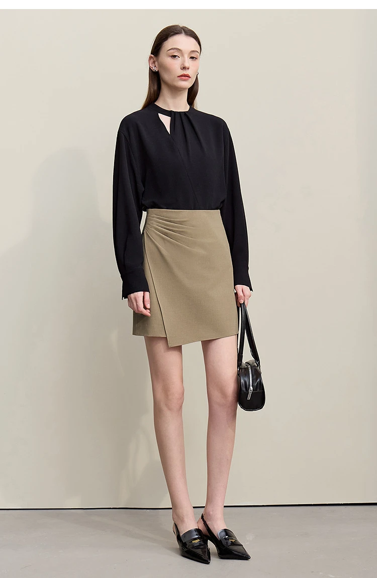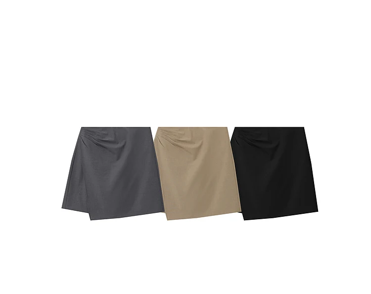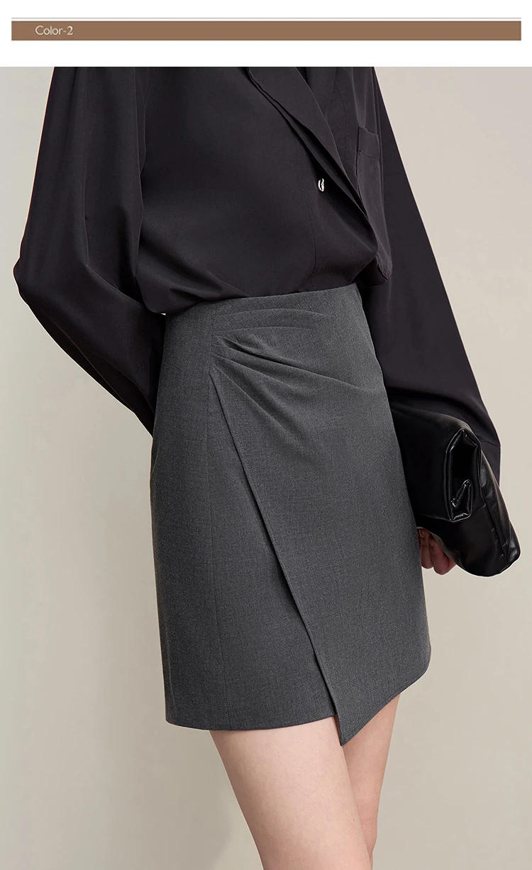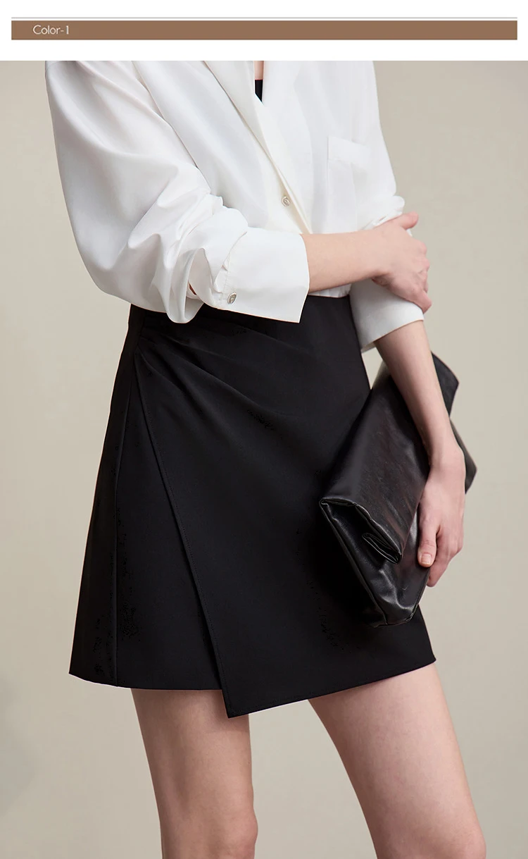 Mini Skirt 2026 Spring New Asymmetrical Pleated Short A-Line Skirt Commuter Solid Color Versatile Women's Clothing 12611004