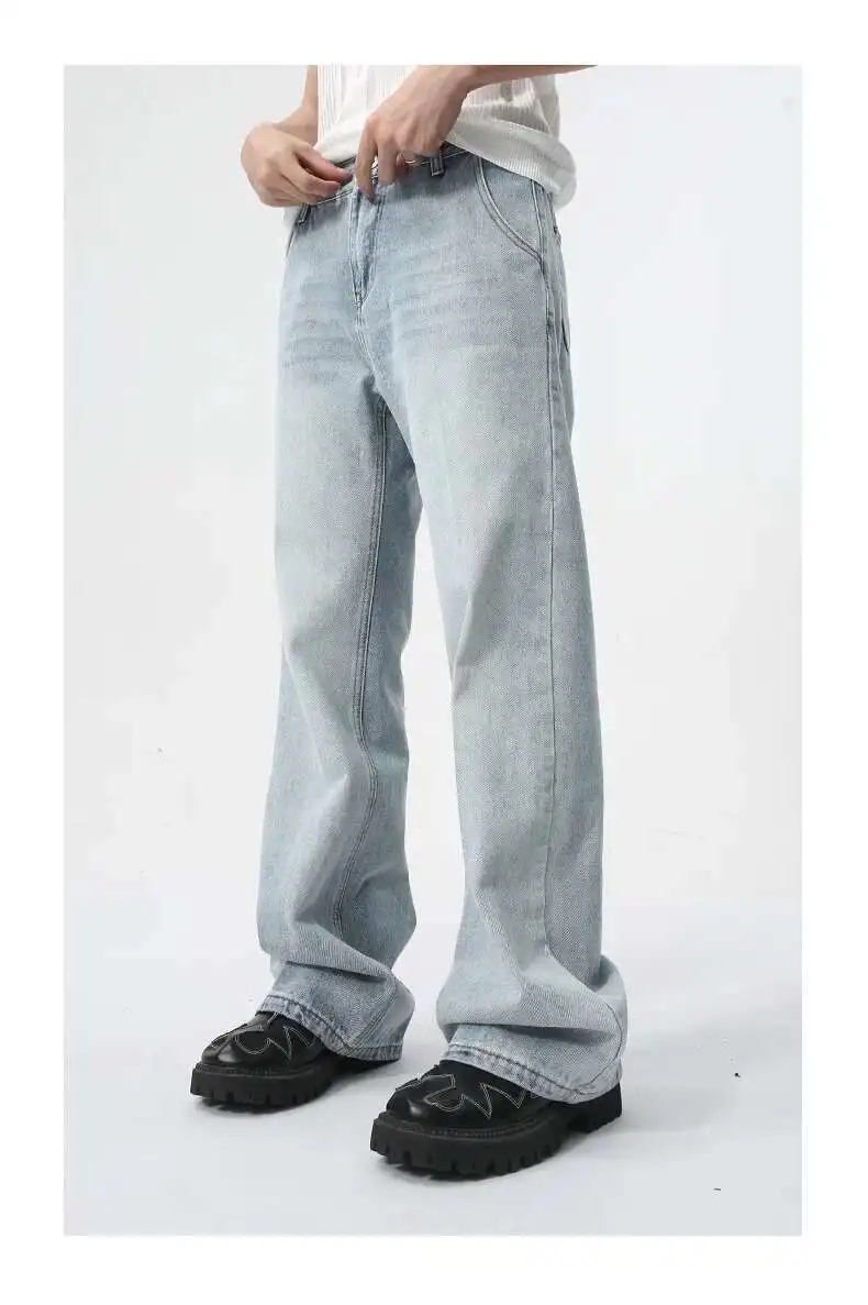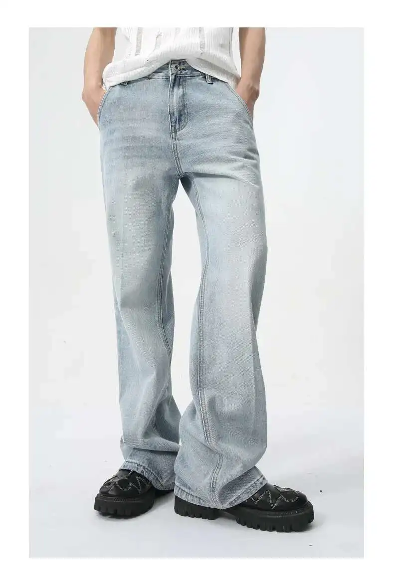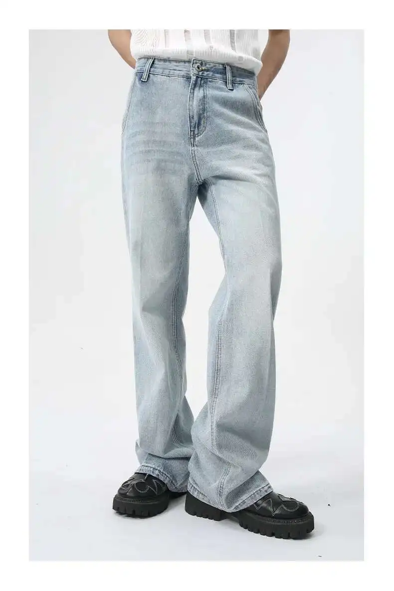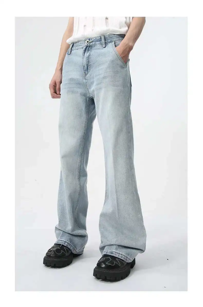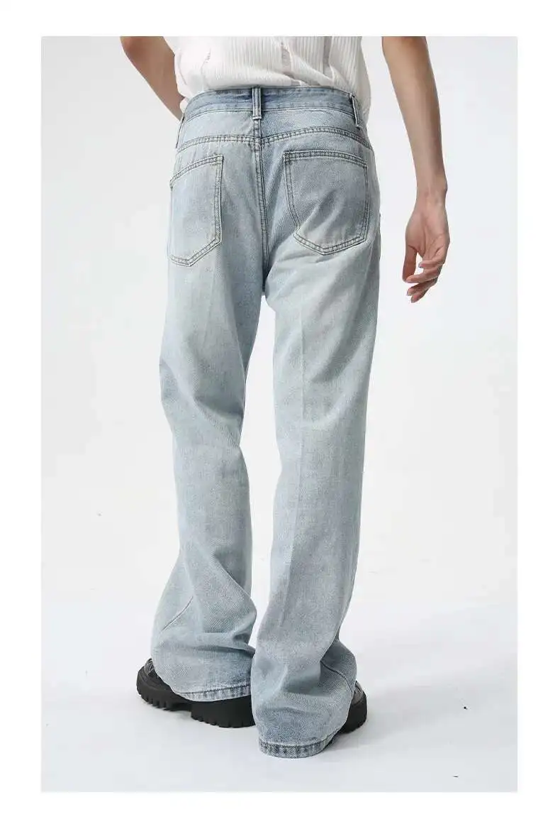 Minimalist Men's Jeans Solid Color Washed Boot Cut Trousers Straight Loose Wide Leg Male Bottom High Street Menwear 9C5978