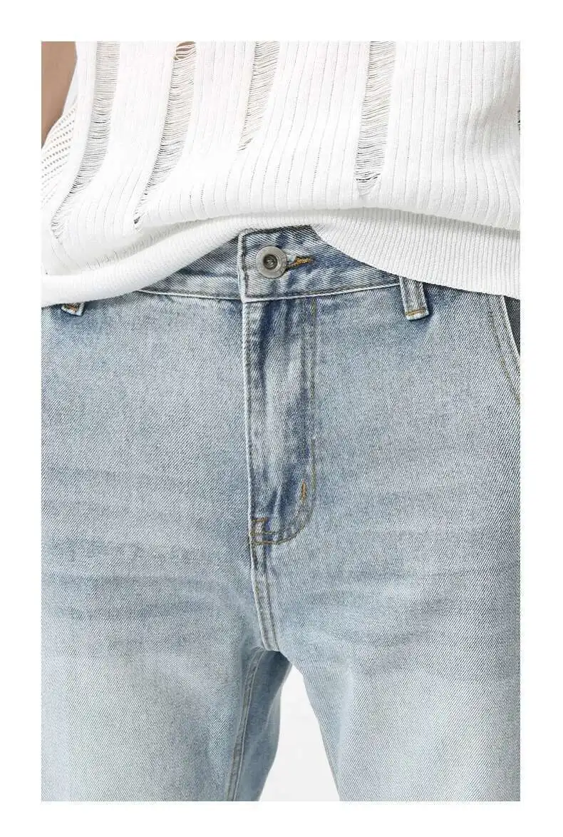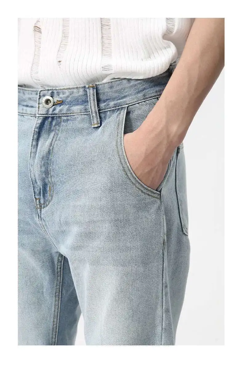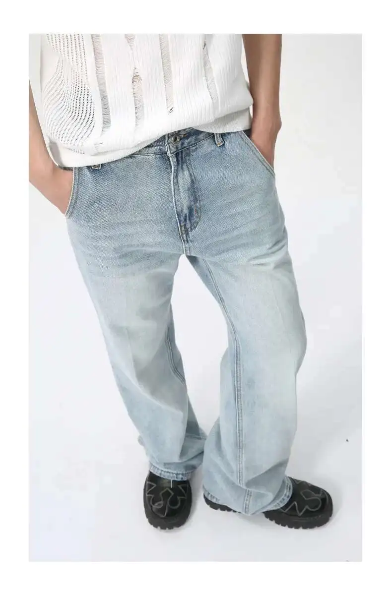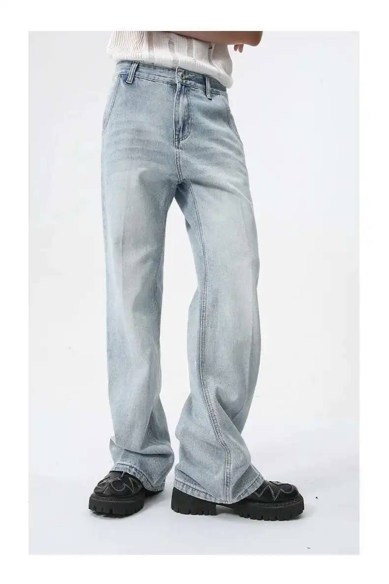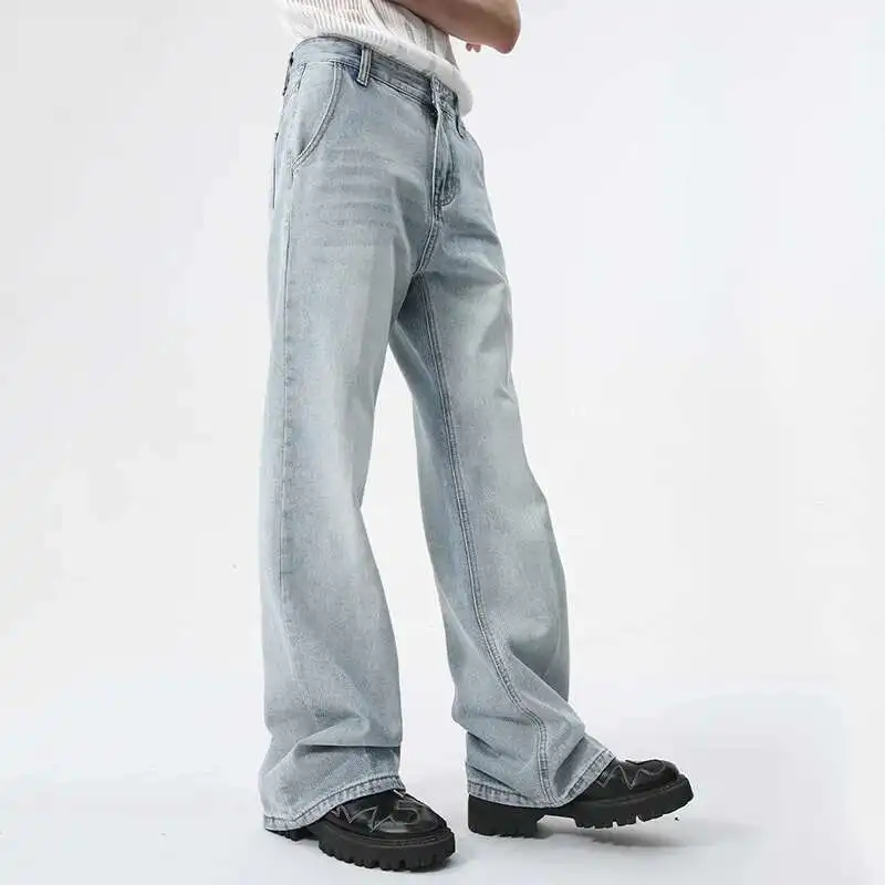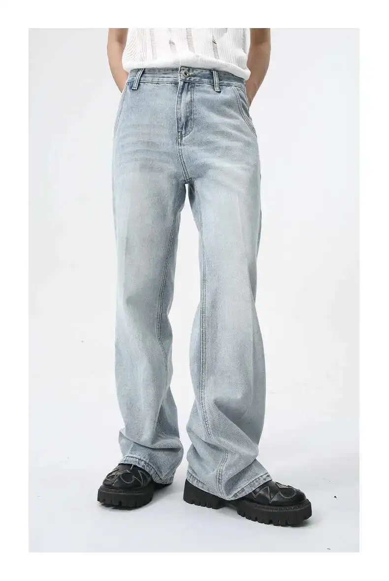 Minimalist Men's Jeans Solid Color Washed Boot Cut Trousers Straight Loose Wide Leg Male Bottom High Street Menwear 9C5978