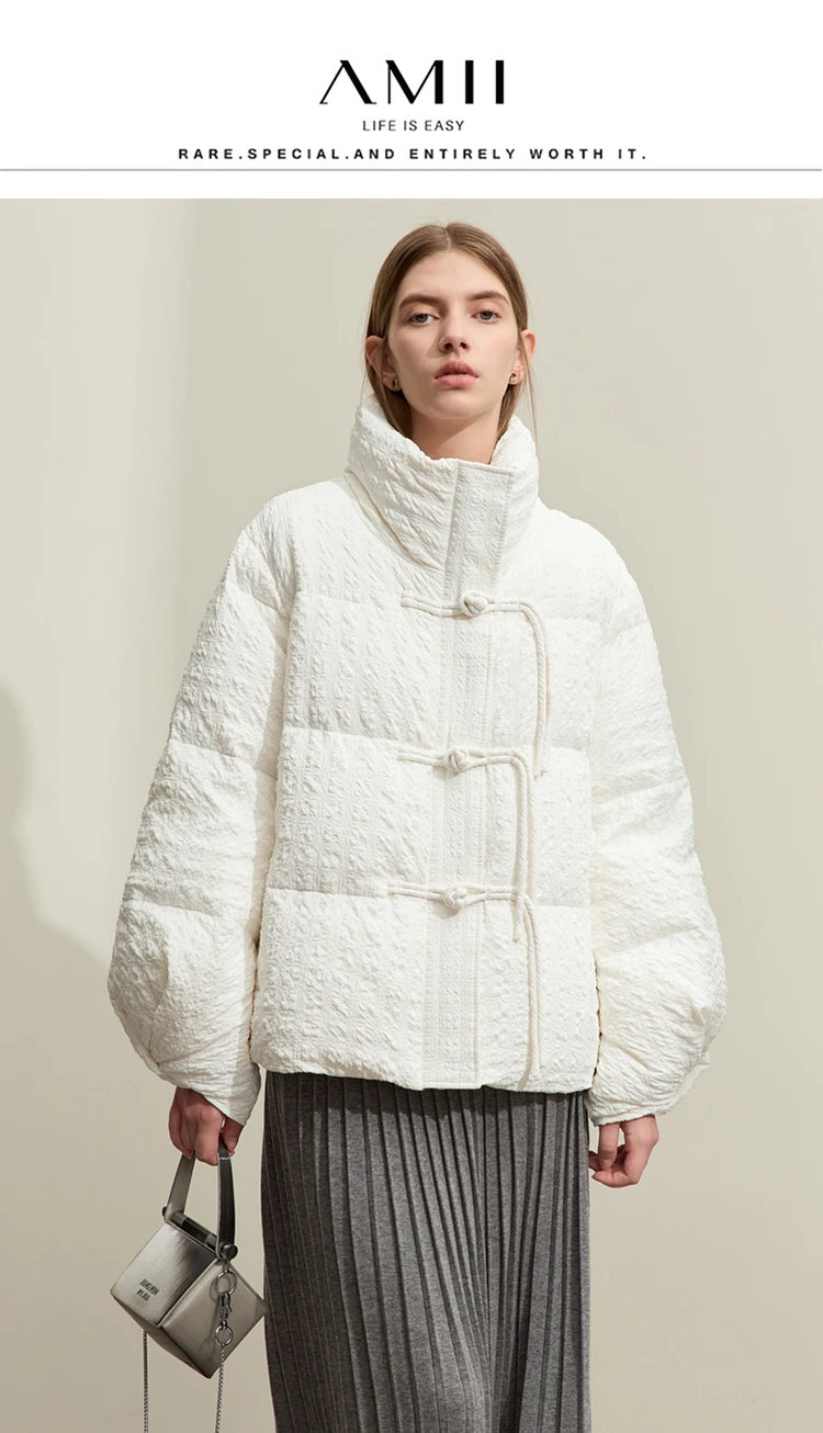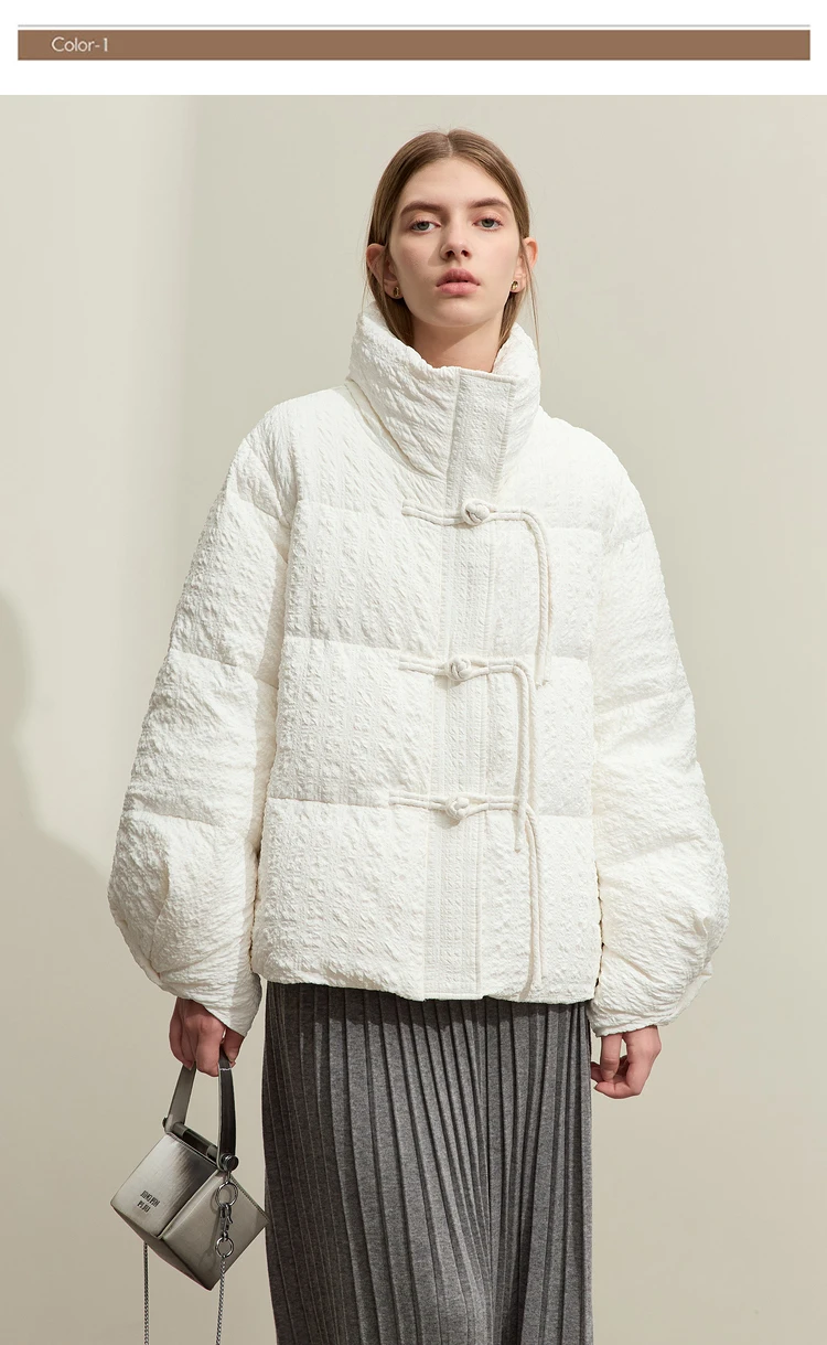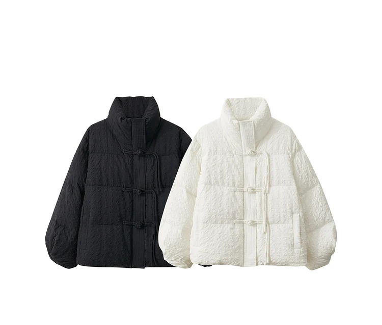 Minimalist New Chinese Down Jacket Women 2024 Winter Folding Cuff Disc Buckle Snowwear Padded Parka Down Jacket 12344117