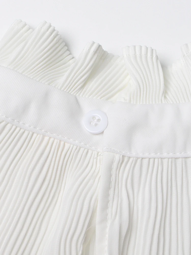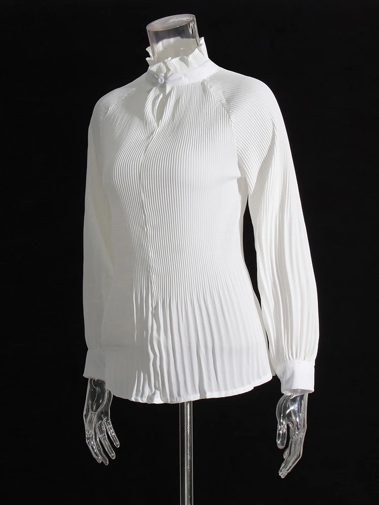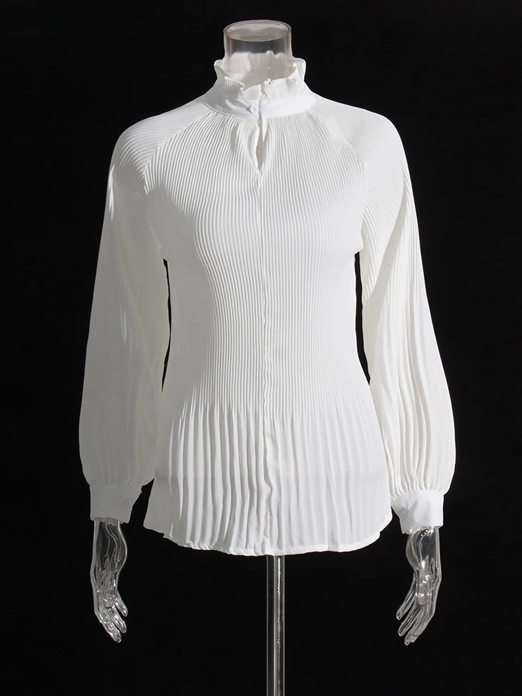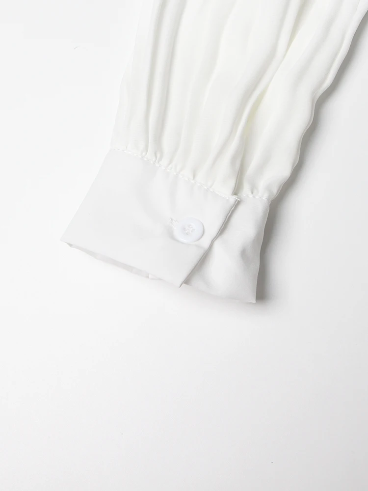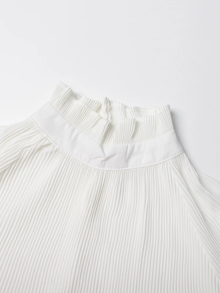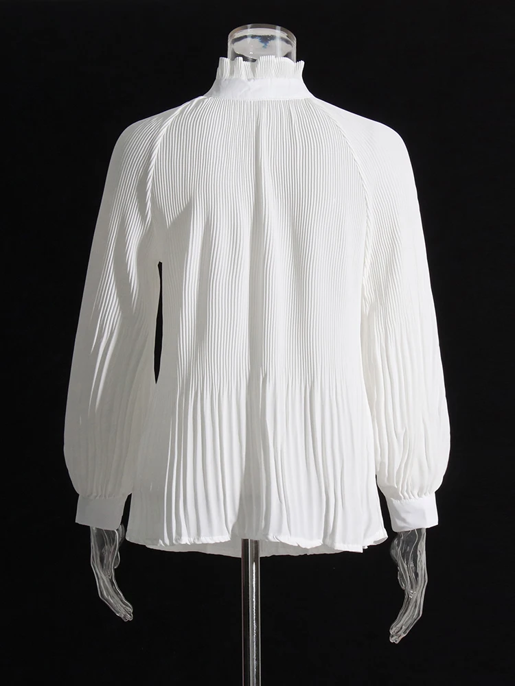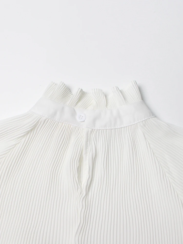 Minimalist Shirts For Women Round Neck Long Sleeve Pleated Spliced Single Breasted Blouse Female Fashion Style