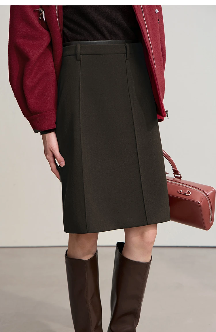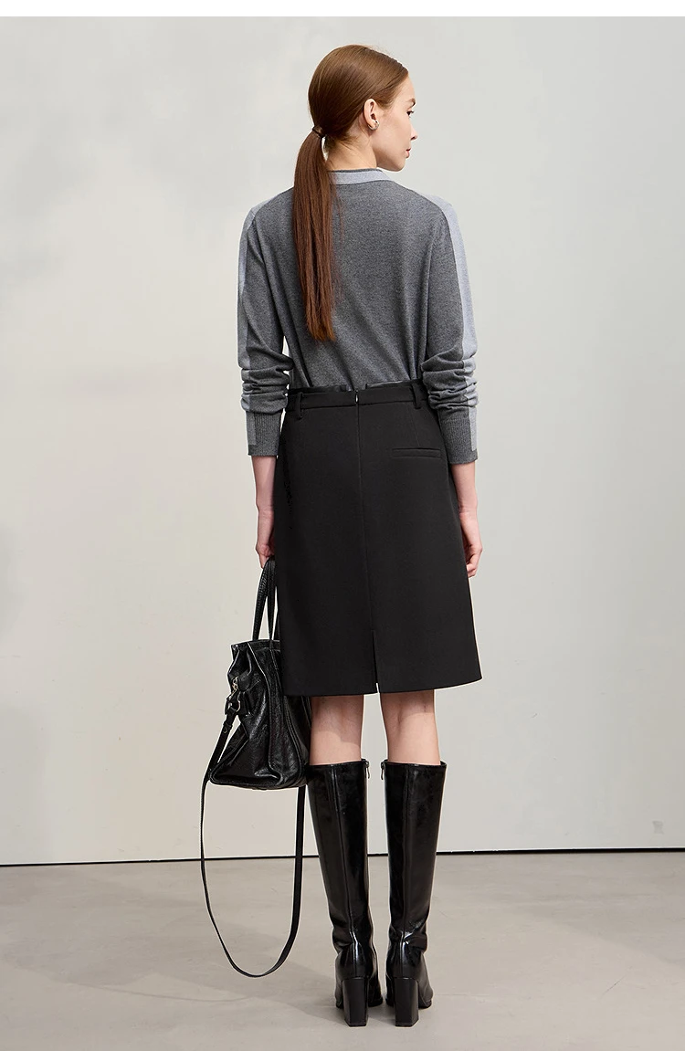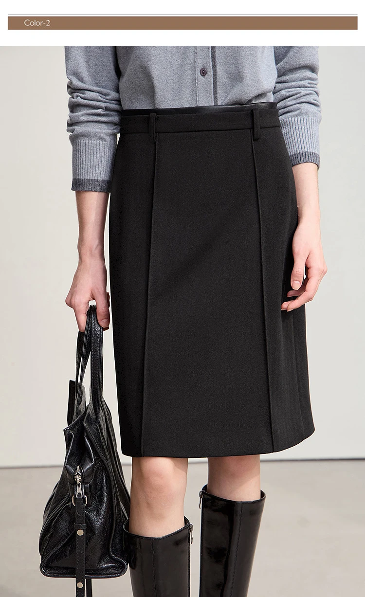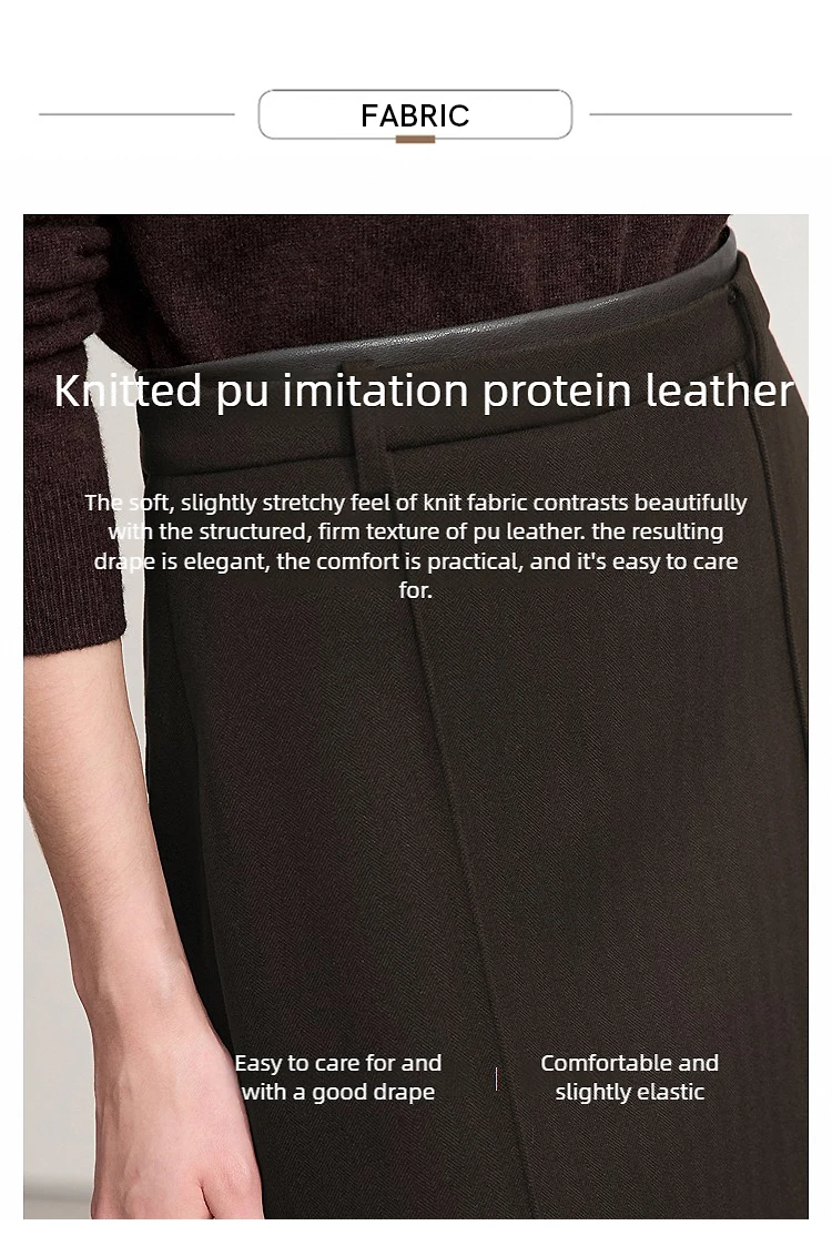 Minimalist Skirts For Women 2025 Winter New Straight Solid Knit Midi Skirt Patchwork Leather Casual Woman Clothes 12524092