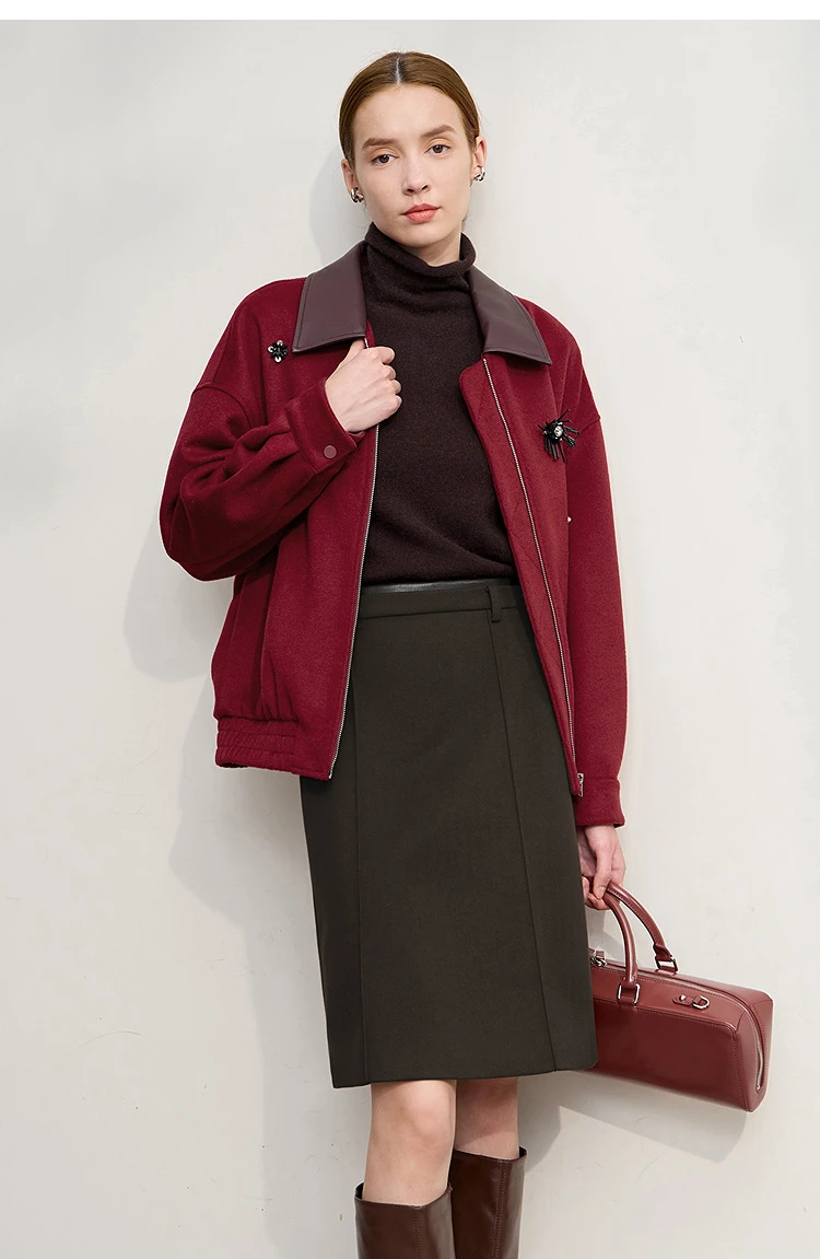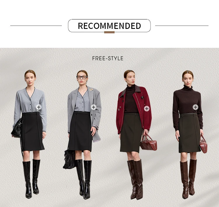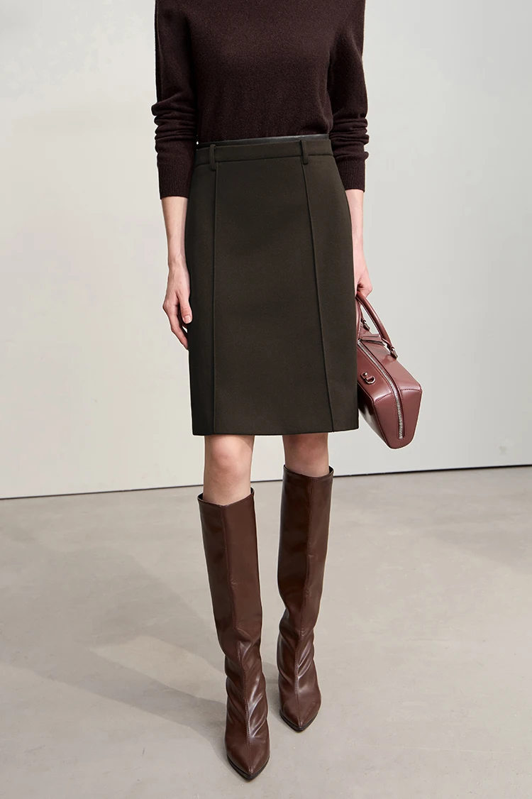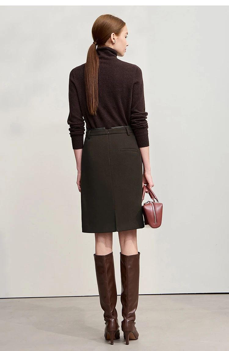 Minimalist Skirts For Women 2025 Winter New Straight Solid Knit Midi Skirt Patchwork Leather Casual Woman Clothes 12524092