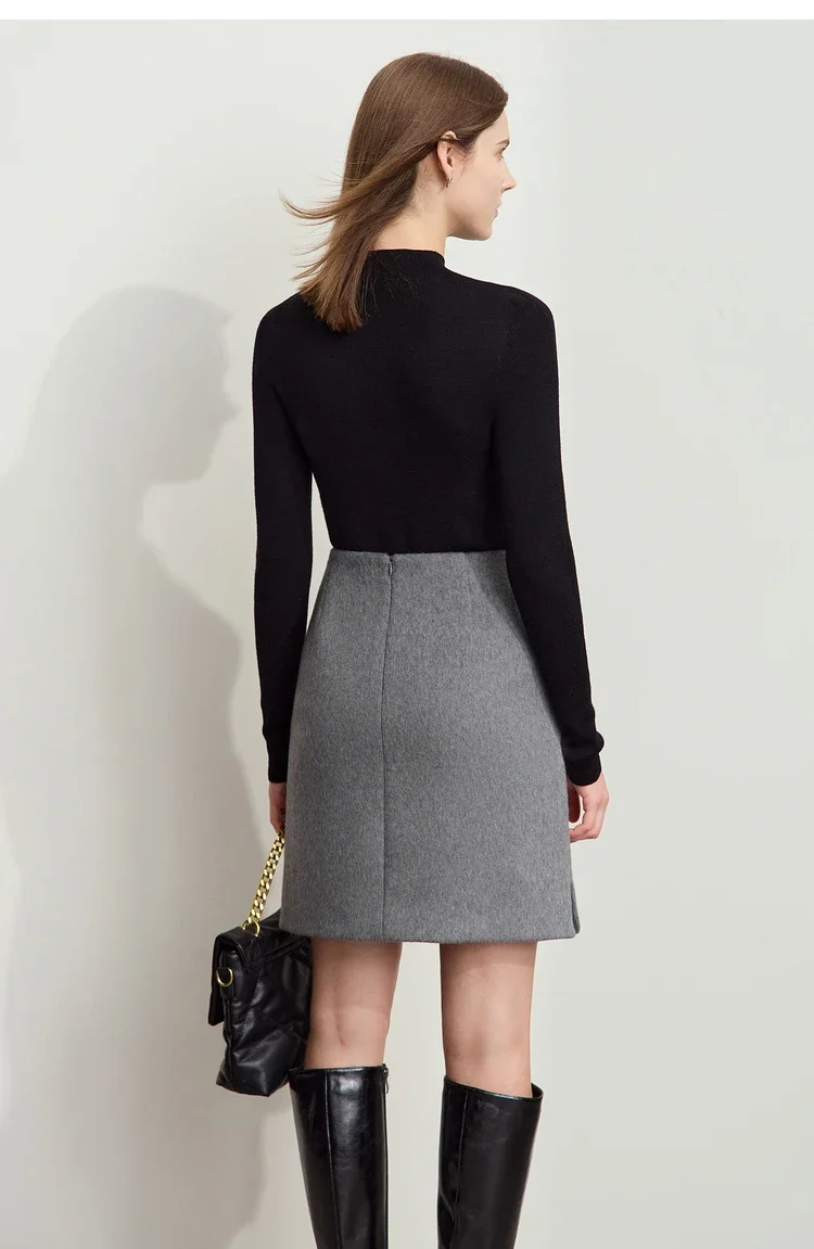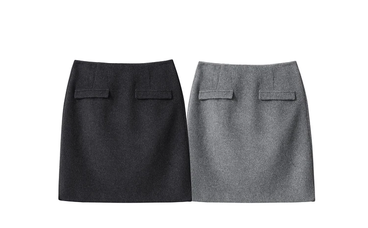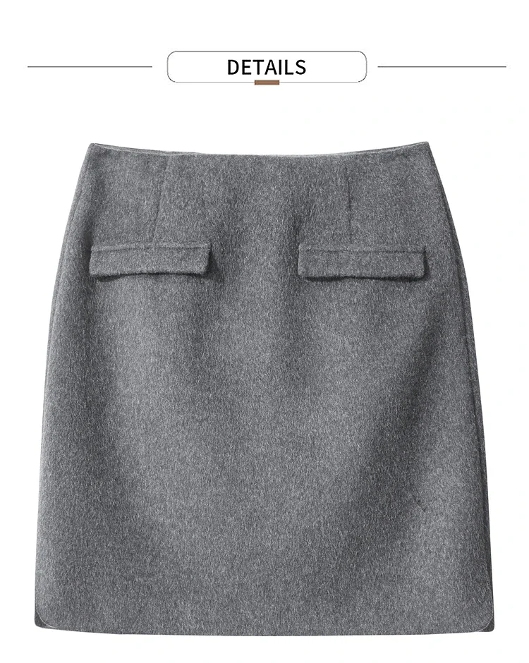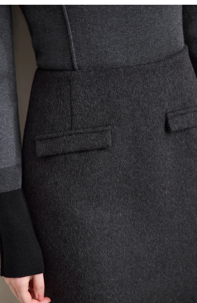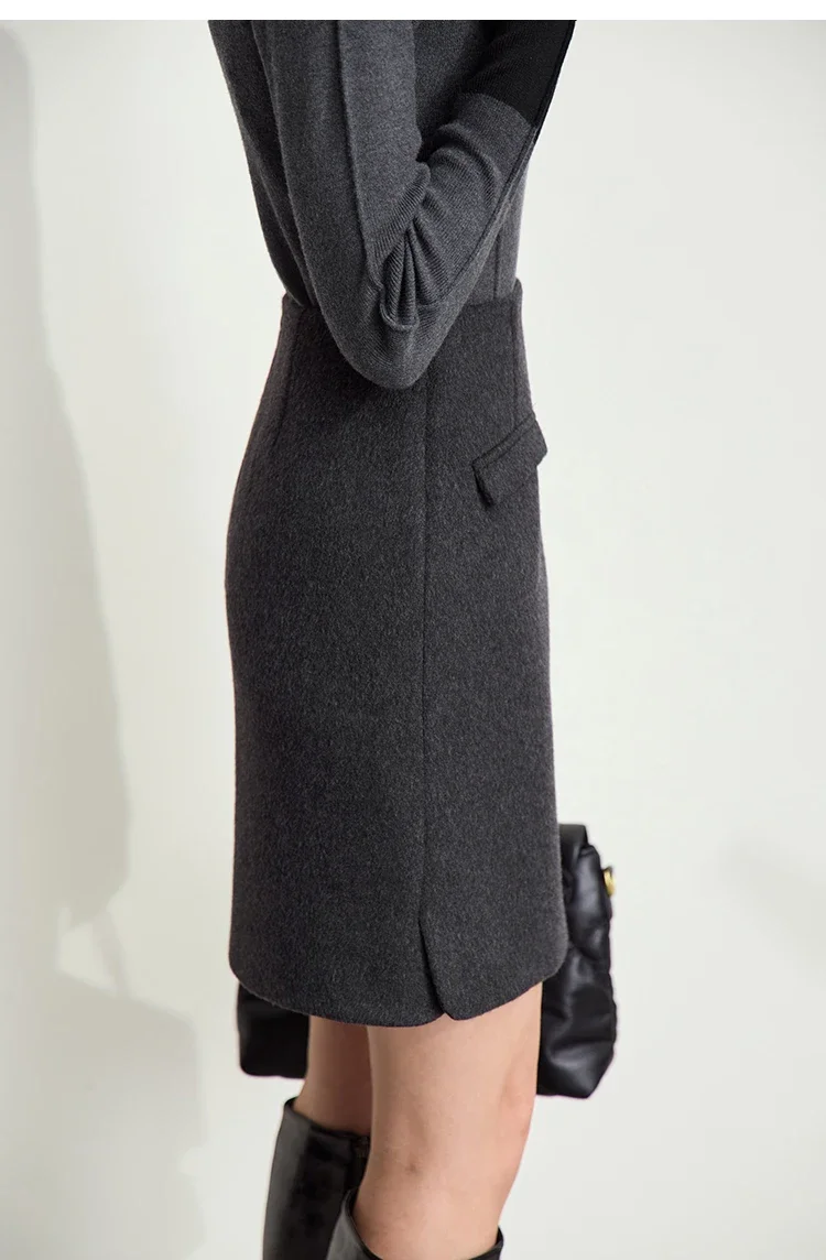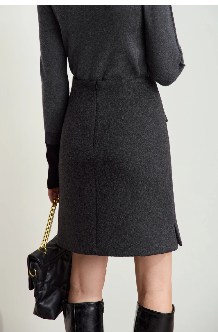 Minimalist Women's Commuter Cropped Woolen Skirts Advanced Grey Split Straight Skirt 2025 Winter Female Bottoms 12444028