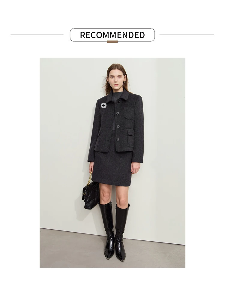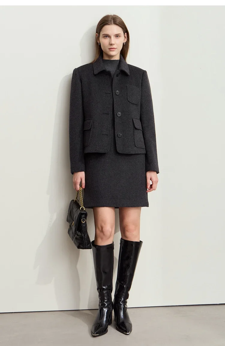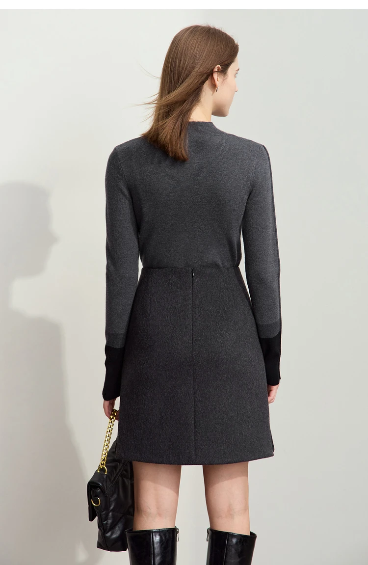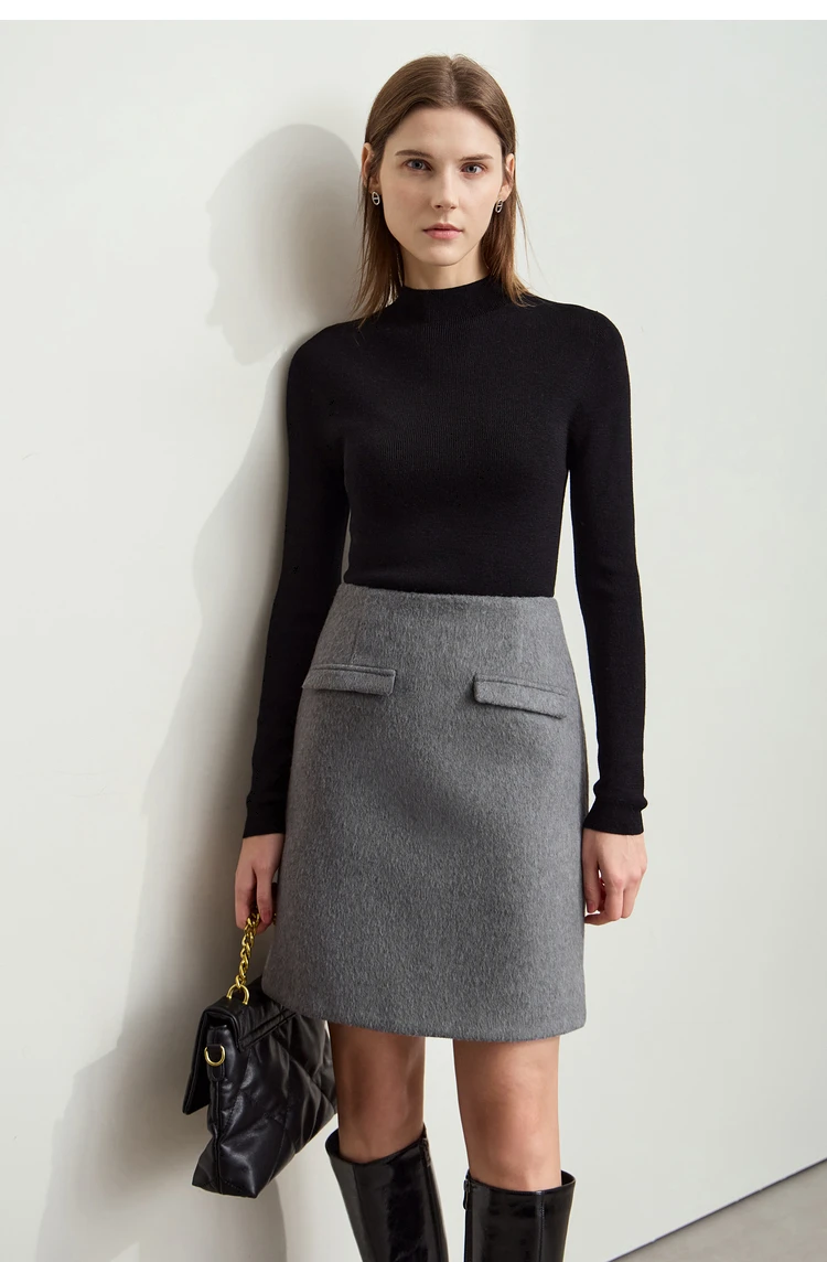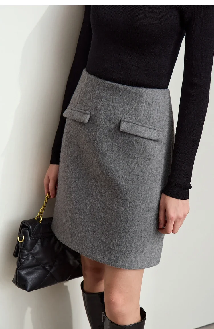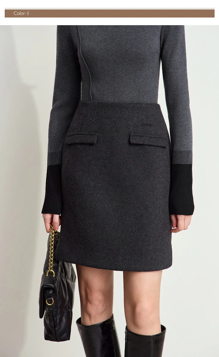Minimalist Women's Commuter Cropped Woolen Skirts Advanced Grey Split Straight Skirt 2025 Winter Female Bottoms 12444028