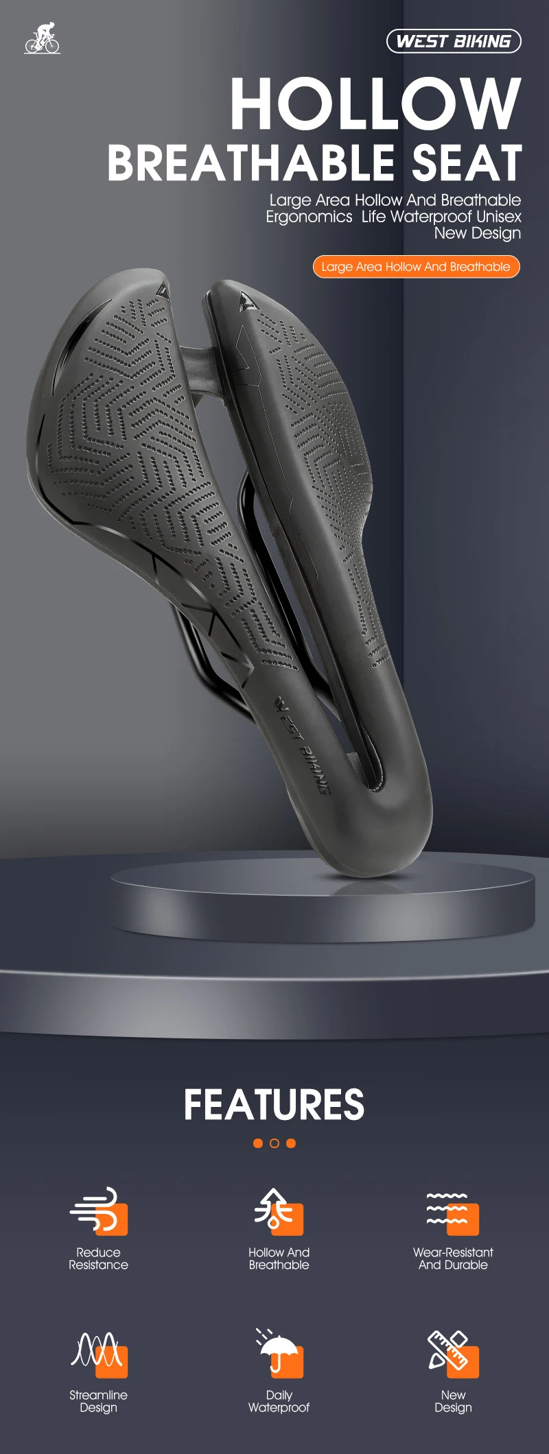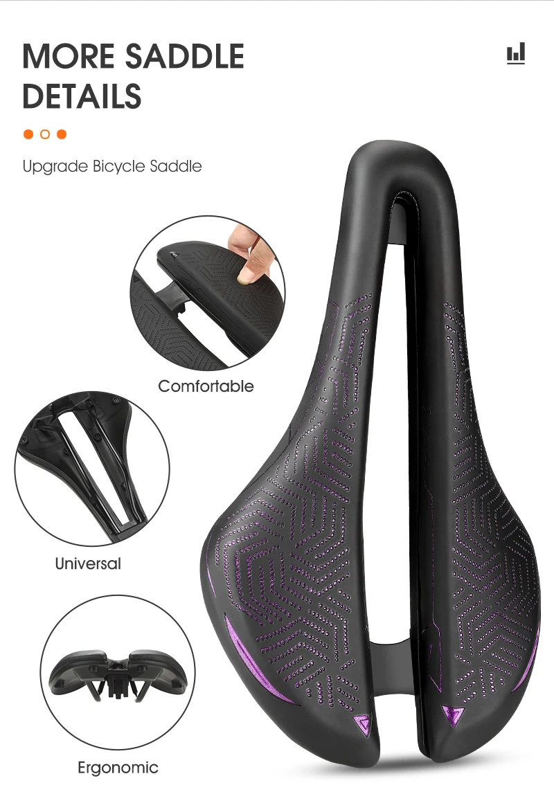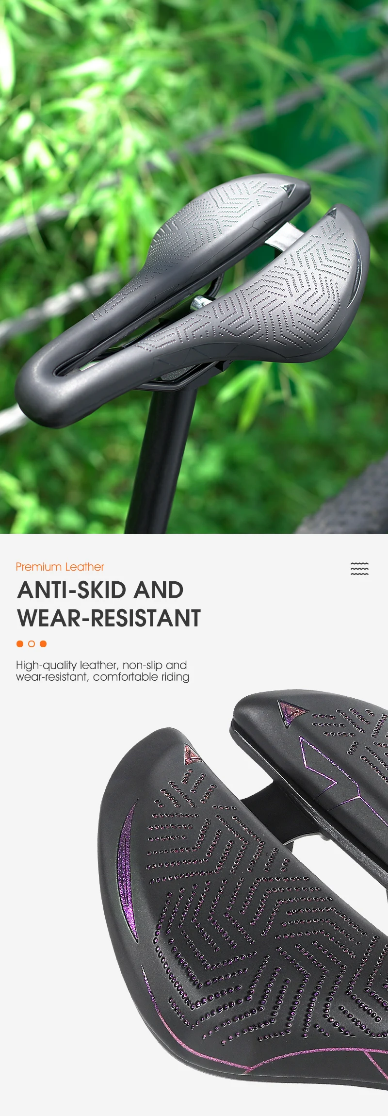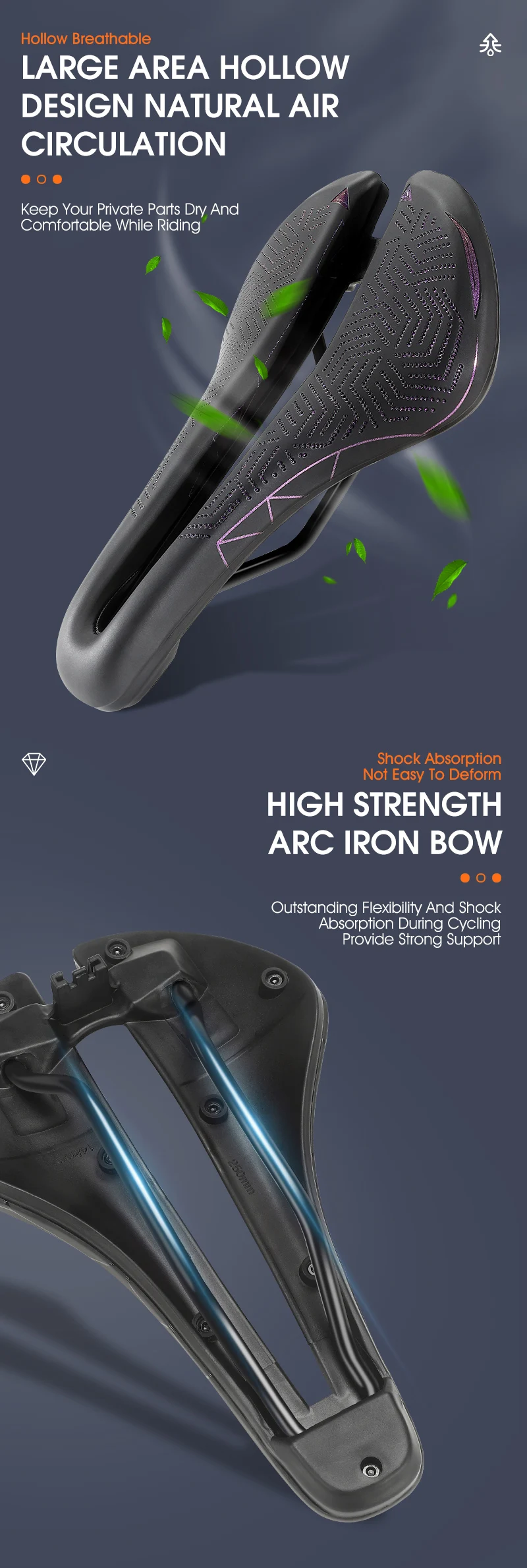2. Hollow Design: The hollow design provides a good vent, Center cutout offers anotomic relief and ventilation,which effectively promotes the circulation of air, and the riding is no longer sultry.