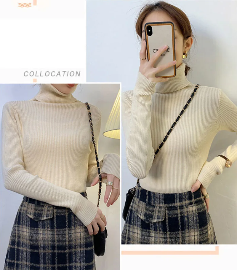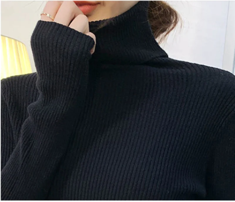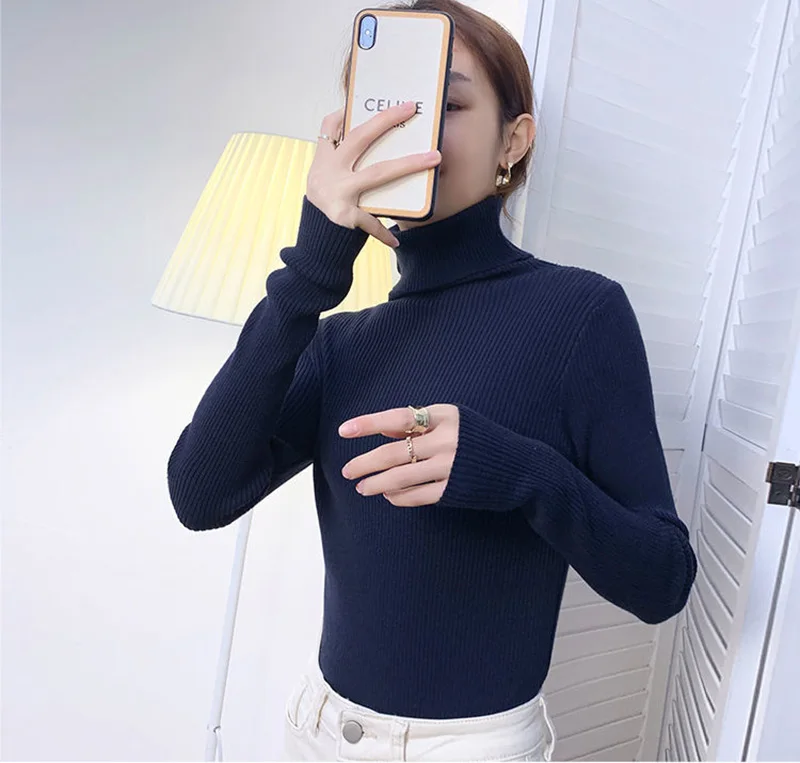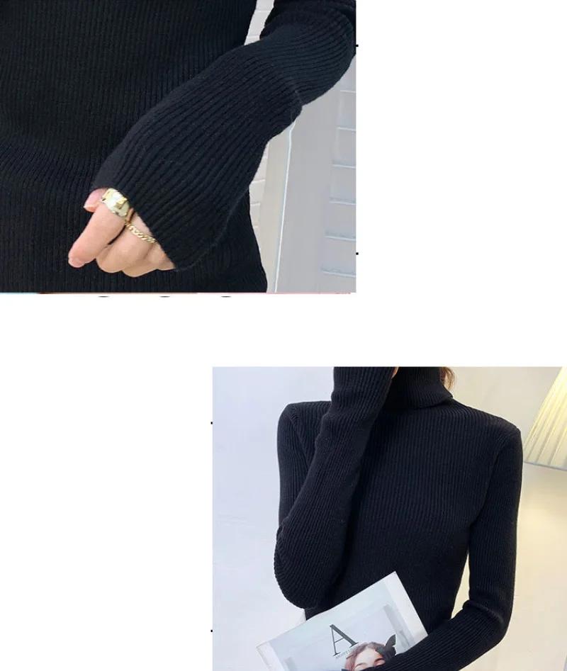 New 2025 Women Pullover Turtleneck Sweater Autumn Long Sleeve Slim Elastic Korean Simple Basic Cheap Jumper Solid Color Top