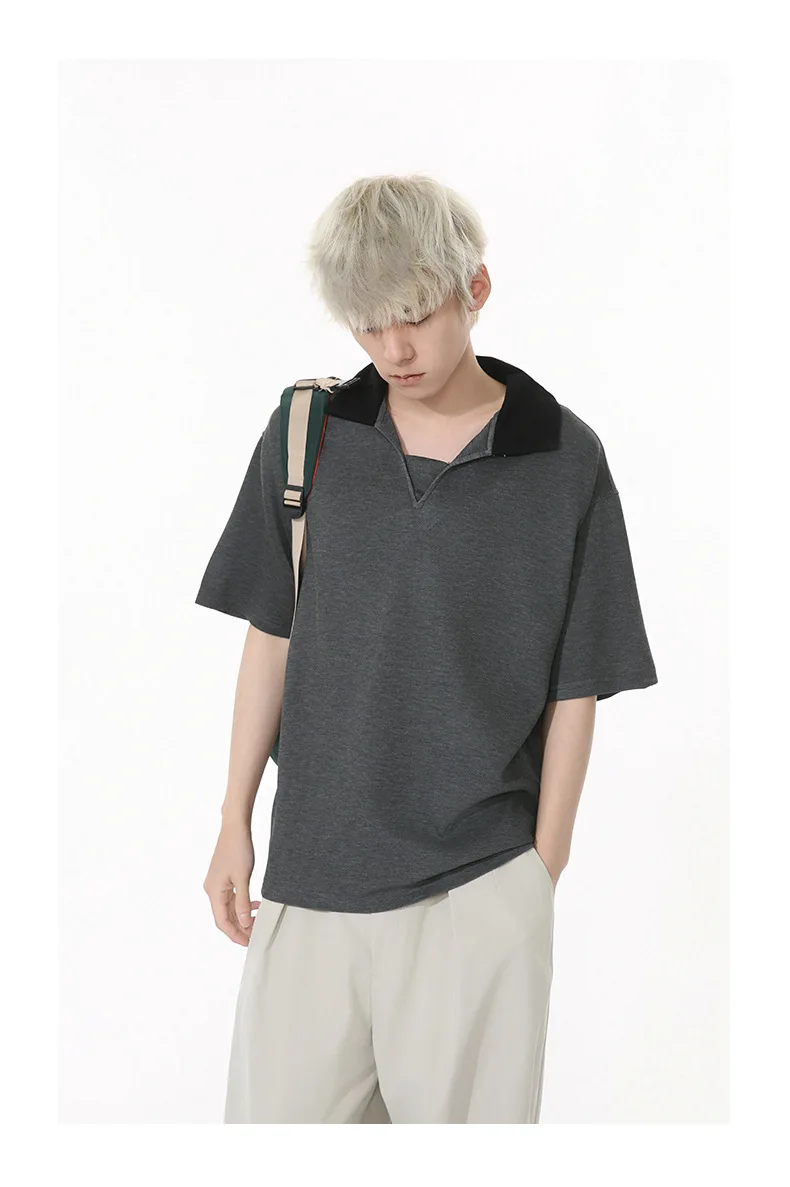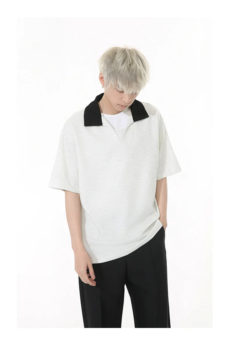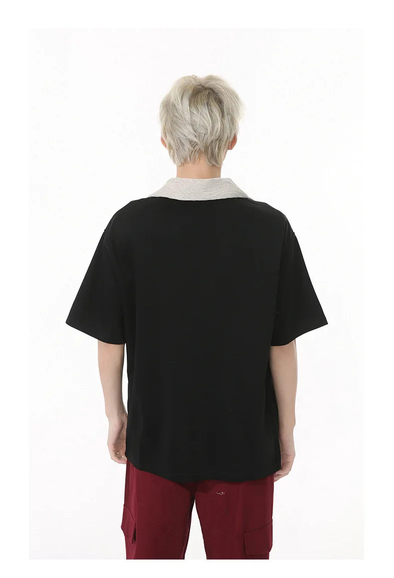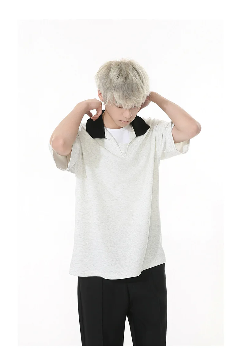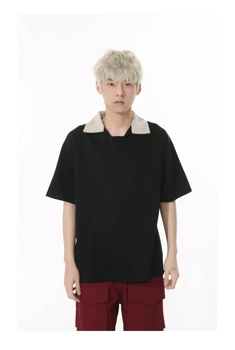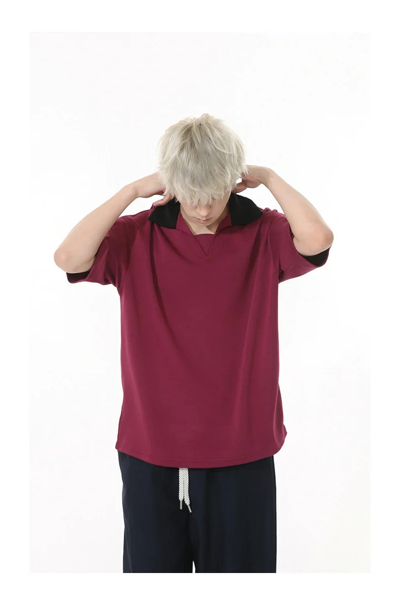 Niche Design Men's Tees Contrast Color Patchwork Turn-down Collar T-shirts Short Sleeved Casual Male Tops Summer 9W1259