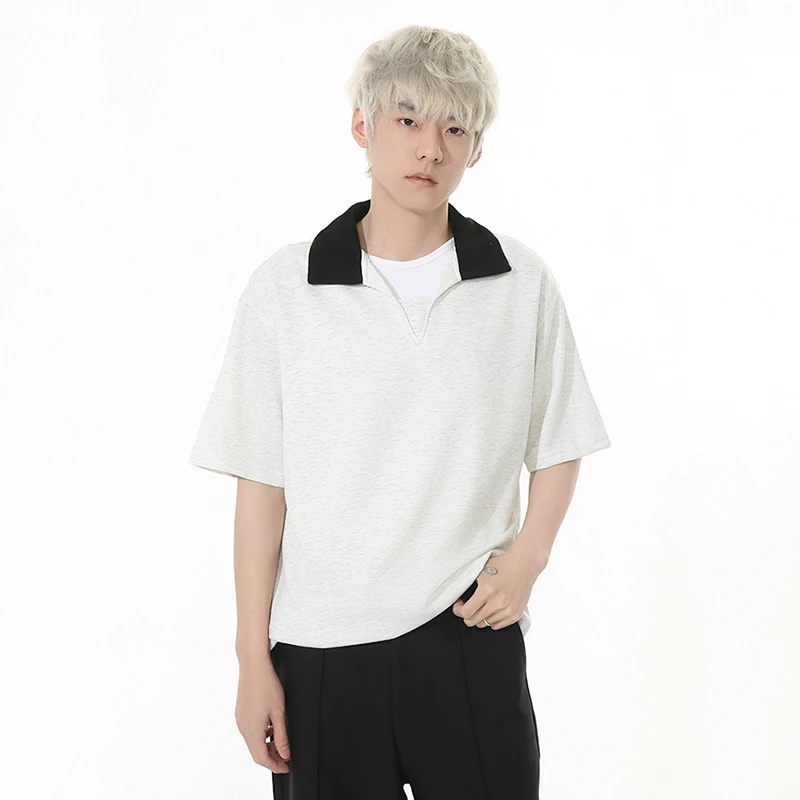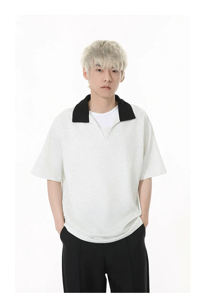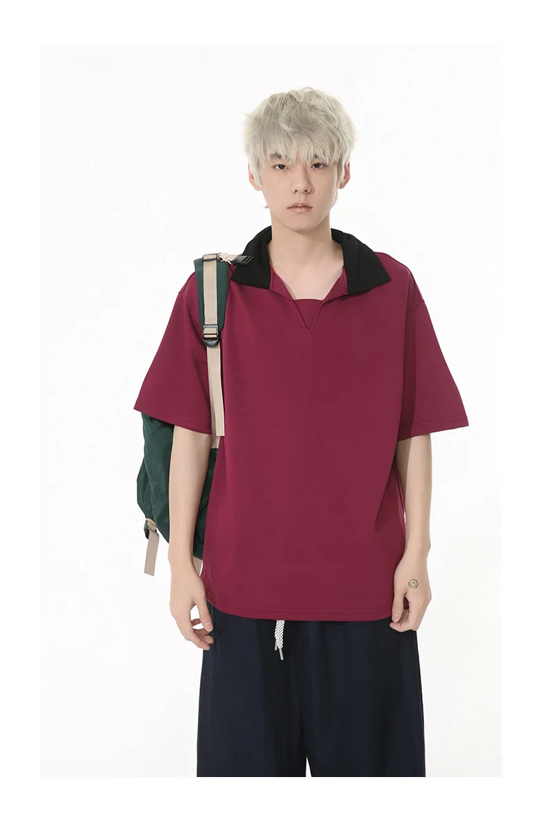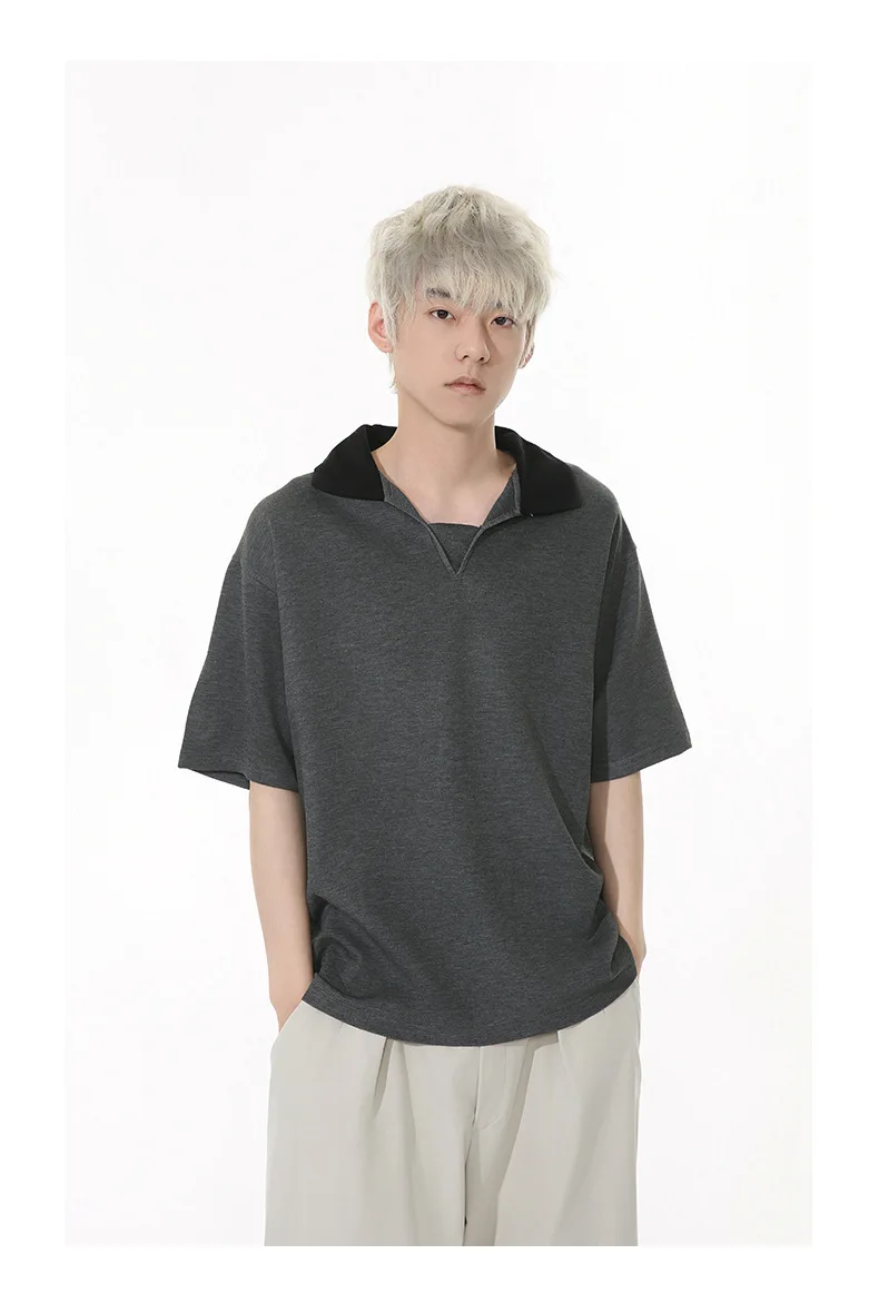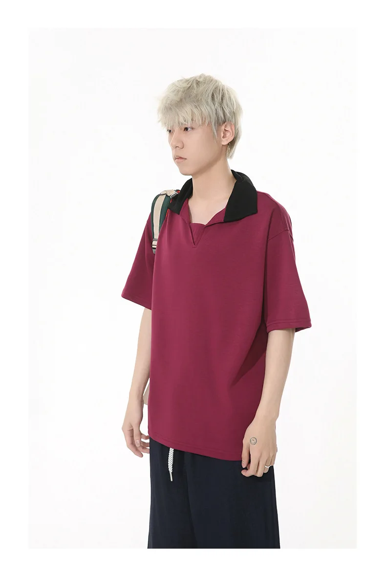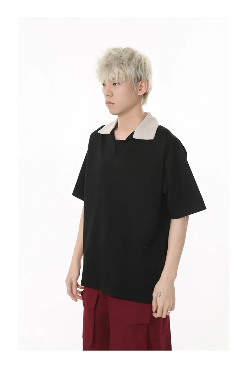 Niche Design Men's Tees Contrast Color Patchwork Turn-down Collar T-shirts Short Sleeved Casual Male Tops Summer 9W1259
