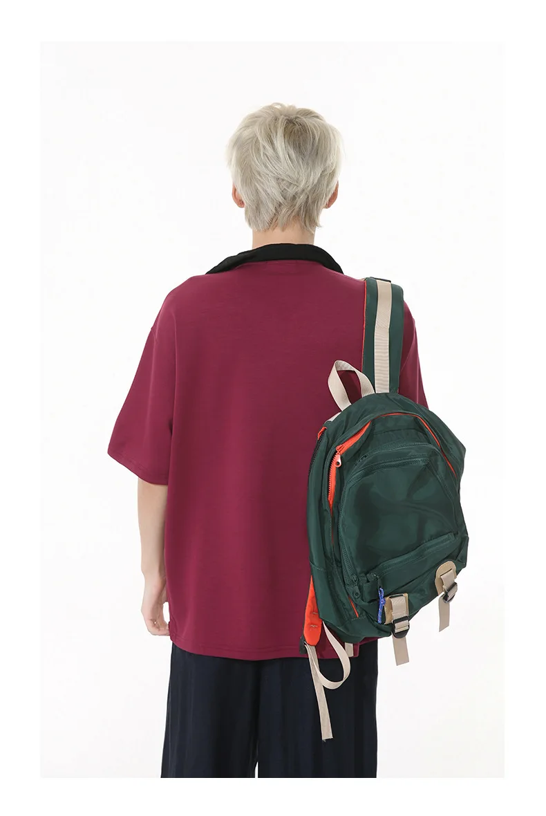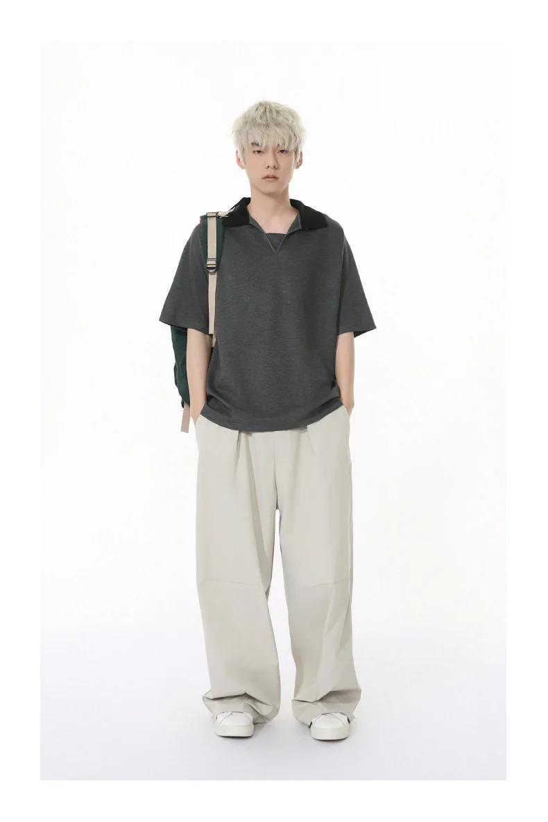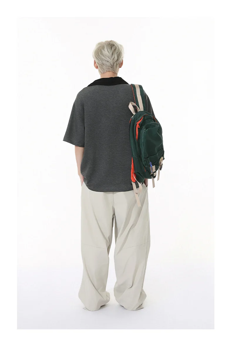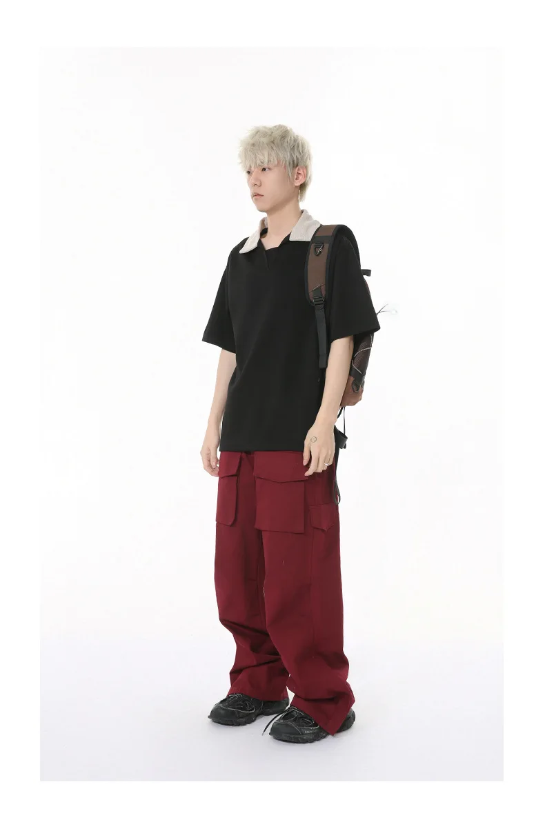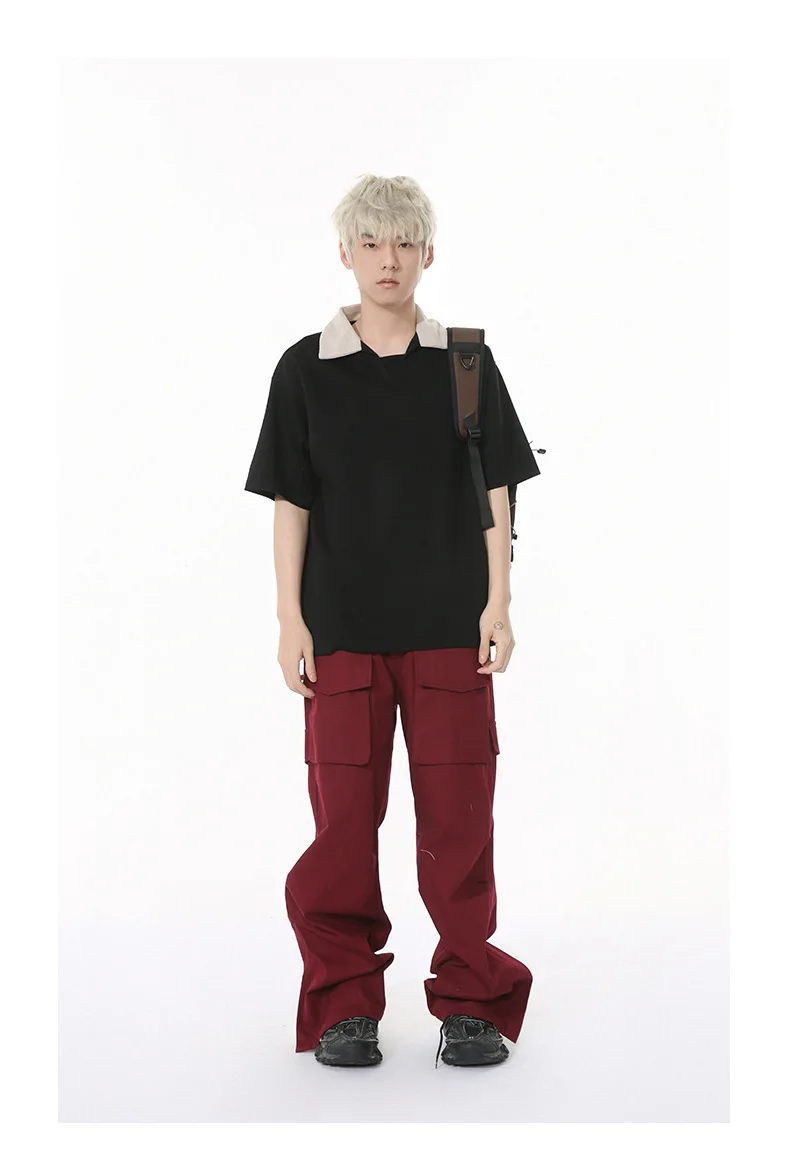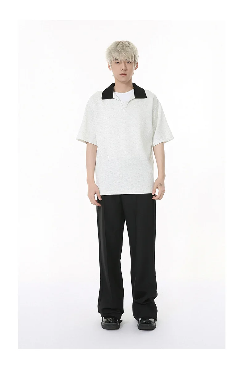 Niche Design Men's Tees Contrast Color Patchwork Turn-down Collar T-shirts Short Sleeved Casual Male Tops Summer 9W1259